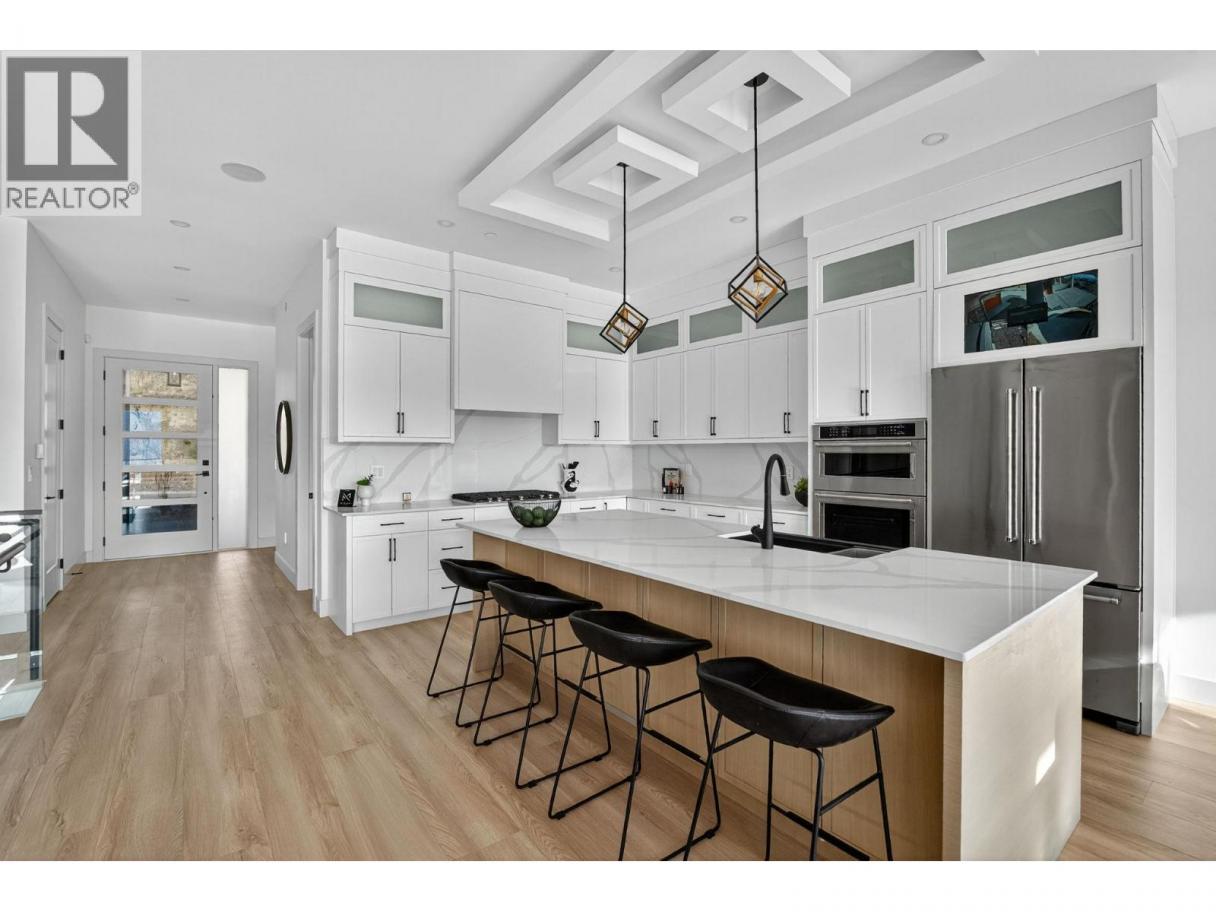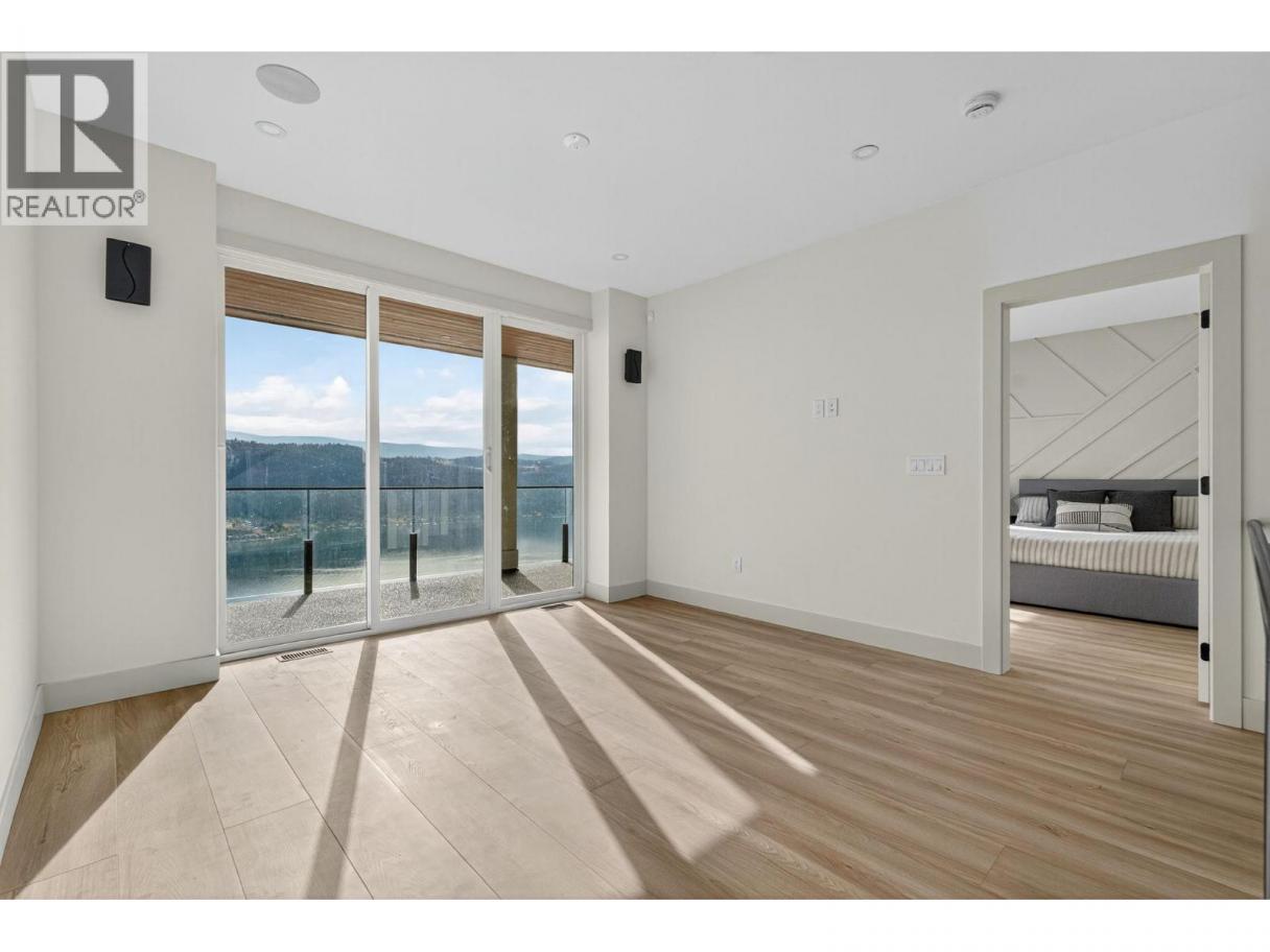 Breathtaking Lake Views in Vernon’s Premier Adventure Bay Community! Experience luxury living in this meticulously designed 4 bed + Den & 4 1/2 bath home spanning 3,303 SQFT. Showcasing floor-to-ceiling windows, artisan millwork, premium hardwood floors, & an open-concept layout, every detail has been crafted for modern elegance & comfort. The gourmet kitchen is a chef’s dream, featuring stainless steel appliances, sleek stone countertops, a spacious center island, custom cabinetry, & a generous pantry. Entertain in style with a built-in entertainment center, feature fireplace, & elegant wet bar. Retreat to the luxurious primary suite, complete with a walk-in closet & a spa-inspired 5-piece ensuite featuring an nVent Nuheat programmable heated-floor thermostat. Modern comforts include Control4 home automation, a multi-zone smart lighting control keypad, & efficient HVAC, ensuring comfort year-round. Outside, the home impresses with elegant stone & fibre cement façades, an elevated deck perfect for entertaining, and a year-round patio to soak in the views. Located just steps from access to a private beach, tennis & pickleball courts, & minutes from hiking trails, golf, wineries, & downtown amenities, this home offers the ultimate blend of refined living and everyday convenience. Book your tour today! (id:6769)