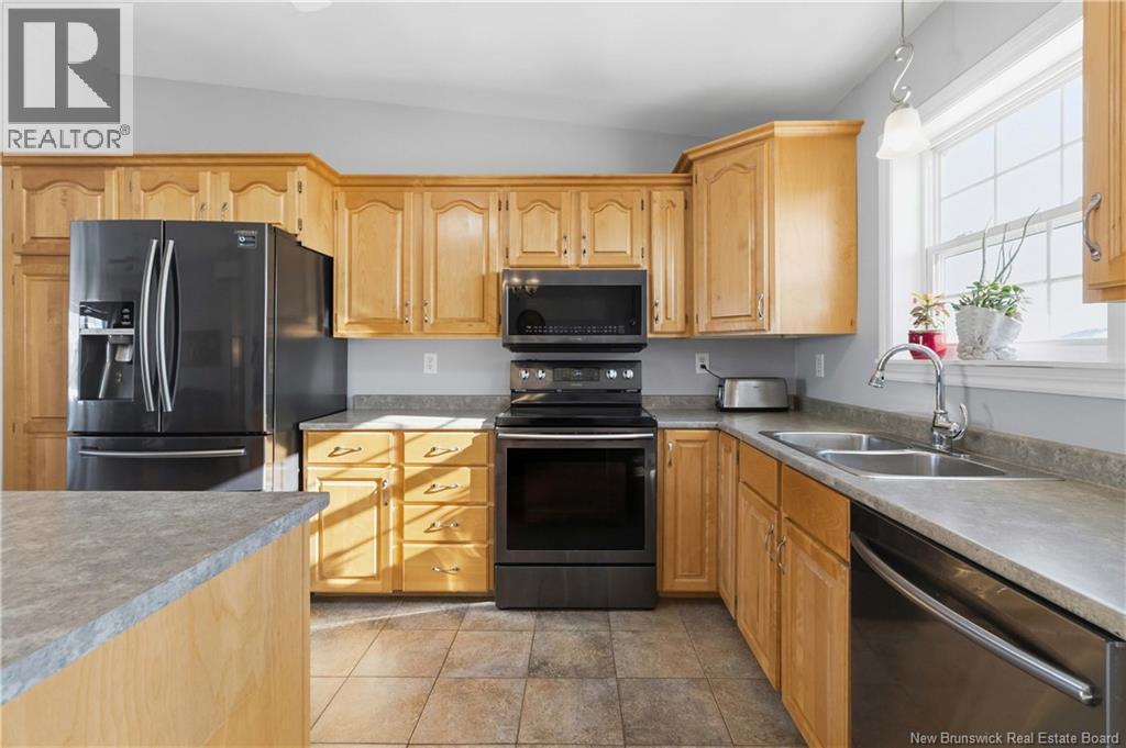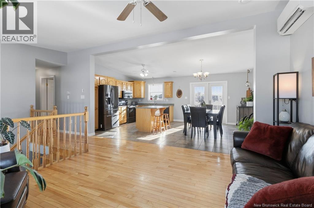 Welcome to 104 Augusta Terrace, a well-maintained and thoughtfully laid-out home offering easy access to all amenities and within walking distance to North Frye School. The main level features a bright open-concept living space with vaulted ceilings, a welcoming front living room with a propane fireplace, and a spacious kitchen with plenty of cabinetry, a centre island, and an open dining area. French doors off the dining room lead to a low-maintenance, composite; 2 tier deck overlooking the fenced backyard, perfect for everyday living and entertaining. The main floor also includes a comfortable primary bedroom complete with a walk-in closet and a three-piece ensuite bathroom, along with two additional bedrooms and a full four-piece family bath. The fully finished lower level offers a large family room, two spacious non-conforming bedrooms, a three-piece bathroom, a utility room, and a beautiful wet bar, making it an ideal space for entertaining or hosting guests. Recent updates include roof shingles replaced in 2022 and the installation of three mini-split heat pumps for year-round comfort. Outside, youll appreciate the fenced-in backyard, the oversized paved driveway with room for up to eight or more vehicles, and the impressive 26 x 30 detached garage featuring new epoxy flooring. A fantastic home in a sought-after neighbourhood, offering space, comfort, and value. (id:6769)