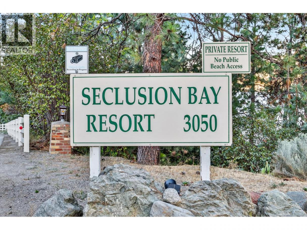 Want a recreational lake property just 20 kms away from downtown Kelowna? Well here's your chance. Seclusion Bay is one of the best kept secrets in the Okanagan. This little slice of heaven has over 1200 ft of waterfront for you to enjoy! Located on 14 acres of wooded land with it's own marina, boat slips and a boat launch. Private beach and rec room for you to use anytime. Grassy volleyball/badminton area, roped off swim area and docks to lounge on. If you are looking for privacy and seclusion, this updated 1 bedroom and full bathroom property is waiting for you. Newer kitchen cabinets, stainless steel appliances, newer vanity and backsplash in the bathroom. The lake and beach is right outside your sliding glass door. This cozy condo includes a large, grassy area that overlooks the lake for summer relaxation at it's best! Sold fully furnished with a queen bed in the bedroom and a queen sofa bed in the living room, this property can accommodate 4 guests. Want to make a little extra cash when you're not using it? Well this property makes for a great income earner as well. No restrictions here for short term rentals. Don't wait, ask your favourite Realtor for a showing now and get ready for a great summer on the lake! (id:6769)