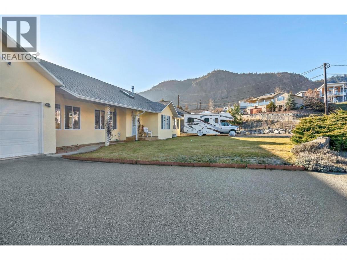 Welcome to Valleyview Estates in sunny Okanagan Falls! This level-entry rancher offers an ideal layout for families or retirees with 3 bedrooms and 2 bathrooms on the main floor, plus 2 additional bedrooms and bathroom downstairs. The main level features a bright, open living and dining area with vaulted ceilings, a cozy gas fireplace, and patio doors leading to a sun-drenched, south-facing deck with beautiful valley and mountain views. The sunny kitchen includes warm wood cabinetry and a charming breakfast nook with bay window, perfect for enjoying your morning coffee. The primary suite is a relaxing retreat, complete with a spacious ensuite featuring a jetted tub, skylight, and a walk-in closet with convenient laundry. Downstairs, you’ll find two finished bedrooms, a finished bathroom, and a large open space ready for your finishing ideas. This versatile area is ideal for kids, a recreation room, or could easily be converted into an in-law suite to help offset the mortgage. Recent updates include a newer high-efficiency gas furnace and air conditioning for year-round comfort. Outside, the yard has been FireSmarted for added safety and offers a large, flat backyard—perfect for gardening, play, or even a future pool. There’s ample parking for an RV and boat, complete with a sani-dump and 30-amp plug. The oversized double garage provides excellent space for storage, hobbies, or a workshop. Welcome home to this quality family property with room to grow! (id:6769)