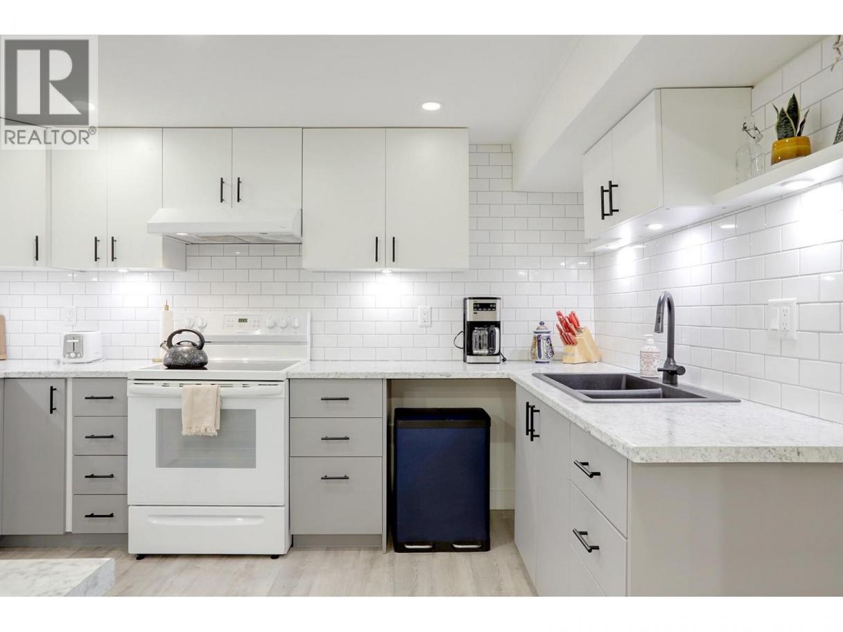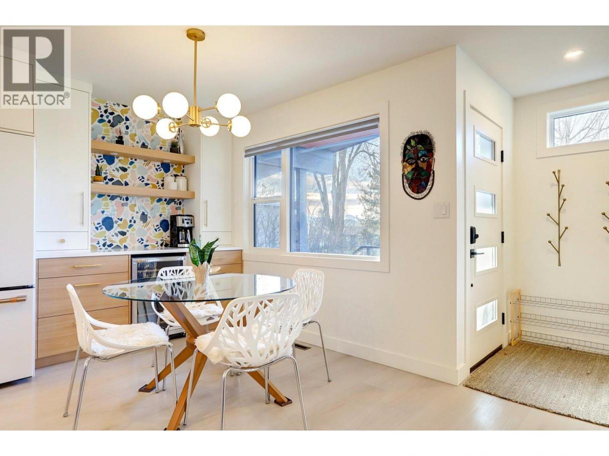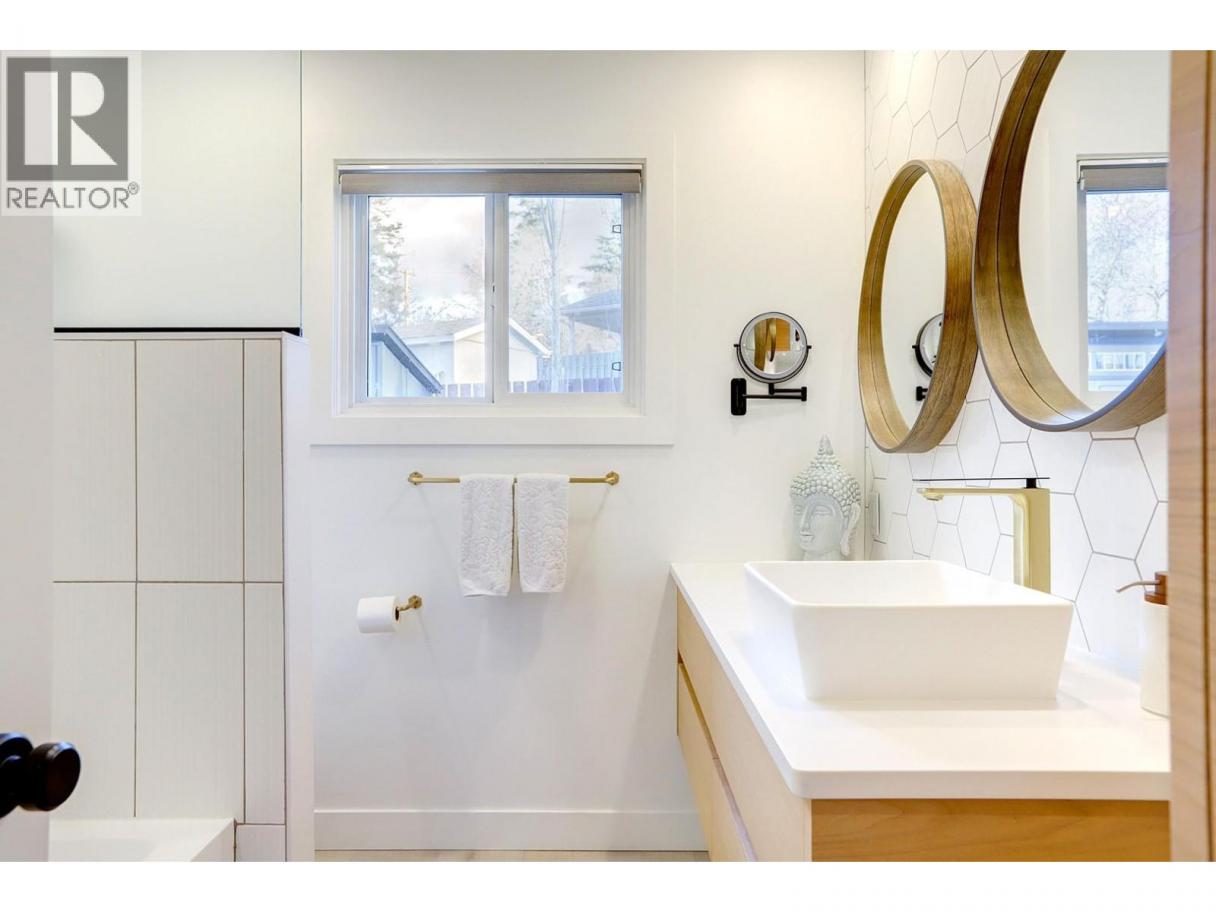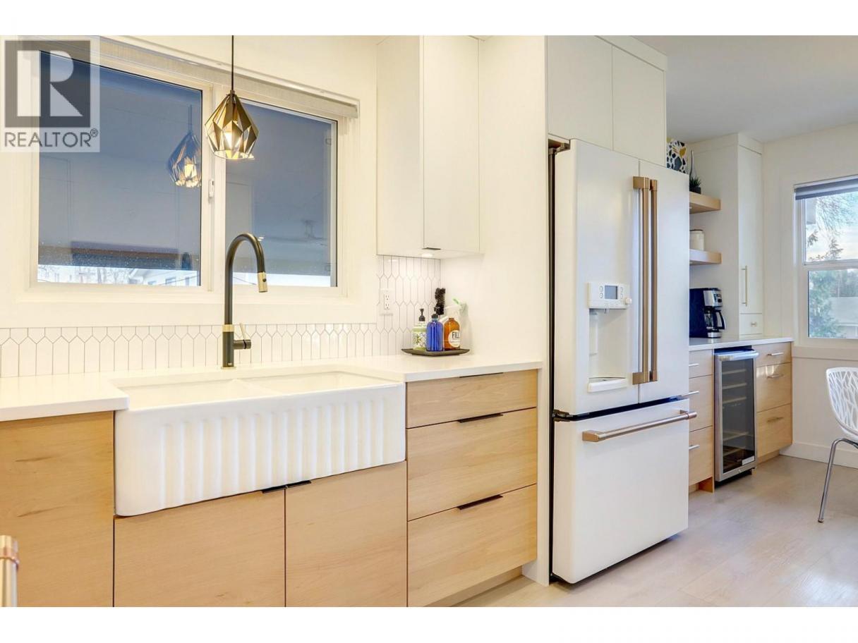 Quietly set on a cul-de-sac in desirable Lower East Hill/Harwood, this beautifully updated home offers privacy, flexibility, and close proximity to downtown. Elevated above the street, the home enjoys excellent separation from the road and abundant natural light throughout. The main floor is bright and thoughtfully renovated with a clean, modern aesthetic. The stunning kitchen features high-end GE Series appliances, custom cabinetry, open shelving, and a functional layout that flows seamlessly into the dining and living areas—perfect for everyday living. Contemporary lighting, wide-plank flooring, and tasteful design choices create a warm, refined atmosphere. Downstairs, a separate unauthorized suite with its own kitchen provides excellent flexibility for intergenerational living, potential rental income, or a home-based business. Two additional bedrooms complete the lower level, with storage thoughtfully tucked into the south-facing bedroom. The layout allows the entire home to function as a single residence, offering flexible living options for buyers seeking a cohesive family home. Outside, the private backyard is peaceful and easy-care, featuring irrigated landscaping and a simple, low-maintenance design. The driveway includes stamped, coloured concrete at the apron with a broomed finish through the ample parking area, providing improved vehicle traction. Measurements taken from iGuide and should be verified if important to a buyer. (id:6769)