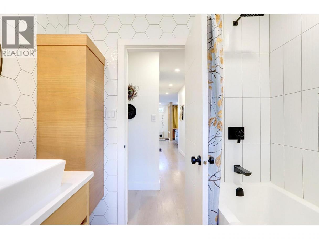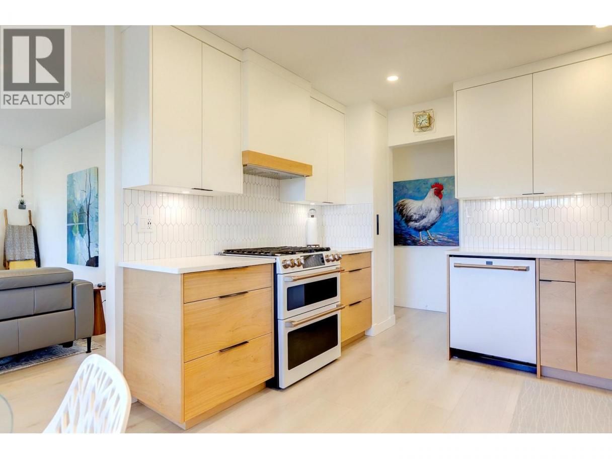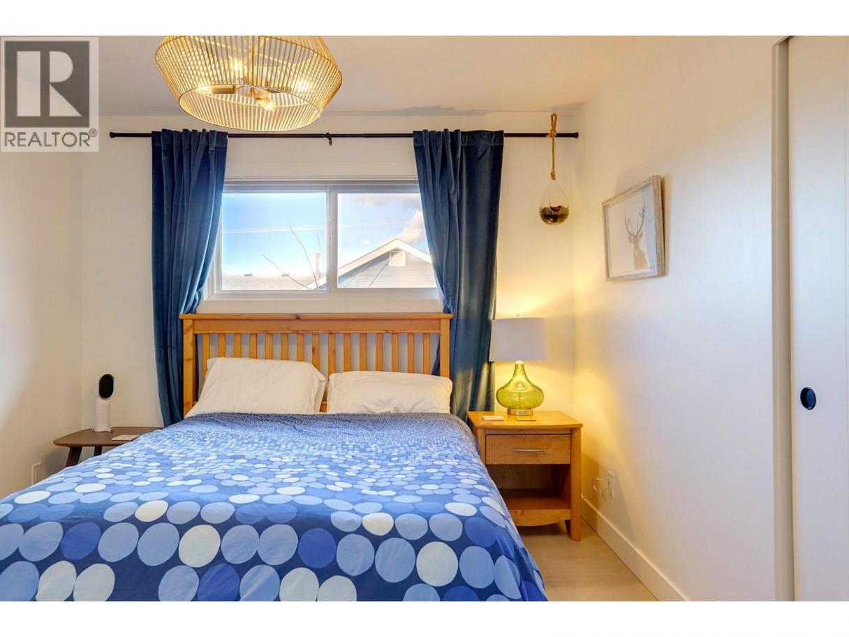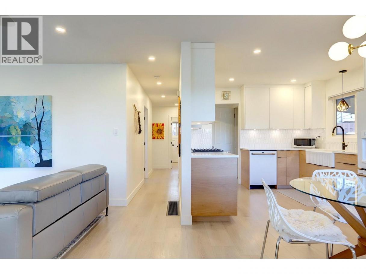 Quietly set on a cul-de-sac in desirable Lower East Hill/Harwood, this beautifully updated home offers privacy, flexibility, and close proximity to downtown. Elevated above the street, the home enjoys excellent separation from the road and abundant natural light throughout. The main floor is bright and thoughtfully renovated with a clean, modern aesthetic. The stunning kitchen features high-end GE Series appliances, custom cabinetry, open shelving, and a functional layout that flows seamlessly into the dining and living areas—perfect for everyday living. Contemporary lighting, wide-plank flooring, and tasteful design choices create a warm, refined atmosphere. Downstairs, a separate unauthorized suite with its own kitchen provides excellent flexibility for intergenerational living, potential rental income, or a home-based business. Two additional bedrooms complete the lower level, with storage thoughtfully tucked into the south-facing bedroom. The layout allows the entire home to function as a single residence, offering flexible living options for buyers seeking a cohesive family home. Outside, the private backyard is peaceful and easy-care, featuring irrigated landscaping and a simple, low-maintenance design. The driveway includes stamped, coloured concrete at the apron with a broomed finish through the ample parking area, providing improved vehicle traction. Measurements taken from iGuide and should be verified if important to a buyer. (id:6769)