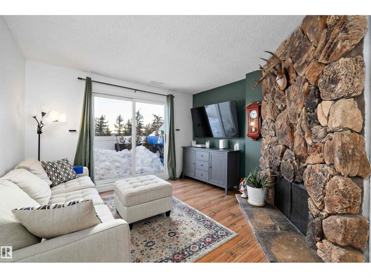 BRIGHT, FUNCTIONAL & MOVE-IN READY. Welcome home to this well-kept 2-storey townhouse in the family-friendly community of Dunluce. Offering 860 sq ft, this home features 2 bedrooms and a full 4-piece bathroom with a practical, efficient layout. The main floor includes a spacious living room with a wood-burning fireplace and access to a balcony with planter boxes overlooking park space. Large windows allow for excellent natural light throughout. The dining area flows into a functional galley kitchen with ample cabinetry. Upstairs you’ll find two generously sized bedrooms, a 4-piece bath, in-suite laundry, and additional storage. Freshly painted throughout with new washer and dryer. Includes one assigned, covered parking stall in the parkade with plug-in. Quiet location with quick access to amenities, transit, and green space, ideal for first-time buyers or investors. (id:6769)