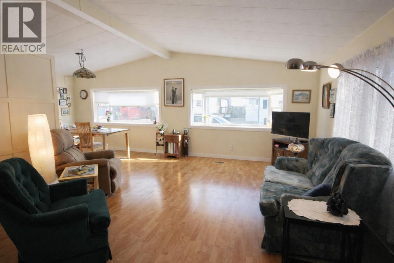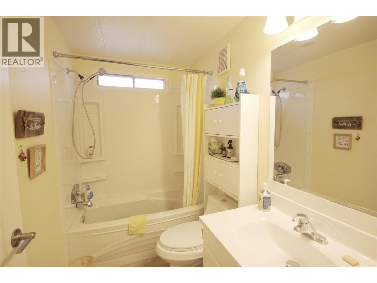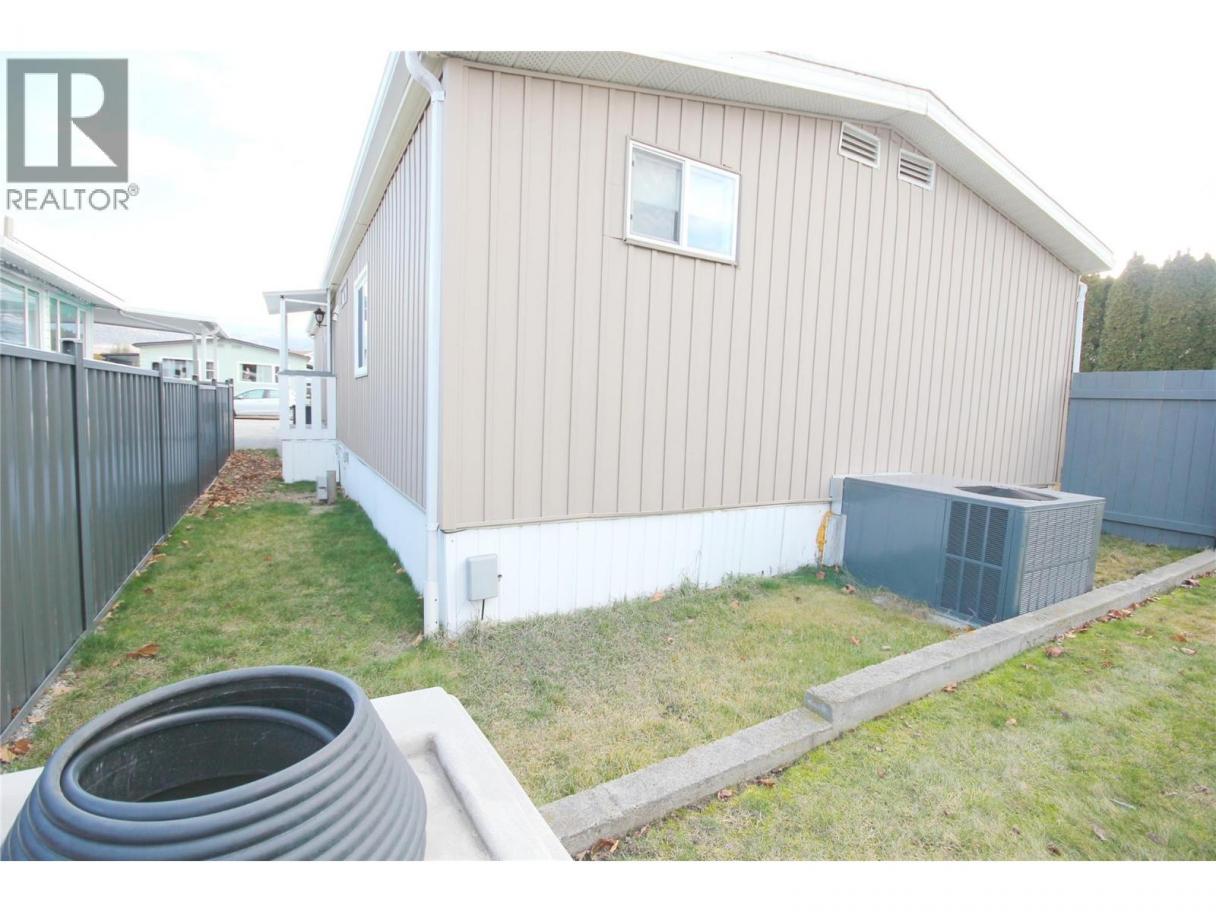 Welcome to a rarely offered, private double-wide home in one of Penticton’s most sought-after 55+ mobile home parks. Perfectly positioned as an end unit, this home offers exceptional privacy while being just steps from Okanagan Lake, Riverside Mall, downtown Penticton, restaurants, and walking paths—leave the car at home and enjoy true Okanagan living. The covered deck overlooks a fully fenced side yard, beautifully shaded by a mature cedar hedge, creating a peaceful outdoor retreat ideal for relaxing or entertaining. Inside, you’ll find 3 bedrooms (two currently used as dens) and 2 bathrooms, including a spacious primary ensuite with a large, updated walk-in shower. The modern kitchen features a newer stove and dishwasher and flows into a bright, open living area with a separate dining room—perfect for hosting family and friends. A convenient laundry room off the kitchen includes a brand-new washer and dryer. Comfort is ensured year-round with a newer furnace and air conditioning. Additional highlights include a carport, large storage shed, and extra storage off the deck. This well-maintained home offers low-maintenance, affordable living in a welcoming 55+ community with 1 pet permitted. A fantastic opportunity to enjoy a walkable lifestyle near Okanagan Lake—don’t miss it! (id:6769)
