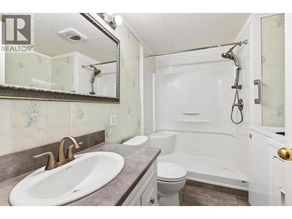 Well maintained 2 bedroom, 1 bathroom manufactured home in the family section of Brock Estates Mobile Home Park. Bright living room with gas fireplace, 2 good sized bedrooms, updated 3 piece bathroom and a large storage room or den. Outside has a nice covered deck with access to a fenced yard with approximately 16x12 shed and underground sprinklers. There are many updates done throughout the years including windows/doors, torch-on roof, laminate flooring, hotwater tank and furnace. Move-in ready with 3 appliances and 2 wall-unit air conditioners included. Great location within the park and quick possession is possible. (id:6769)