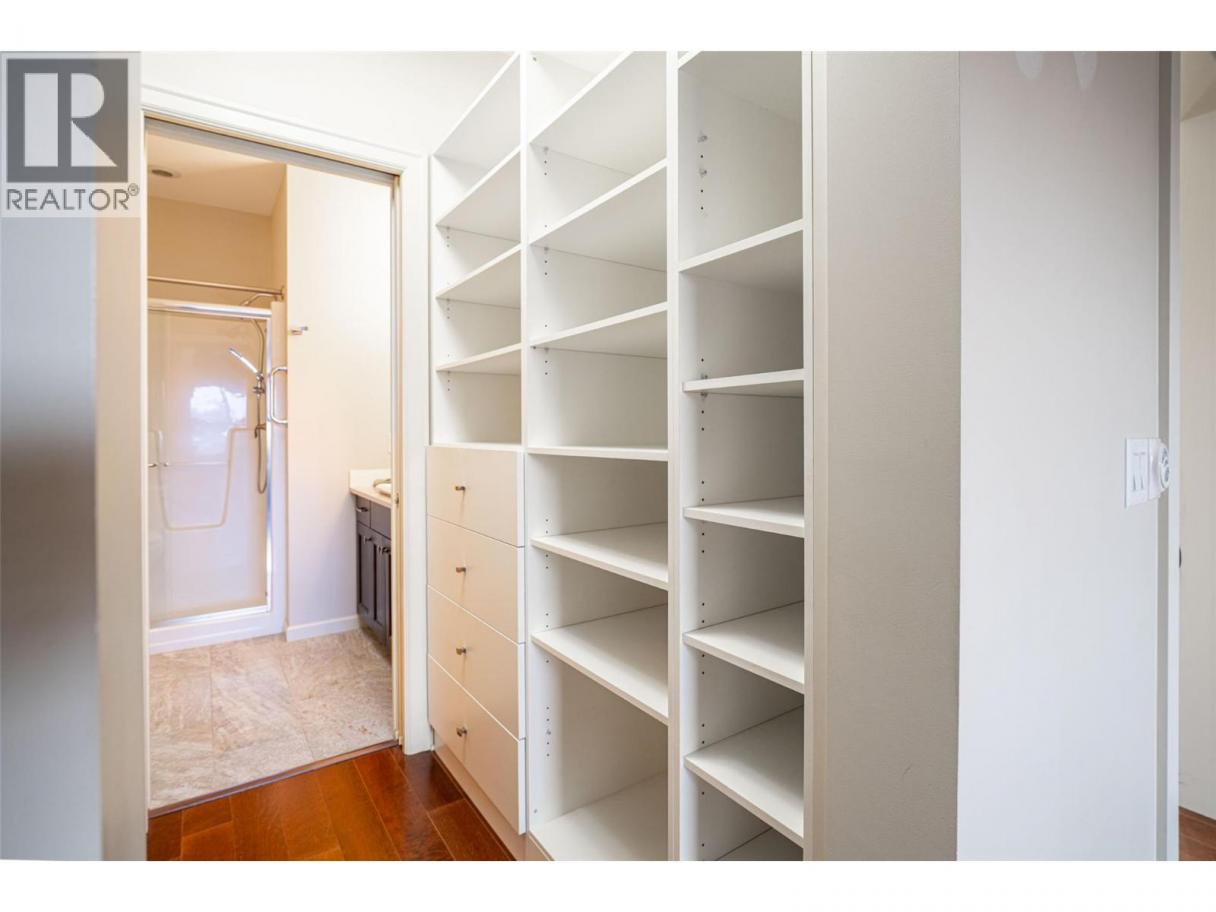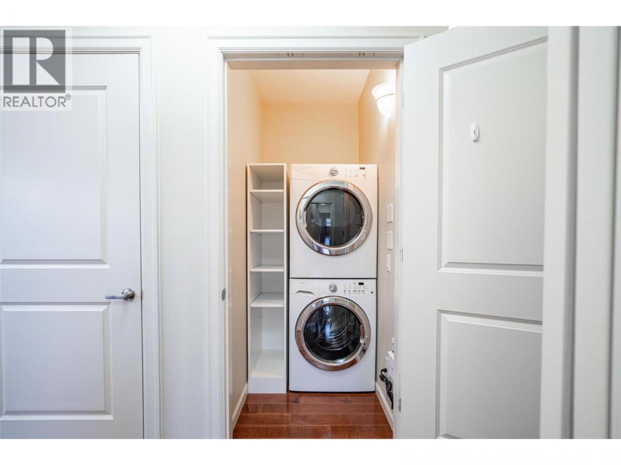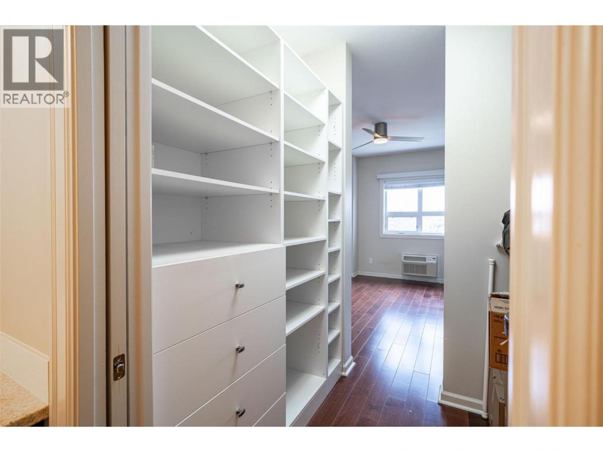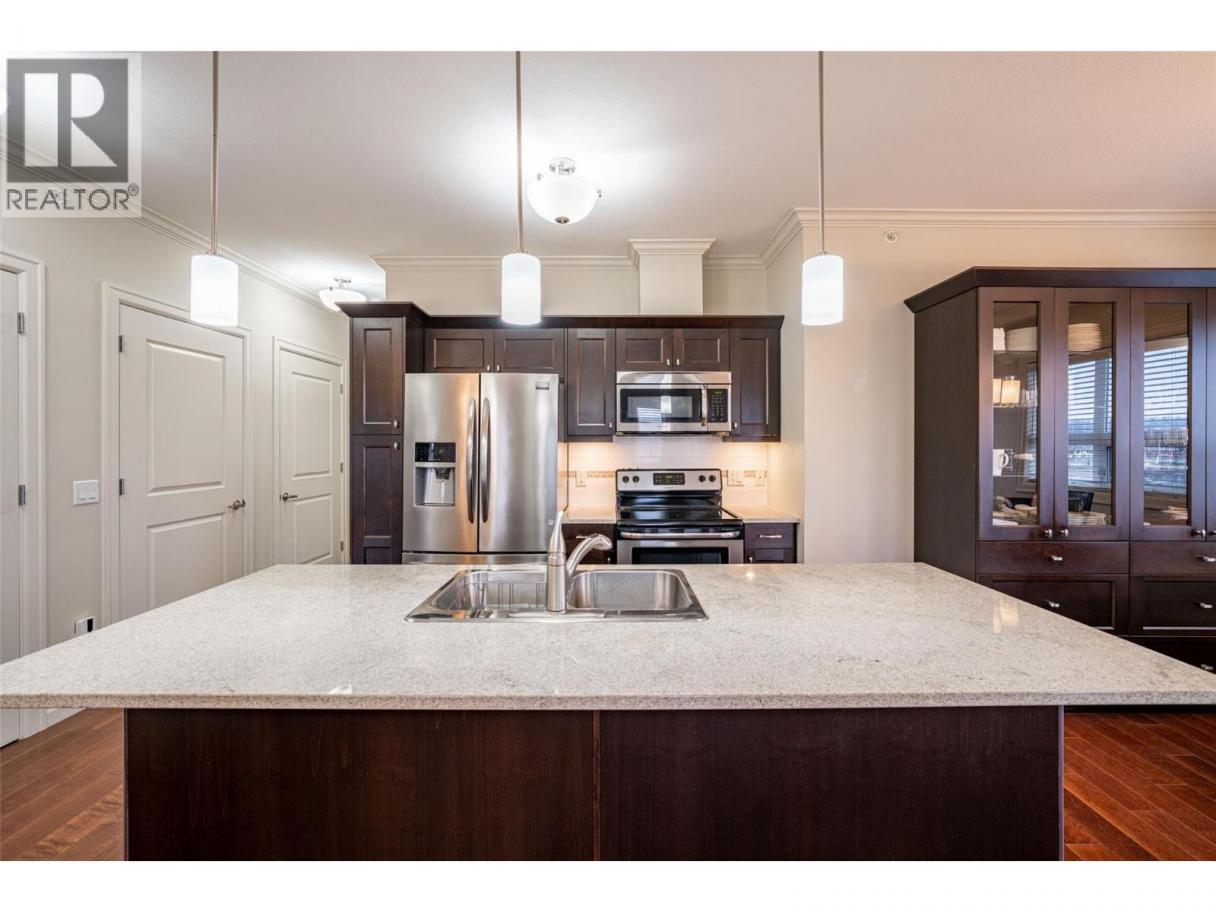 Gorgeous top floor corner suite East exposure for lots of natural light & beautiful mountain & city views. This bright 2 bdrm offers an open floor plan with 9' ceilings, a kitchen complete with stone counters, 4 stainless appliances & large island with a breakfast bar. Easy care laminate flooring thru-out and decorative crown molding in the main living area are two features you will be sure to enjoy. A large deck is located off the dining room where you can sit & enjoy the morning sunshine while you look out to the tree lined street and watch all the activity outside. Spacious 2nd bdrm features a convenient built-in murphy bed with computer desk. The main bath with has a nice soaker tub if you are so inclined. The master can accommodate a king-sized bed, has a generous walk-thru closet with convenient built-in shelving & full ensuite with walk-in shower. Secure u/g parking + a downtown location just a few minutes to all shopping. No property purchase tax & 1 Year Schubert Center Membership. Building is pet friendly! Catherine Gardens is a non-profit society dedicated to providing affordable 55+ housing with the peace of mind of a newer building. No responsibility to sit on a strata council & a maintenance/occupancy fee that covers EVERYTHING (water, sewer, garbage, snow removal, TAXES, electrical/plumbing maintenance & repairs, appliance repairs/replacement & landscaping) except content insurance, hydro, cable & telephone! Come and enjoy a carefree lifestyle. (id:6769)
