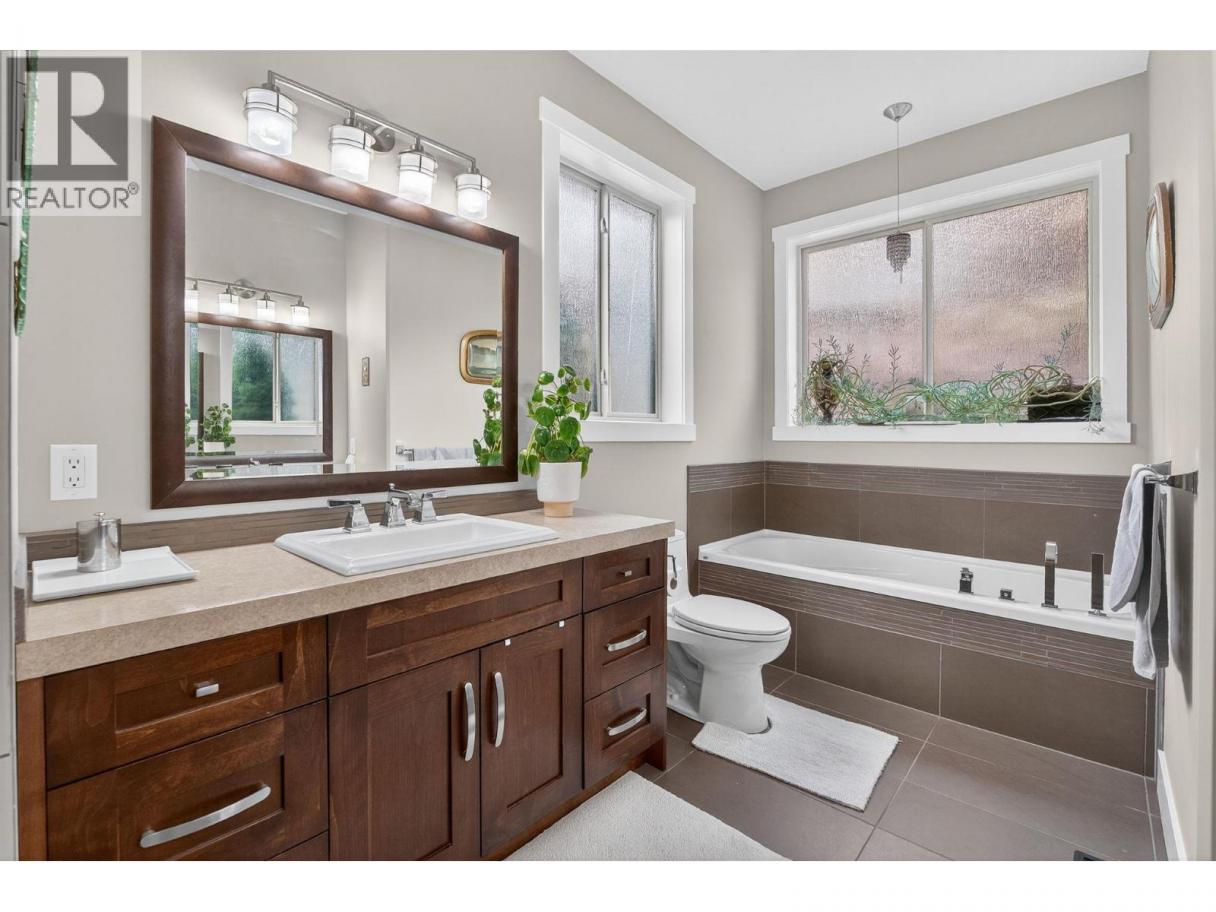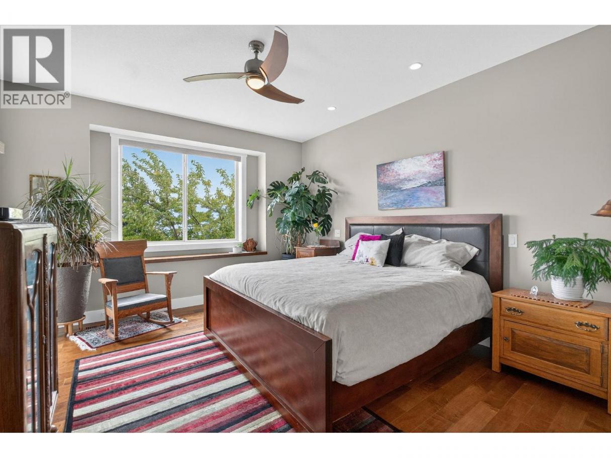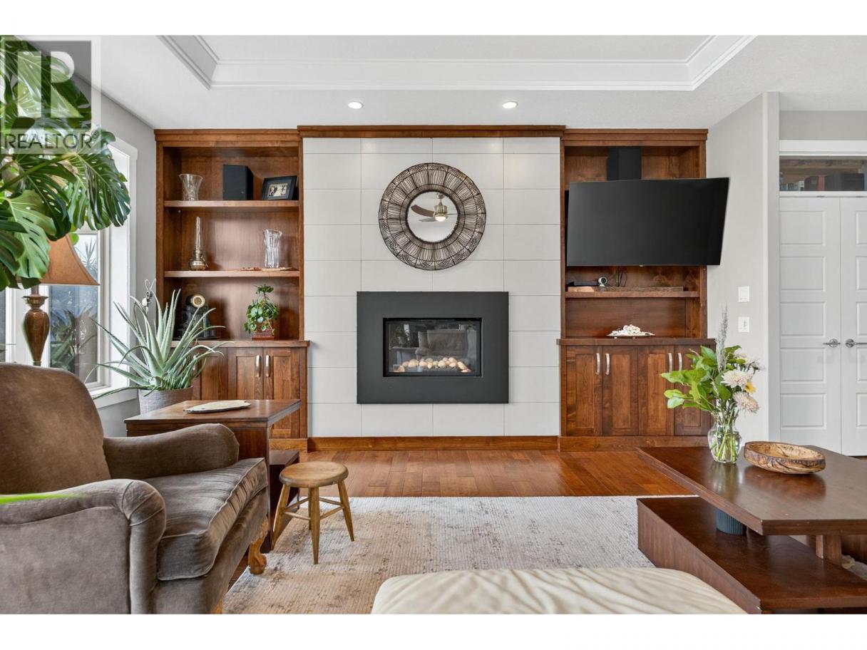Set in a cul-de-sac, this custom craftsman home was built by an award-winning builder. This 4 bedroom + den walk-out rancher offers lake and mountain views and a layout that works for everyday living. You’ll notice attention to detail and a plan that takes full advantage of its surroundings while maintaining privacy. The main floor is bright and open, with expansive windows framing the view and filling the space with natural light. The living room with tray ceiling is anchored by a gas fireplace with built-in solid wood cabinetry and flows into the dining area and kitchen. The kitchen is functional and inviting, featuring a gas range, generous storage, granite countertops, a large sit-up island, and a sink positioned to enjoy the scenery. Step outside to the upper deck to relax, entertain, or take in nature. The primary bedroom offers a private escape with direct deck access, walk-in custom closet system, and an ensuite with dual sinks, a soaker tub, and a separate shower. There is also an office and large laundry room for one-level living convenience. The lower level is ideal for teens, guests, or extended family, with two additional bedrooms (potential for a third), a full bathroom, and a flexible bonus room under the suspended slab garage—perfect for a gym, games room, or studio. The outdoor living sets this home apart. The landscaped yard features multiple seating areas, including a front patio and a deck with stairs to the tiered backyard designed for privacy and enjoyment. Highlights include barn doors for privacy, an infinity hot tub, and an outdoor shower, all positioned to make the most of sun and the views. There’s also boat or RV parking along the side of the home. Located minutes from Peachland, nearby beaches, and West Kelowna amenities, this property delivers space, views, and lifestyle in one package. (id:6769)
