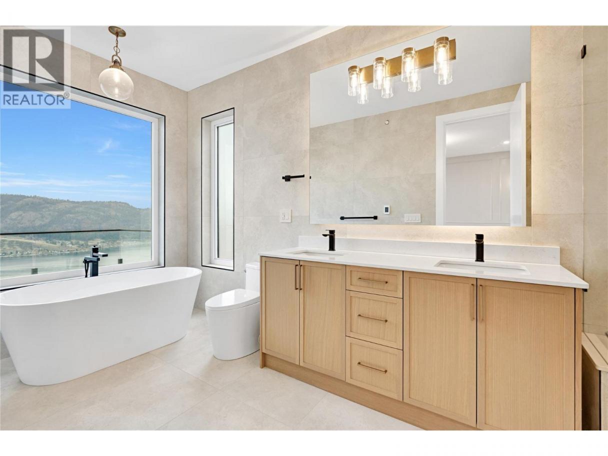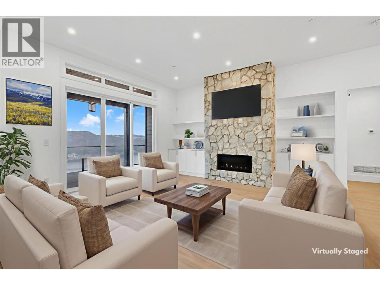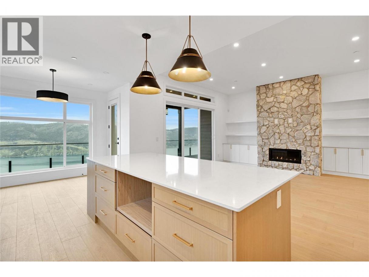 *Kitchen + laundry appliances, outdoor decking topper, and security + control 4 system will be installed, and are included in the purchase price.* Be the first to experience this exceptional new build in the prestigious Adventure Bay community, enhanced with premium upgrades. This stunning three-level home showcases panoramic Okanagan Lake views from every floor. The top level features an open-concept kitchen, dining, and living area with expansive windows and a contemporary gas fireplace with stone surround and framed built-ins. The gourmet kitchen offers rich wood and white shaker cabinetry, stone countertops, a large centre island, and a convenient pot filler. The main-level primary suite boasts a walk-in closet, luxurious ensuite, and access to a covered patio perfect for lakeside dining. The mid-level includes three bedrooms, two full bathrooms, first wet bar, a second balcony, and a striking stone-clad wine room. The lower level features a generous bonus rec room living area, plus full bath, with seamless yard access, as well as a custom second wet bar, ideal for entertaining. Adventure Bay residents enjoy exclusive access to a private beach, tennis courts, and scenic trails. Refined style, premium finishes, and breathtaking lake views define this extraordinary Vernon home. (id:6769)