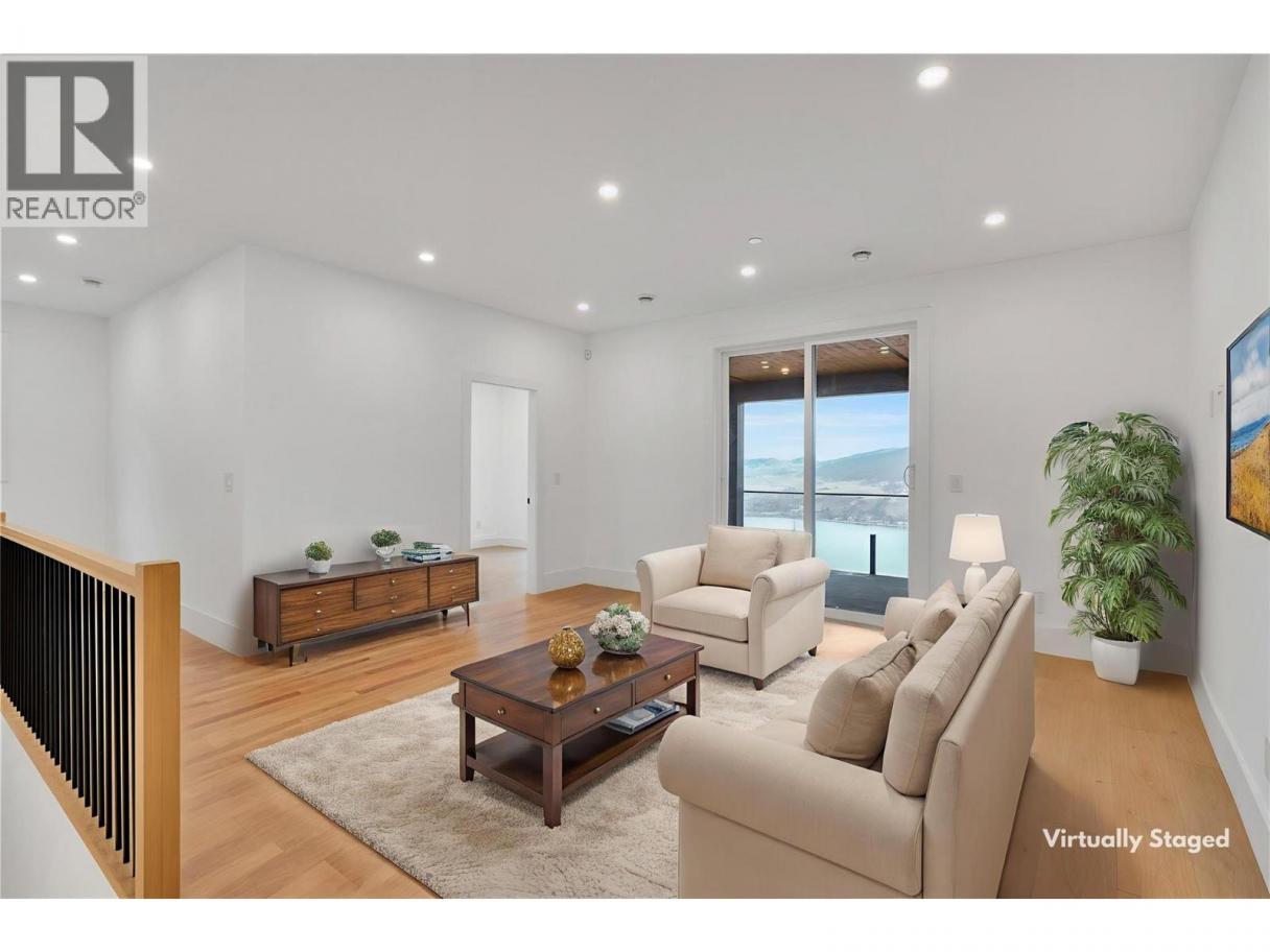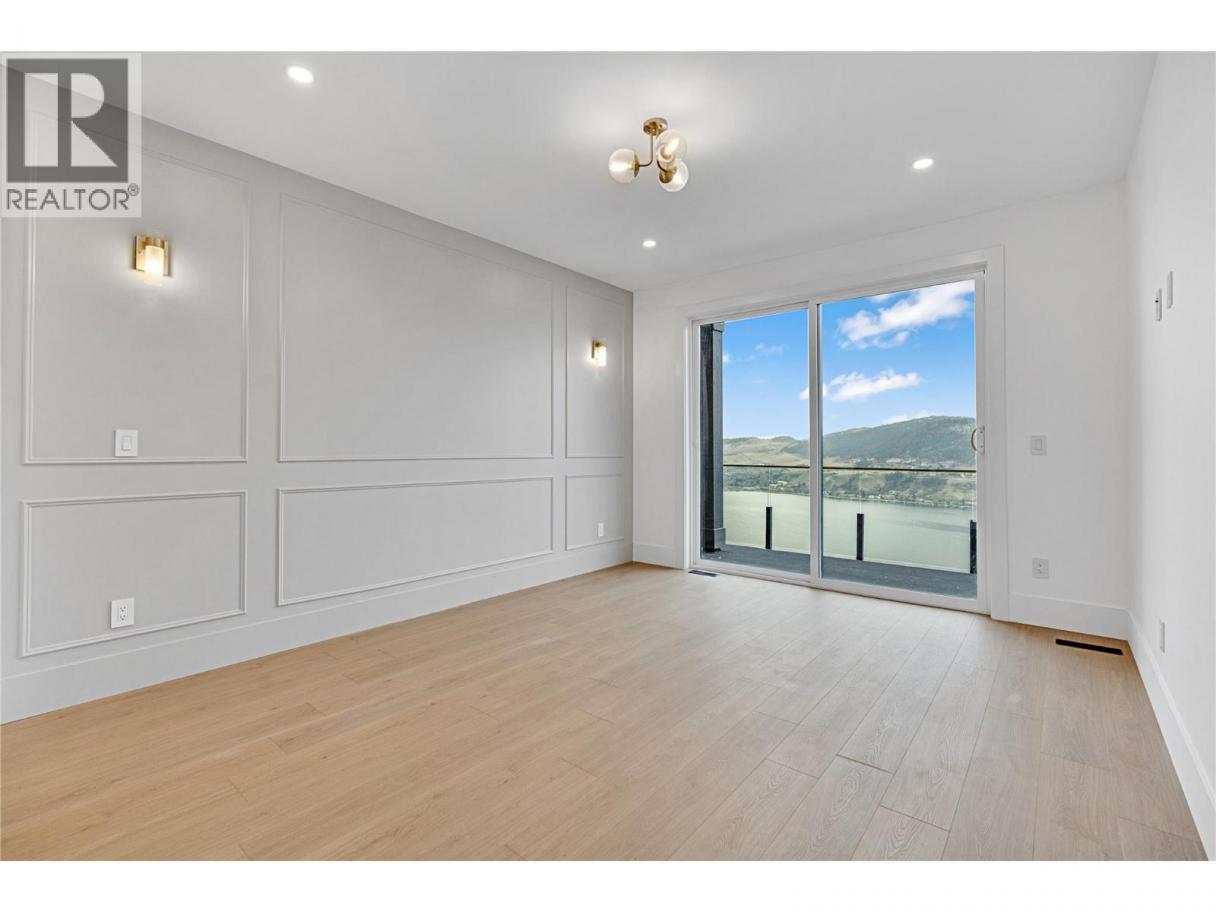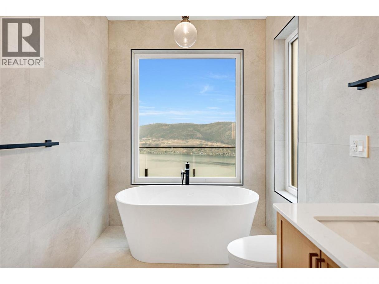 *Kitchen + laundry appliances, outdoor decking topper, and security + control 4 system will be installed, and are included in the purchase price.* Be the first to experience this exceptional new build in the prestigious Adventure Bay community, enhanced with premium upgrades. This stunning three-level home showcases panoramic Okanagan Lake views from every floor. The top level features an open-concept kitchen, dining, and living area with expansive windows and a contemporary gas fireplace with stone surround and framed built-ins. The gourmet kitchen offers rich wood and white shaker cabinetry, stone countertops, a large centre island, and a convenient pot filler. The main-level primary suite boasts a walk-in closet, luxurious ensuite, and access to a covered patio perfect for lakeside dining. The mid-level includes three bedrooms, two full bathrooms, first wet bar, a second balcony, and a striking stone-clad wine room. The lower level features a generous bonus rec room living area, plus full bath, with seamless yard access, as well as a custom second wet bar, ideal for entertaining. Adventure Bay residents enjoy exclusive access to a private beach, tennis courts, and scenic trails. Refined style, premium finishes, and breathtaking lake views define this extraordinary Vernon home. (id:6769)