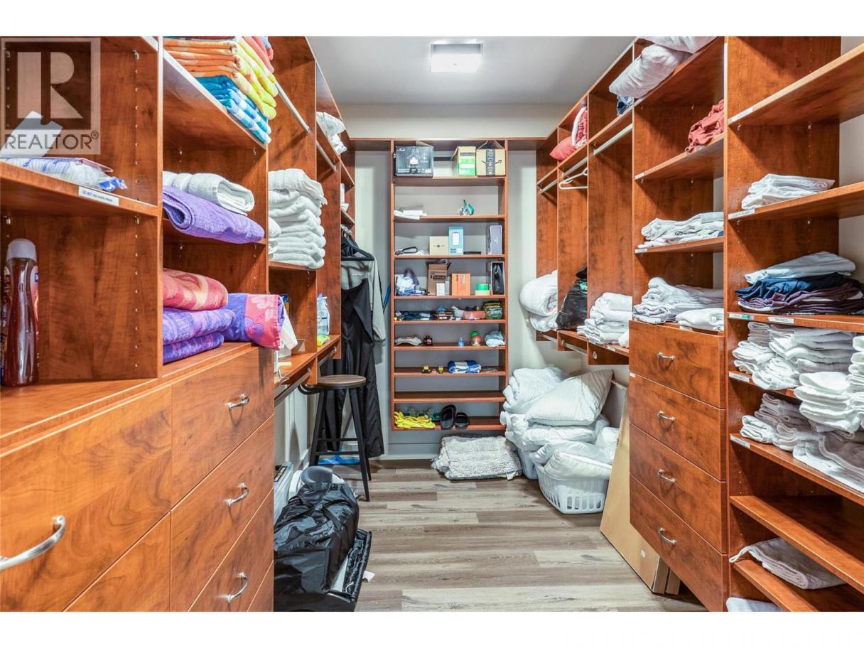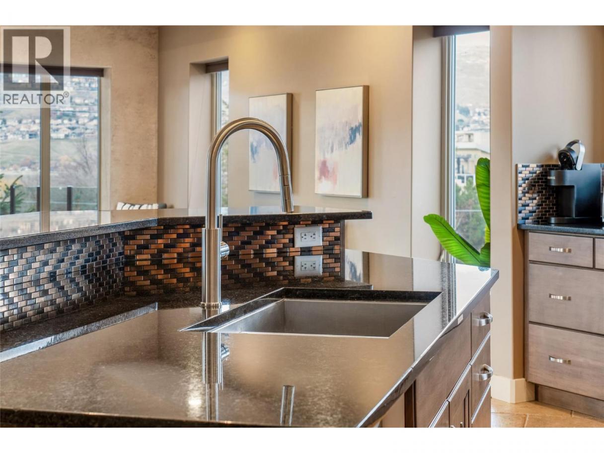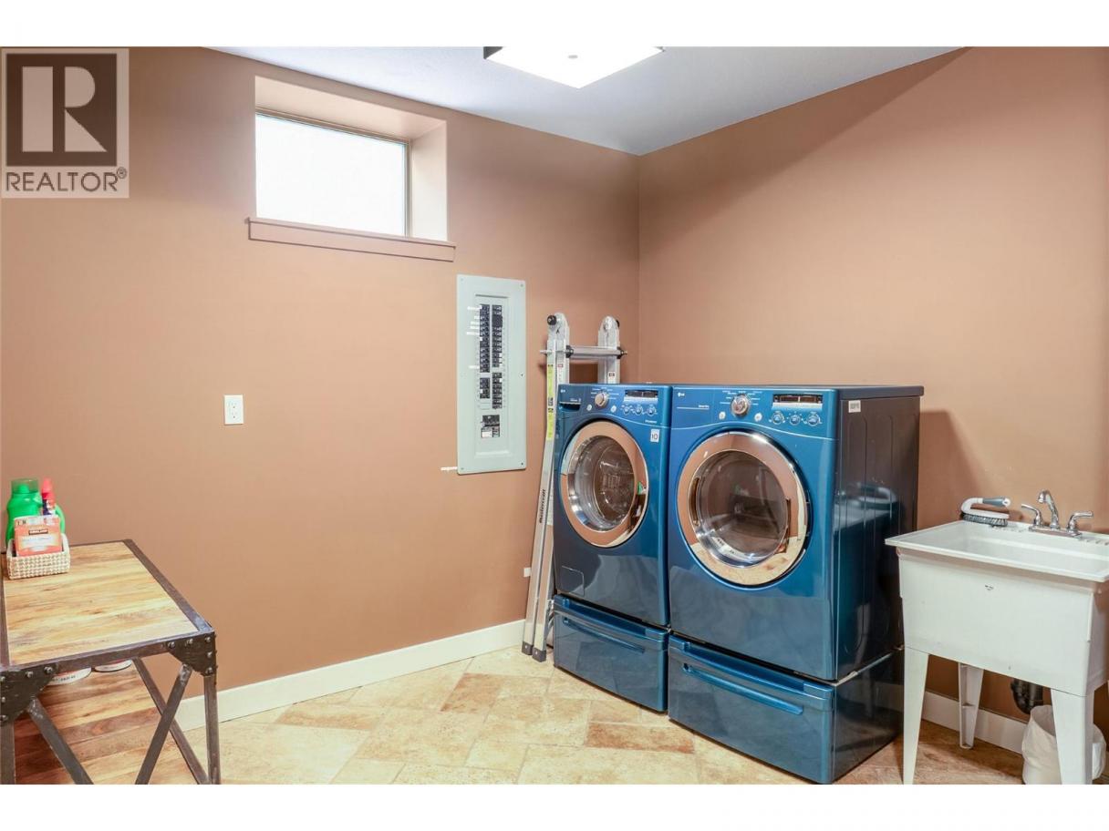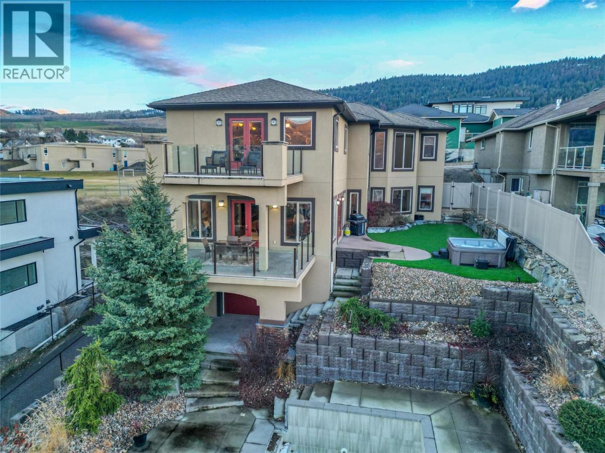 Perched in scenic Okanagan Landing, this stunning custom-built home pairs refined luxury with resort-style outdoor living and breathtaking lake & mountain views. The newly re-tiled heated saltwater pool invites you to soak up summer days, while the hot tub & outdoor gas fireplace offer cozy evenings under the stars. Inside, elegant architectural details shine-soaring ceilings, curved walls, & custom niches create a grand yet welcoming ambiance. The open-concept main floor flows seamlessly to the covered deck and yard with direct pool access, perfect for entertaining. The gourmet kitchen features a granite island, raised eating bar, tile backsplash, floor-to-ceiling cabinetry, & high-end appliances. Heated tile & luxury vinyl plank floors add style & comfort throughout the main level. The spacious primary suite features double doors, a cozy lounge area, two walk-in closets, & a spa-like ensuite with a jetted tub, tiled shower with body jets, and built-in vanity. Three additional bedrooms offer custom layouts to suit any need. Downstairs, a large rec room with a unique garage door entry, a roughed-in kitchen, and partially finished bathroom provide excellent potential for a guest suite or income-generating space. The beautifully landscaped yard showcases tiered rockwork, multi-level patios, & artificial turf, designed for year-round enjoyment. With dual furnaces & thoughtful high-end finishes throughout, this exceptional home is ready to impress-book your private tour today! (id:6769)