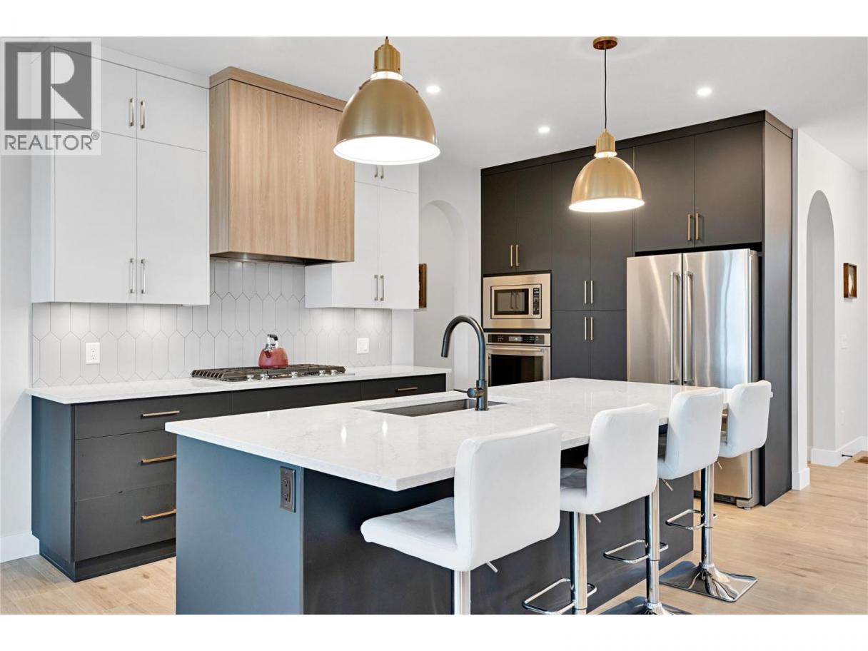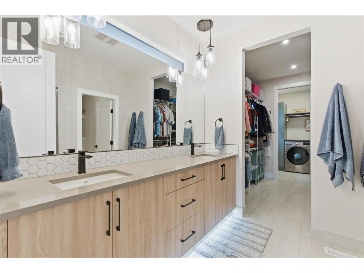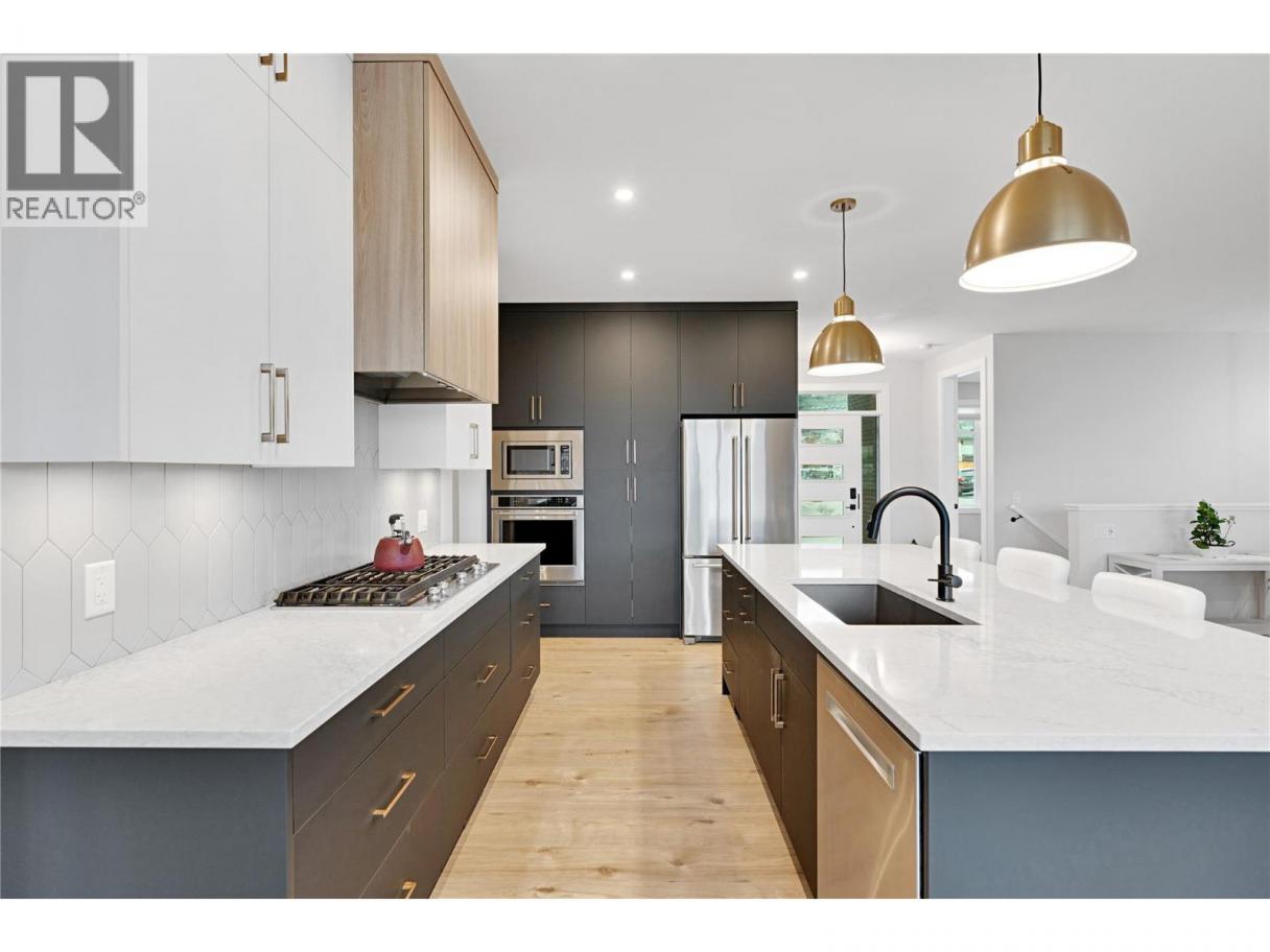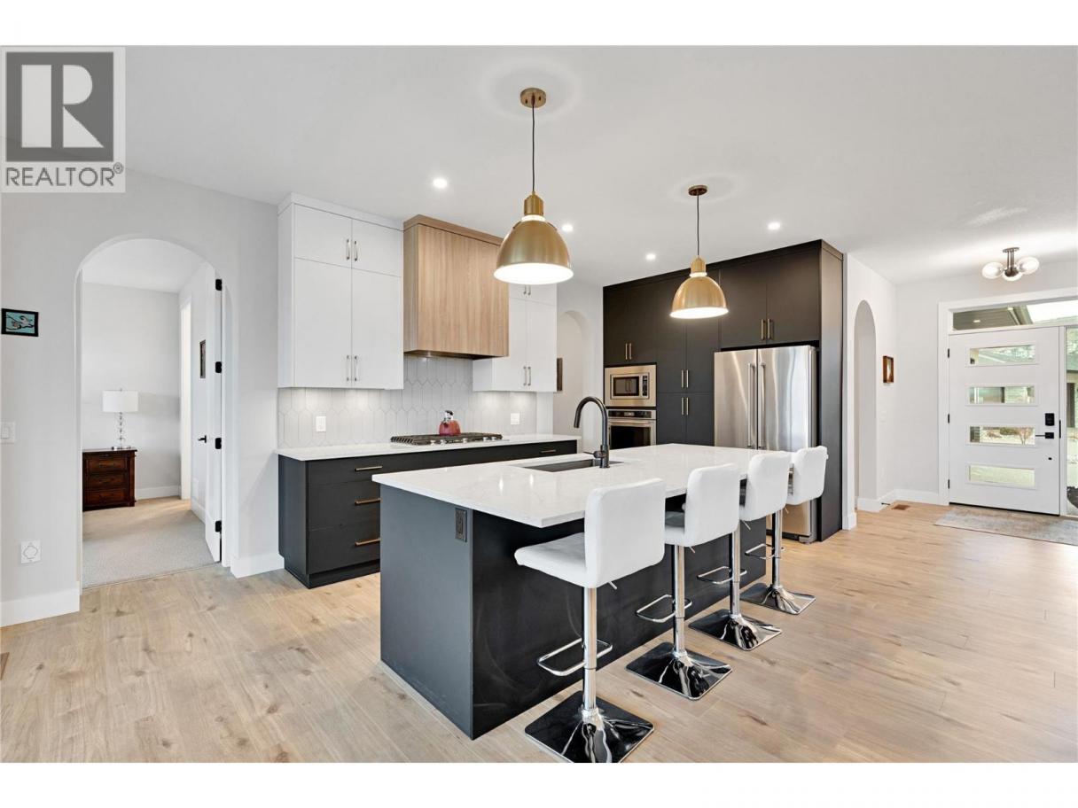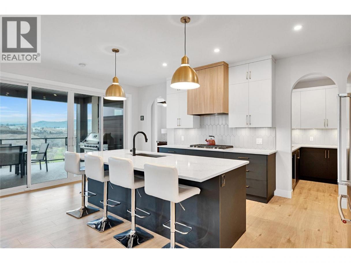 Built in 2023, this west-facing rancher with walk-out basement showcases sweeping views as a backdrop. The main level is designed for everyday living, beginning with a flexible bedroom or office at the entry. The heart of the home features a modern kitchen with stainless steel appliances, quartz countertops, island and walk-in butler’s pantry, flowing seamlessly into the living room with fireplace and large windows framing the view. Step onto the deck which includes a solar shade, to enjoy morning coffee or evening sunsets overlooking the valley, Vernon Golf and Country Club and Kalamalka Lake. The primary bedroom and ensuite is privately positioned with a walk-in closet that connects directly to the laundry room for convenience, along with a full bathroom on the main level. A double garage, custom cabinetry and a built-in boot room provides excellent storage. Downstairs, the walk-out basement offers generous additional living space with a family area, gym, two bedrooms, bathroom and set up for a future wet bar. Further a generous storage rooms awaits. Outside, the lower covered patio creates another perfect vantage point to take in the views. Built with quality in mind, the home features an ICF foundation, R60 attic insulation, tankless hot water, in-floor ensuite heating, and a fully landscaped, low-maintenance yard. Ideally located just minutes to Kalamalka Lake, parks, tennis courts, Middleton Mountain walking trails, golf, and only 30 minutes to Kelowna International Airport. (id:6769)