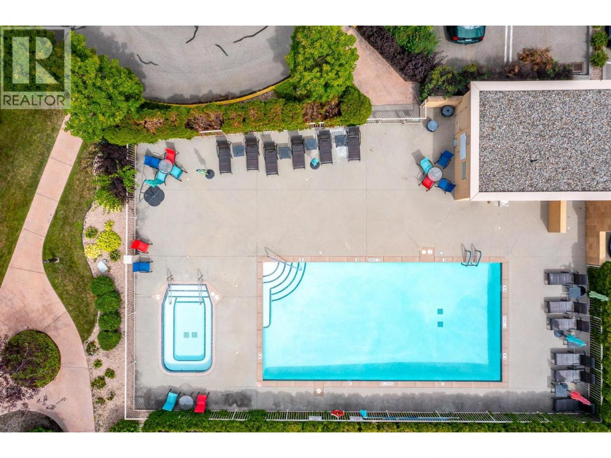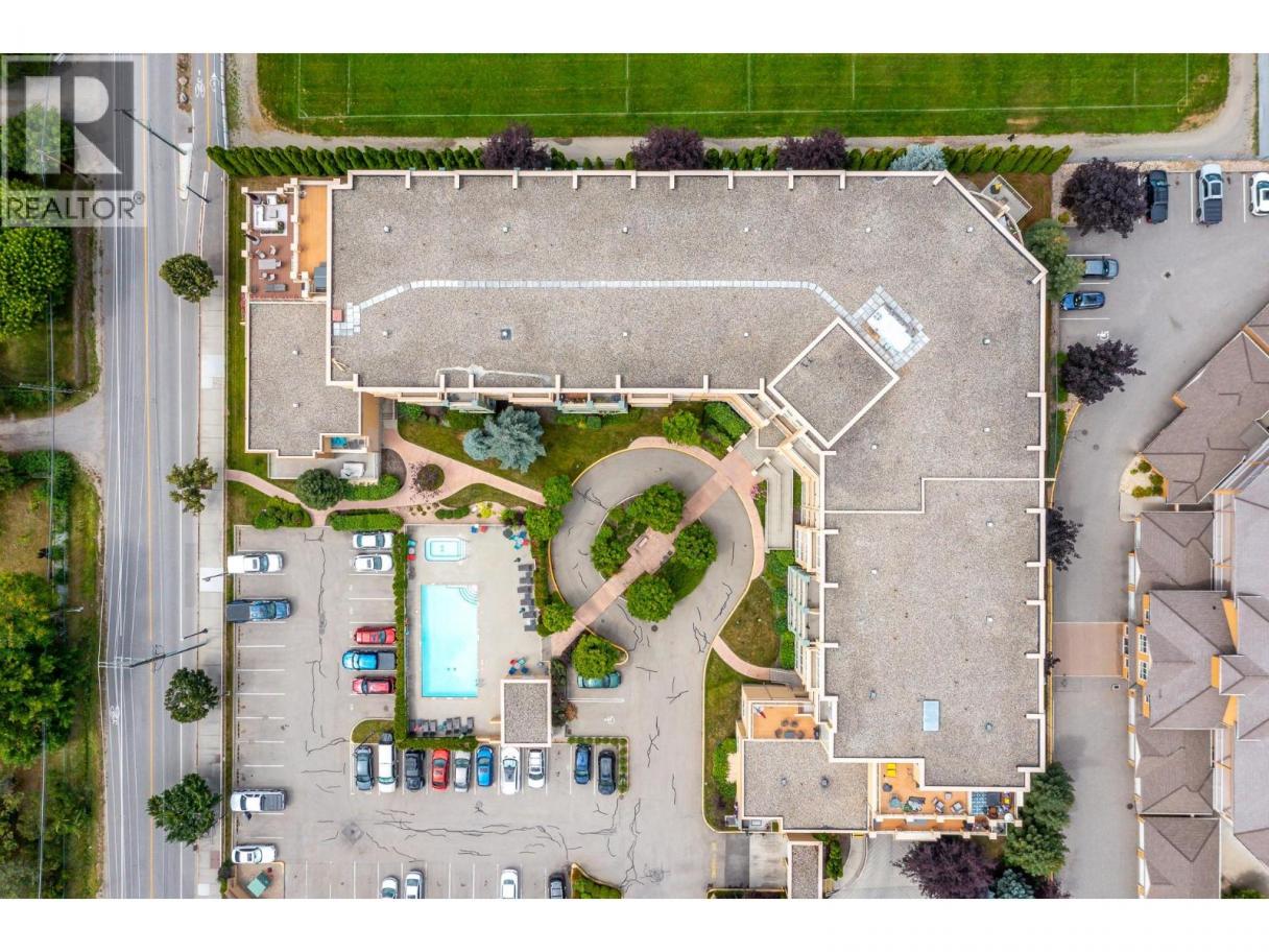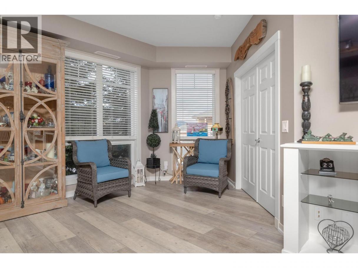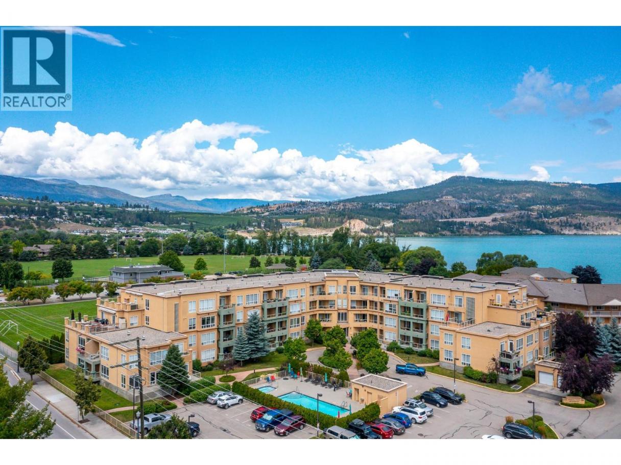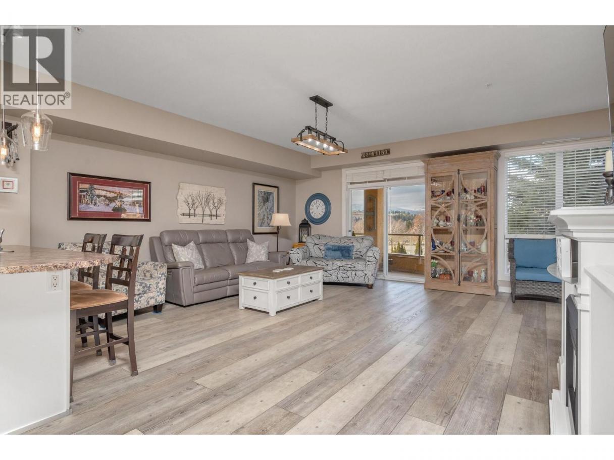 Enjoy resort-style living in this spacious 1,359 sq. ft., 2-bedroom, 2-bathroom condo at the sought-after Emerald Point community. Located on the second floor and facing northwest towards Wood Lake, this beautifully maintained home offers breathtaking sunset views and an unbeatable location. The open-concept layout features 9’ ceilings and floor-to-ceiling windows, flooding the space with natural light. The generous primary bedroom easily accommodates a king-size bed and includes a walk-in closet with custom built-ins and a full ensuite. The second bedroom is equally spacious with a double closet and built-ins—perfect for guests or a home office. The kitchen boasts stainless steel appliances, including a new over-the-range microwave/convection oven, providing the convenience of two ovens for entertaining. Rigid engineered luxury vinyl plank flooring (2021), an electric fireplace with built-ins and under-cabinet lighting, and extensive closet organizers throughout. Additional highlights include: Geothermal heating and central air conditioning with a new heat pump (2021)/Large laundry/utility room with new stackable washer & dryer (2023)/New hot water tank (2024) and new refrigerator (2023)/ . Enjoy the heated outdoor pool and hot tub, exercise room, dry sauna, and a social room with a full kitchen and large patio, ideal for gatherings. With no age restrictions, pet-friendly policies, and proximity to the airport, UBCO, and shopping ,this one has it all! (id:6769)