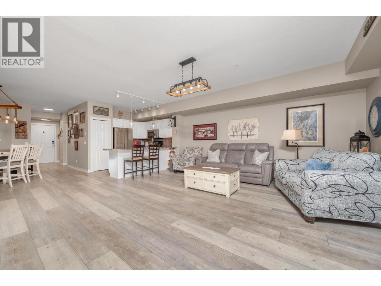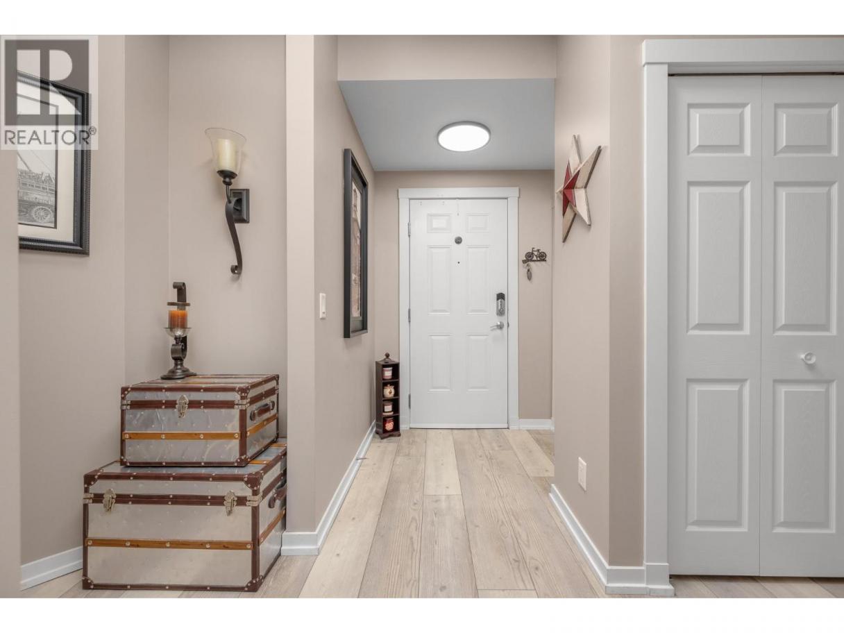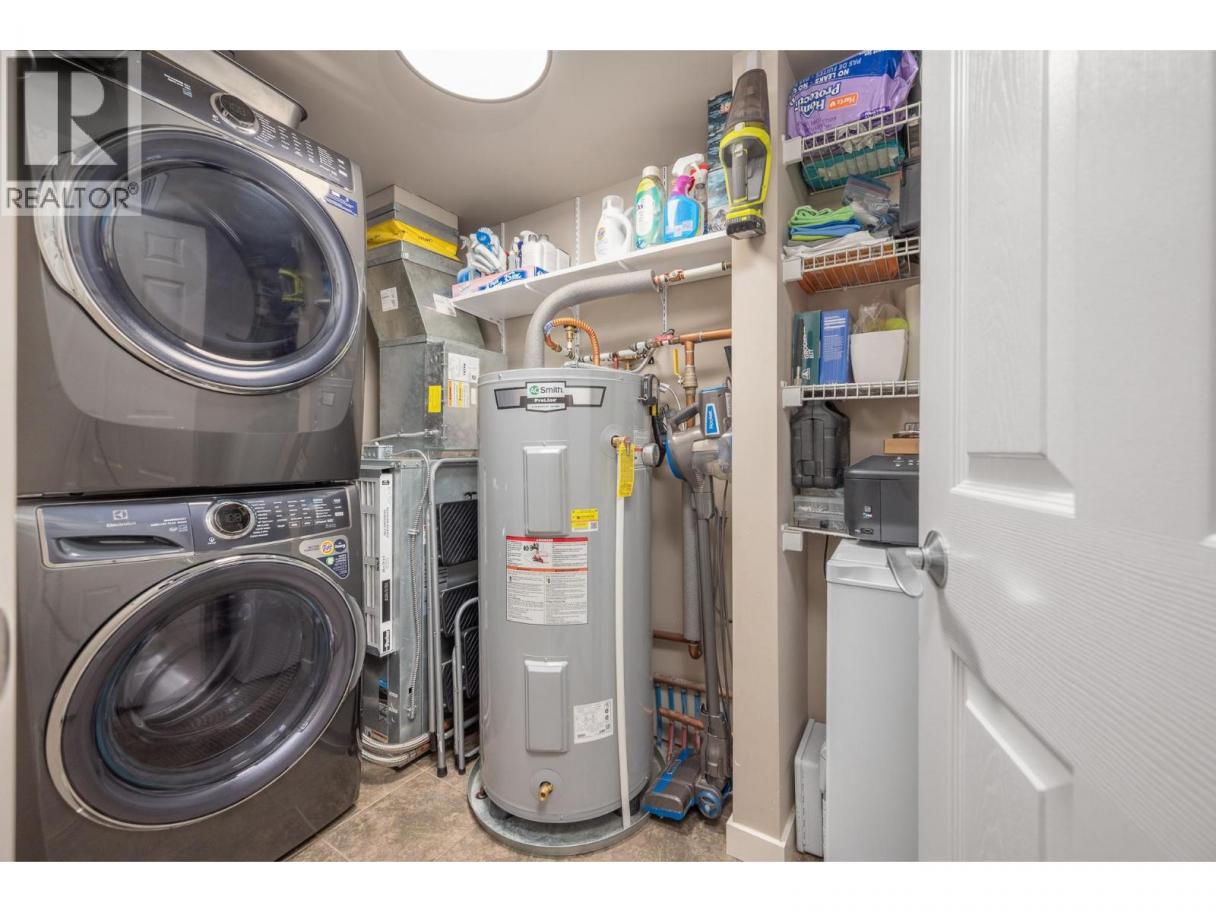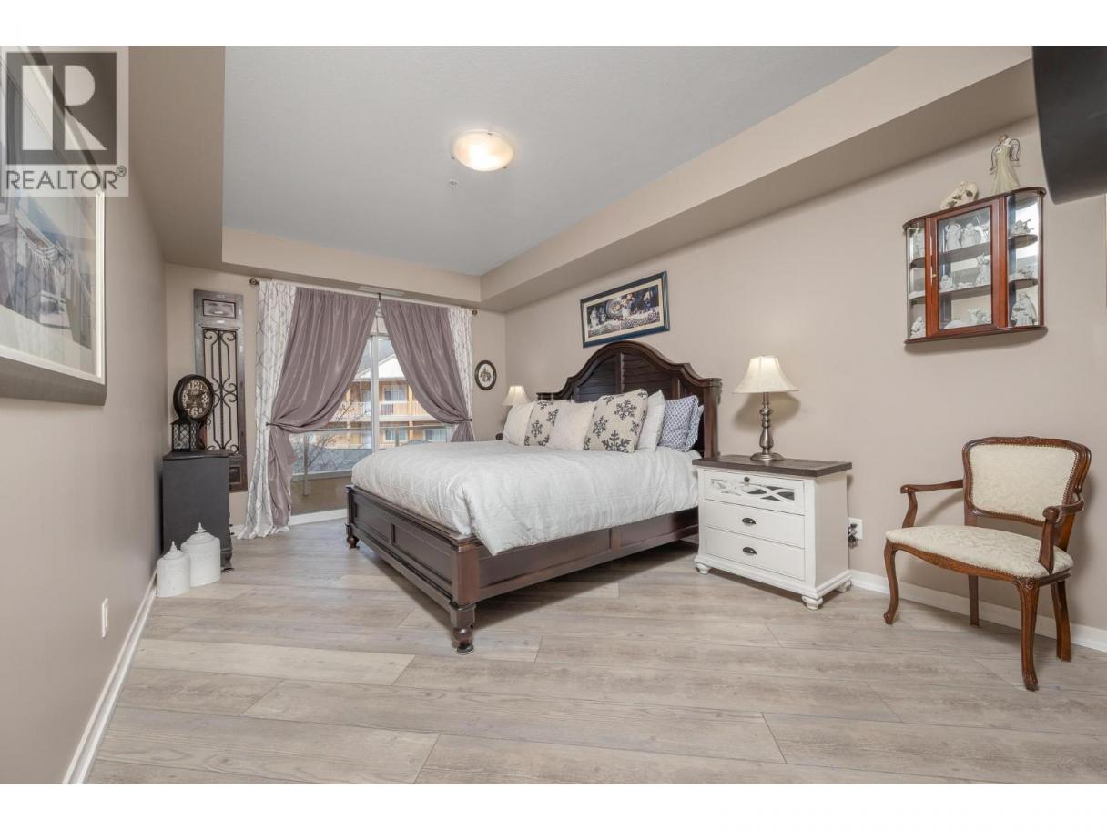 Enjoy resort-style living in this spacious 1,359 sq. ft., 2-bedroom, 2-bathroom condo at the sought-after Emerald Point community. Located on the second floor and facing northwest towards Wood Lake, this beautifully maintained home offers breathtaking sunset views and an unbeatable location. The open-concept layout features 9’ ceilings and floor-to-ceiling windows, flooding the space with natural light. The generous primary bedroom easily accommodates a king-size bed and includes a walk-in closet with custom built-ins and a full ensuite. The second bedroom is equally spacious with a double closet and built-ins—perfect for guests or a home office. The kitchen boasts stainless steel appliances, including a new over-the-range microwave/convection oven, providing the convenience of two ovens for entertaining. Rigid engineered luxury vinyl plank flooring (2021), an electric fireplace with built-ins and under-cabinet lighting, and extensive closet organizers throughout. Additional highlights include: Geothermal heating and central air conditioning with a new heat pump (2021)/Large laundry/utility room with new stackable washer & dryer (2023)/New hot water tank (2024) and new refrigerator (2023)/ . Enjoy the heated outdoor pool and hot tub, exercise room, dry sauna, and a social room with a full kitchen and large patio, ideal for gatherings. With no age restrictions, pet-friendly policies, and proximity to the airport, UBCO, and shopping ,this one has it all! (id:6769)
