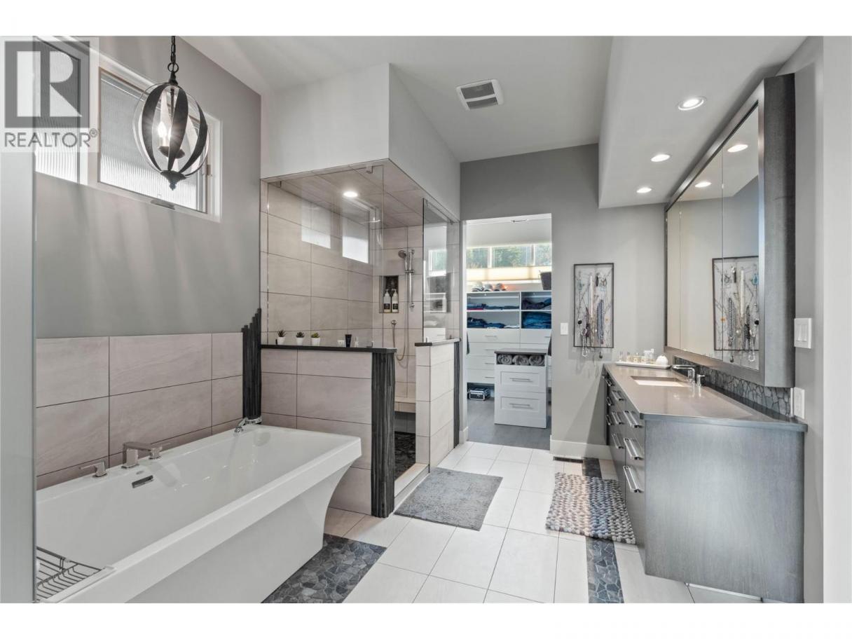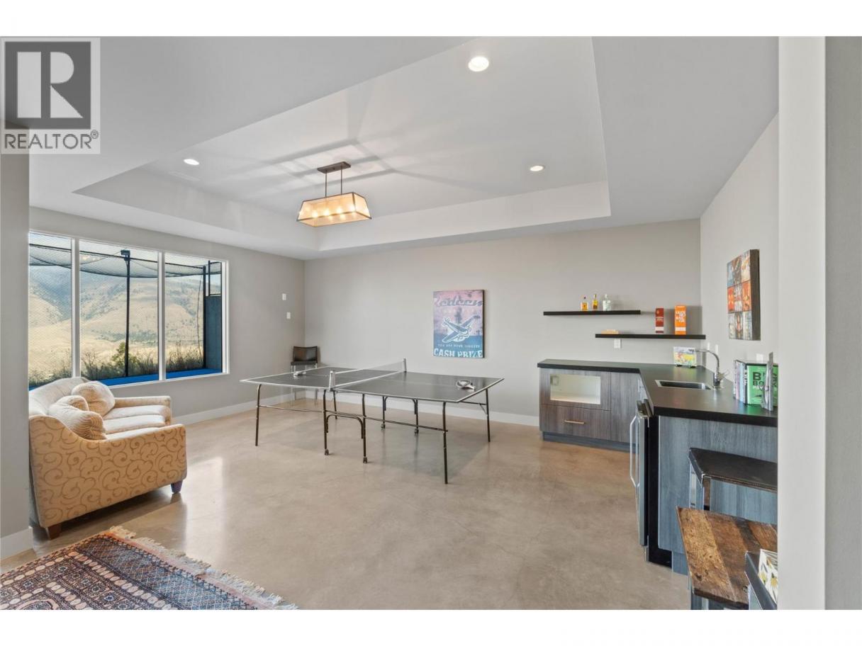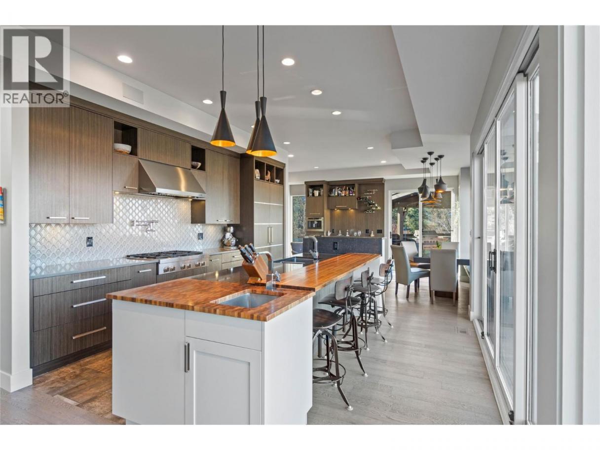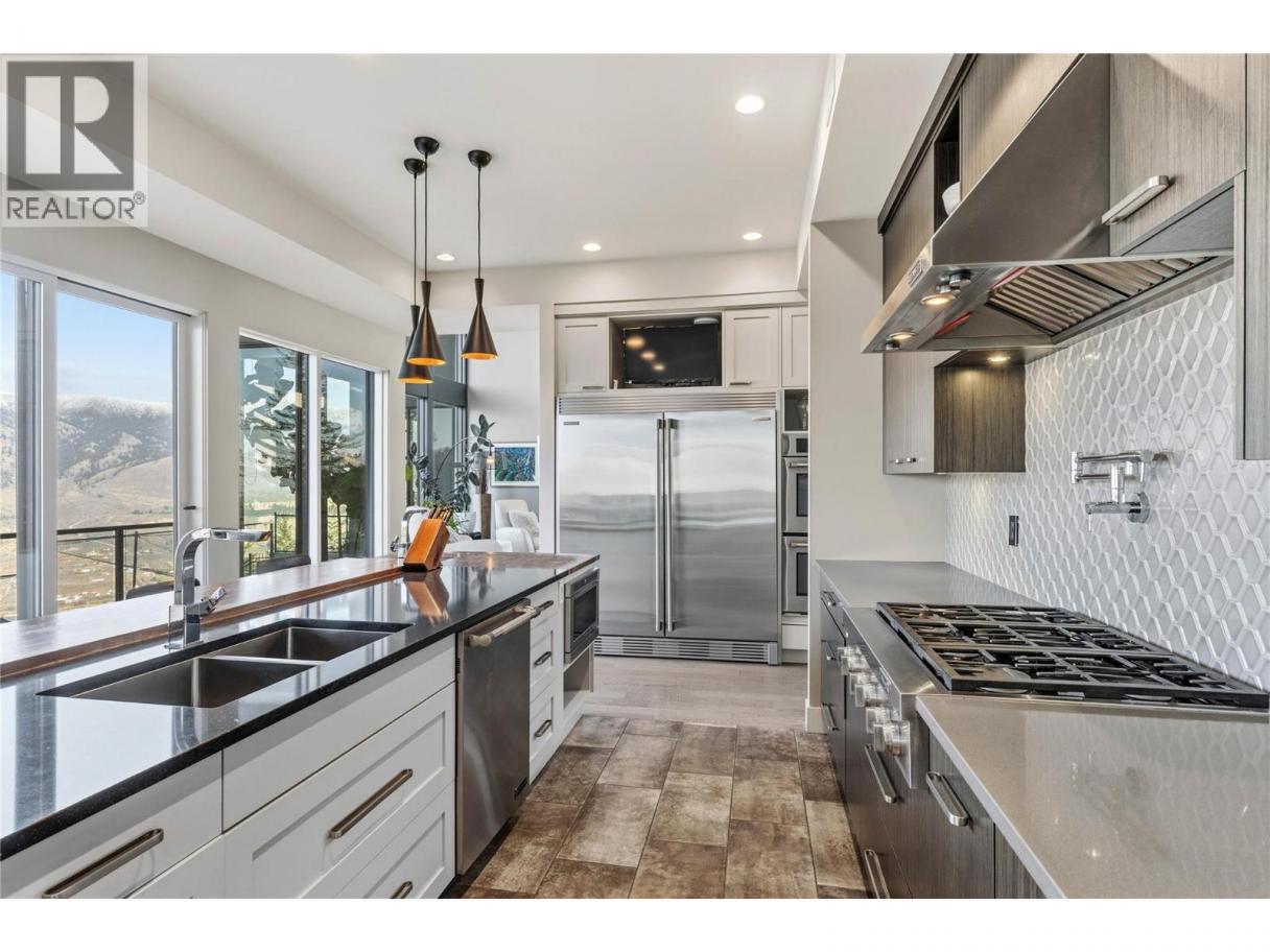 Welcome to this exclusive, Willms-designed home offering the rare balance of refined luxury, privacy, and space for an active, growing family—set against a breathtaking panoramic view of the entire river valley. The home welcomes you with soaring vaulted ceilings, a stunning feature gas fireplace, and dramatic window placement that frames the view at every turn. Natural light pours through the living spaces, creating a sense of calm and openness. At the heart of the home is a chef’s kitchen—fully equipped with stainless steel appliances, an expansive quartz island with feature wood breakfast bar, abundant custom cabinetry, and a dedicated coffee/wine station—perfect for both everyday living and effortless entertaining. The main-floor primary suite is an oasis, with spa-inspired ensuite. Upstairs, the family enjoys three generous bedrooms and two full baths. Daylight basement is built for fun, offering two additional bedrooms, a large recreation room with in-floor heated floors, and opens to the yard and games court. Outdoors, the property truly shines. A fully fenced yard backing onto green space with local wildlife siting's along the natural animal corridor. The expansive deck features a gas BBQ kitchen, pergola and full under-deck storage. Enjoy a private games court for hockey, pickleball, and basketball, plus an in-ground trampoline. Additional features include: Central air, heat pump & hot water on demand, oversized garage with shop space and EV charger and RV parking (id:6769)