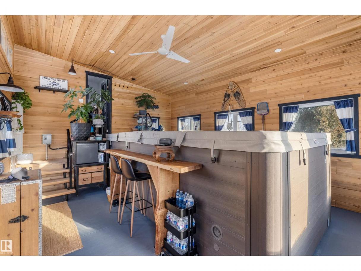 Experience refined living in this masterpiece bungalow, located on 1.18 acres of manicured beauty. An expanded foyer welcomes you into the main living area; a true statement of design, adorned with 2 areas to entertain, and enhanced by exquisite taste in finishes that exude timeless luxury. The custom kitchen is culinary perfection, featuring corian counters, 2-tone cabinetry, ss appliances, and adjoins the dining area with direct deck access to scenic vistas of your vinyl-fenced sanctuary that is set up for self-sustaining lifestyles. Three bedrooms, serviced by main floor laundry & 4pc main bathroom, have much to offer; the lavish primary suite is complete with spa-inspired 4pc ensuite, as another provides entry to the relaxation of the sunroom's 14x8 heated swim-spa. The basement not only offers 2 more bedrooms & 4pc bath, but presents desirable features such as a speakeasy, bar, gym area, rec room & cold room storage. Double garage, loads of RV parking, sheds, & garden areas all back onto treed space (id:6769)