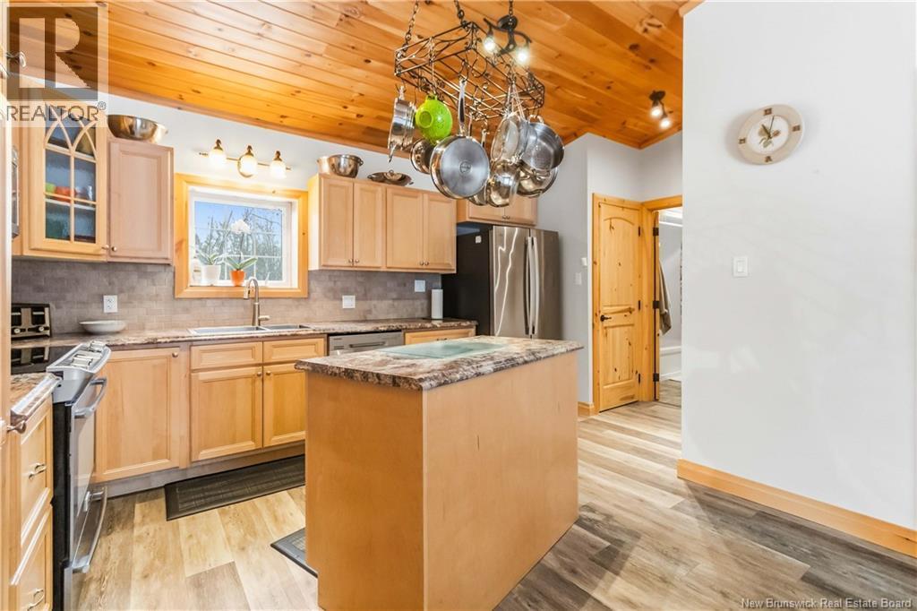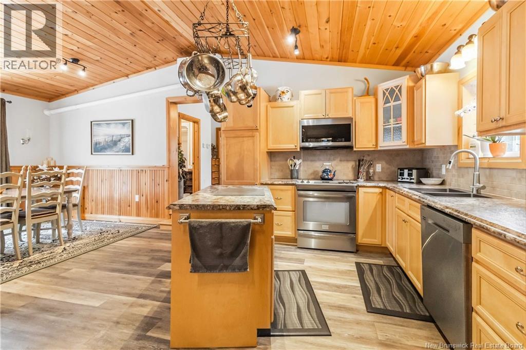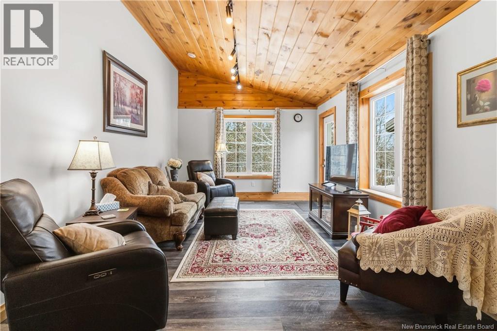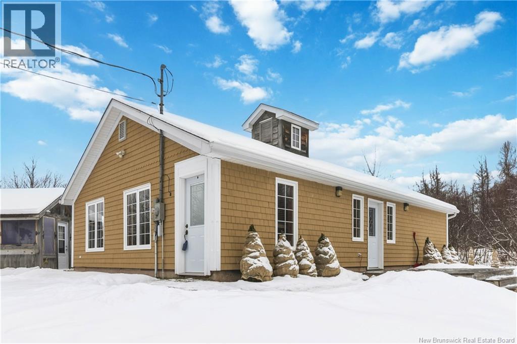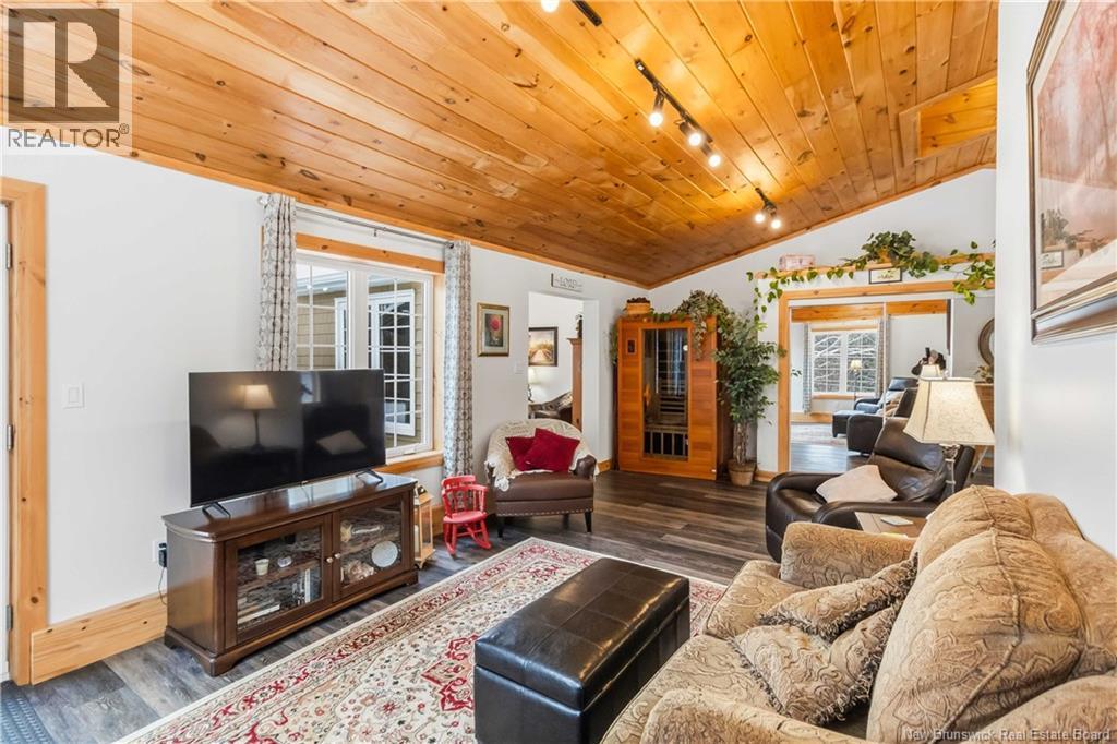 Quiet country living just minutes from Dieppe. Tucked away on a private 1.67-acre lot surrounded by mature trees, this inviting home offers space, privacy, and a peaceful settingwithout giving up easy access to the city. Inside, the layout is warm and welcoming with 3 bedrooms, 2 full bathrooms, and two comfortable living areas that make everyday living easy. Just off the entry, a cozy office with its own private access is perfect for working from home, a hobby space, or could easily be used as a fourth bedroom. Cathedral ceilings add an open, airy feel as you move into the main living area, where the kitchen flows naturally into the second living roomgreat for family time or entertaining friends. The home has seen many updates over the years, including in-floor heating in two areas, three mini-split heat pumps (2019), improved R60/R40 insulation, new windows, a fireplace added in 2017, and pressure-treated decks. Parts of the roof were redone about 8 years ago, and a new deck was recently added. Outside, relax in the screened-in gazebo and enjoy the quiet surroundings. A great mix of comfort, privacy, and conveniencethis is a place youll love coming home to. (id:6769)