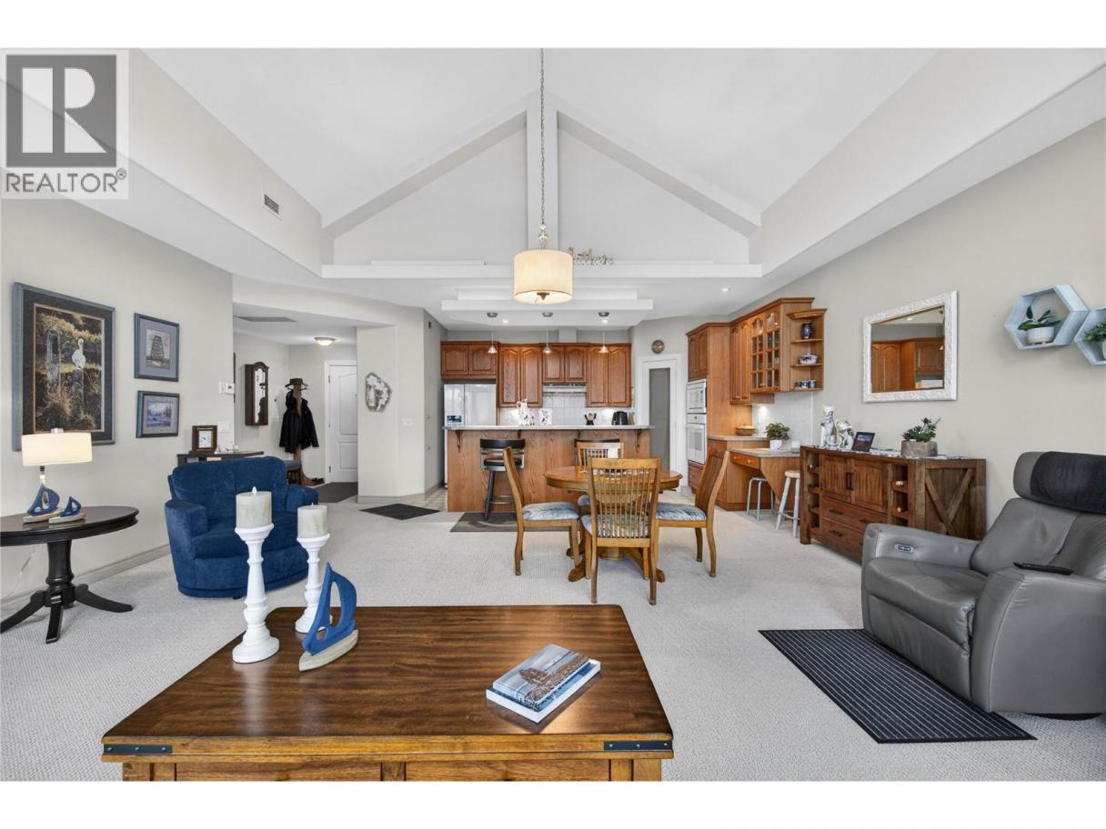 Welcome to McGuire Place (55+) — a rare top-floor penthouse with stunning panoramic views of Shuswap Lake. This spacious 2 bedroom, 2 bathroom home offers an open-concept layout with soaring vaulted ceilings, massive picture windows, a gas fireplace, and in-floor radiant heat throughout. The gourmet oak kitchen features a breakfast bar and ample cabinetry. The large primary bedroom includes a full ensuite and walk-in closet, complemented by a second bedroom, additional bathroom, in-suite laundry, and generous storage. Enjoy the expansive covered deck with gas hookup—perfect for relaxing or entertaining while taking in the lake views. This quiet, secure building offers an elevator, underground heated parking with two secured stalls, and is well maintained. Ideally located across from McGuire Lake, within walking distance to downtown, close to all amenities including medical offices, and just two blocks from the hospital. Strata fees of $736.44/month include management, insurance, landscaping, maintenance, contingency reserve, hot water, sewer, water, and garbage removal. Pet restrictions allow two cats or one dog and one cat (dog not to exceed 20” at the shoulder). Don’t miss this exceptional opportunity! (id:6769)