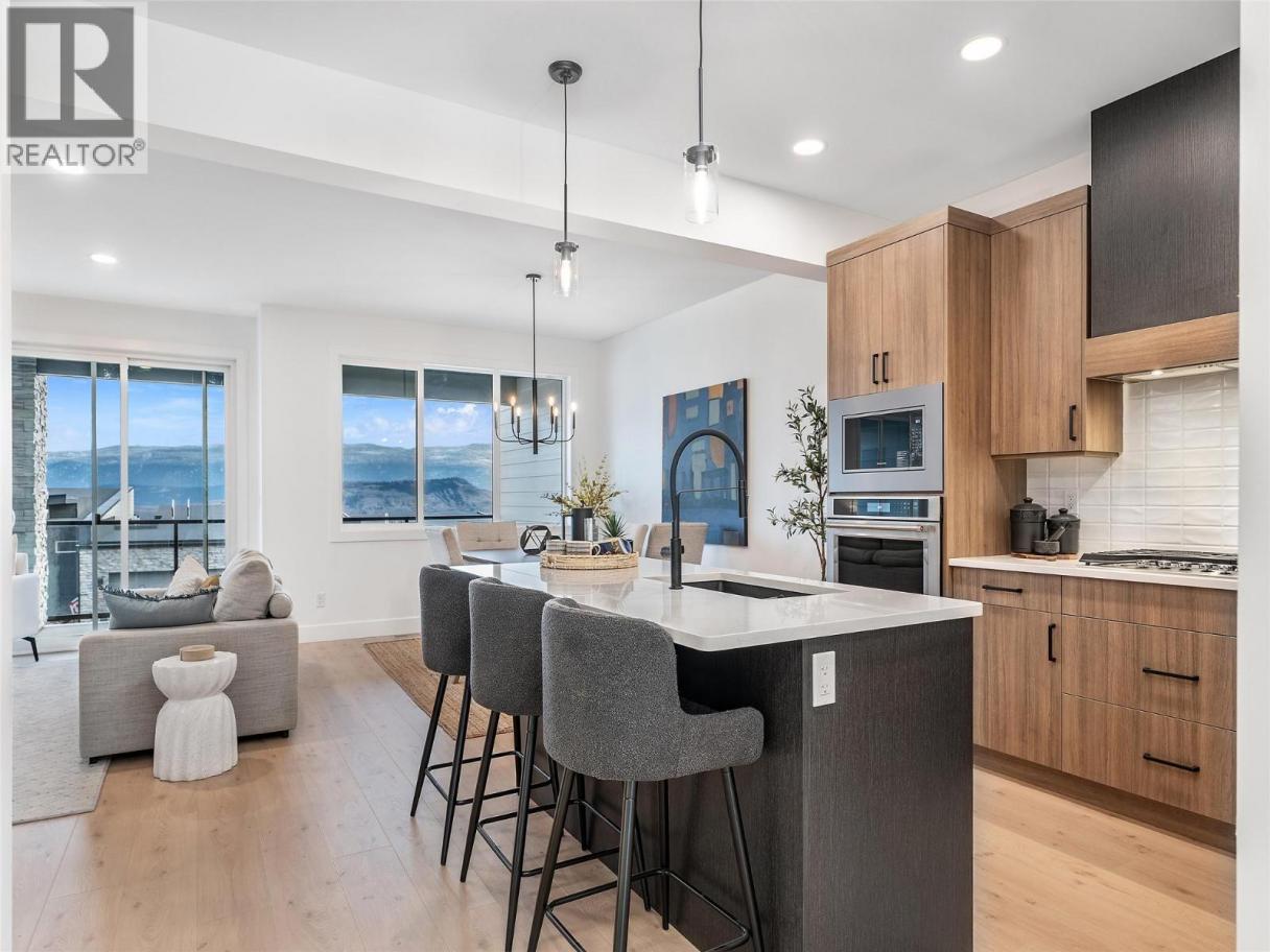 PRICED BELOW ASSESSED VALUE! This luxurious modern contemporary townhome offers an exceptional living experience in a vibrant lake-view community located just below The Rise Resort. Spanning three thoughtfully designed levels, this home features 1,767 sq ft with 3 bedrooms and 3 bathrooms. Enjoy seamless indoor-outdoor living with double decks and a walkout patio, perfectly positioned to take in the surrounding views. The oversized 19' x 40' garage provides ample space for vehicles, storage, or recreational equipment. Interior finishes include Rev Par wood flooring, a premium stainless steel KitchenAid appliance package with gas cooktop and wall oven, and a spa-inspired ensuite complete with an elegant tiled shower with 10 mm glass and a soaker tub. The main floor offers 9-foot ceilings and expansive windows that fill the space with natural light. Aldebaran Homes designed this home for comfort and peace of mind. It features 6"" concrete party walls between units for enhanced soundproofing, a high-efficiency furnace with air conditioning, Low-E energy-efficient windows, and full BC New Home Warranty coverage. No Property Transfer Tax applies when purchased as a primary residence. GST applicable. Don’t miss the opportunity to own a stunning new home in one of Vernon’s most desirable new communities. (id:6769)