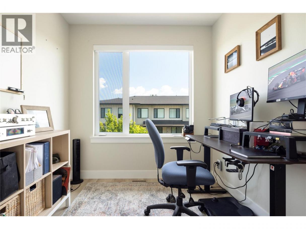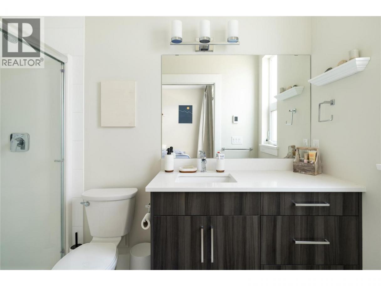 Welcome to this delightful 3-bedroom, 2.5-bathroom townhome. The main floor offers a spacious open-concept kitchen with a gas stove, over-the-range microwave, and an expansive island perfect for casual dining or entertaining in the separate dining area. The living room is enhanced by a gas fireplace, adding comfort and style to modern living. Revel in the luxury of 10' ceilings throughout, complemented by heated bathroom floors for added comfort on chilly mornings. The primary bedroom provides a relaxing retreat featuring a private ensuite and a spacious walk-in closet. Outdoor living is a highlight, starting with a front balcony and a private back patio equipped with a gas line for BBQs and a fenced yard. The unit is filled with morning light, while the west-facing backyard enjoys full sun from noon onward and beautiful sunsets over the mountains and McPollard Pond. For parking and storage, the large tandem garage offers plenty of room in this family-friendly neighborhood. Ideally situated between Wood and Okanagan Lake, you are just a short walk to McPollard Pond, the general store, and local services like a hair salon and chiropractor. A quick trip down the hill brings you to gyms, medical clinics, and Starbucks. This location is perfect for outdoor enthusiasts, sitting directly underneath Spion Kop with endless hiking and biking trails, and only a short drive to world-class beaches, breweries, and cideries. (id:6769)
