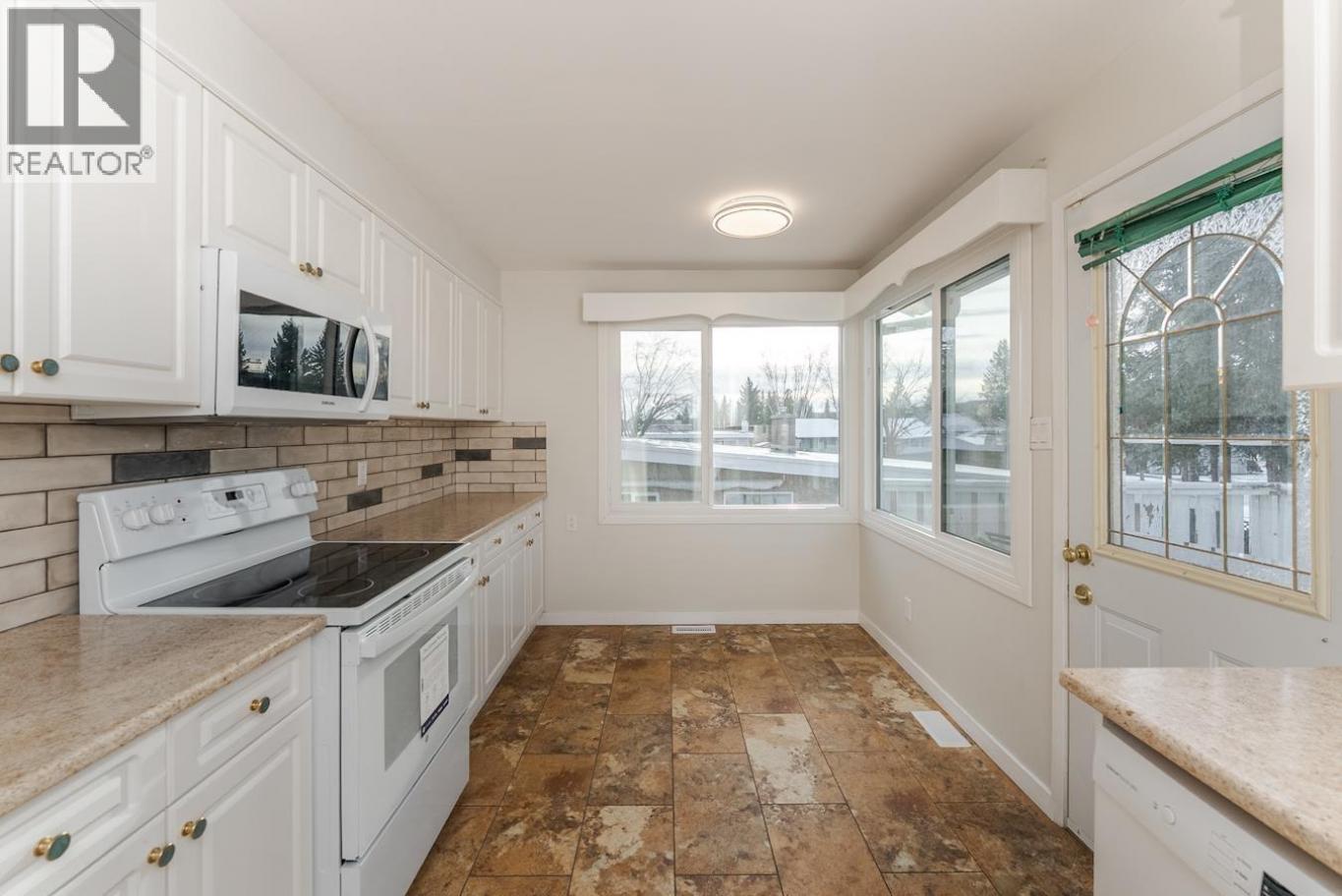 Welcome to this classic two-storey home offering 5 spacious bedrooms and 2 full bathrooms. Fresh paint, new flooring, and new windows enhance the home throughout, creating a bright and refreshed feel. The living room features a cozy wood stove, providing a warm during the cooler months. Convenient ground-floor laundry and new appliances for ease and efficiency. Outside, enjoy the convenience of a circle drive, a single garage, and RV parking. A large deck overlooks Seymour Park, offering the perfect place to relax or entertain. Located within walking distance to the hospital and Pine Centre Mall, this property combines character, functionality, and an excellent location—ready for its next owners to make it their own. All measurements are approximate, buyer to verify if deemed important. (id:6769)