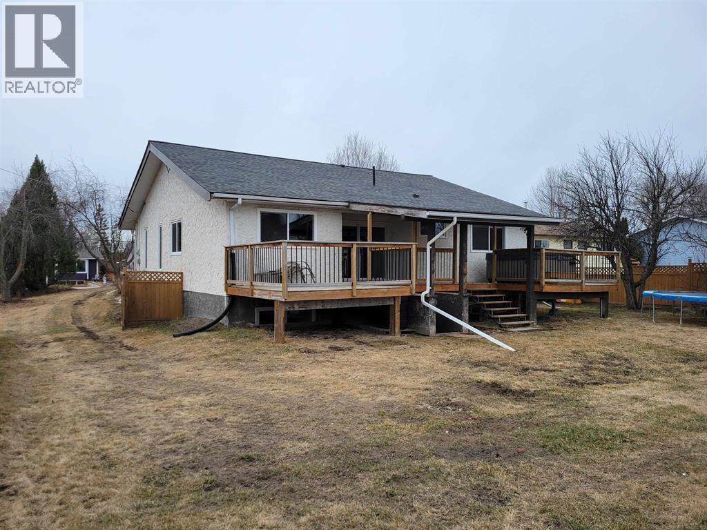 Spacious family home with 5 bedrooms, 3 bathrooms, and an office, located in a desirable neighbourhood, very close to the medical facilities. The primary bedroom boasts a lovely ensuite with a tiled walk-in shower and a walk-in closet with an all-in-one washer/dryer combo unit. The main floor bathroom has been renovated with a stylish tiled tub surround and tile flooring. This home features a great layout and offers main floor living with 3 bedrooms upstairs, plus a full basement with 3 more bedrooms, a large rec room, and an outside basement entry. Several key updates have been done over the years, including the roof, windows, and furnace. The covered back sun deck overlooks the large back yard. Basement bedrooms have cement floors, and office requires some finishing, could be a 6th bdr. (id:6769)