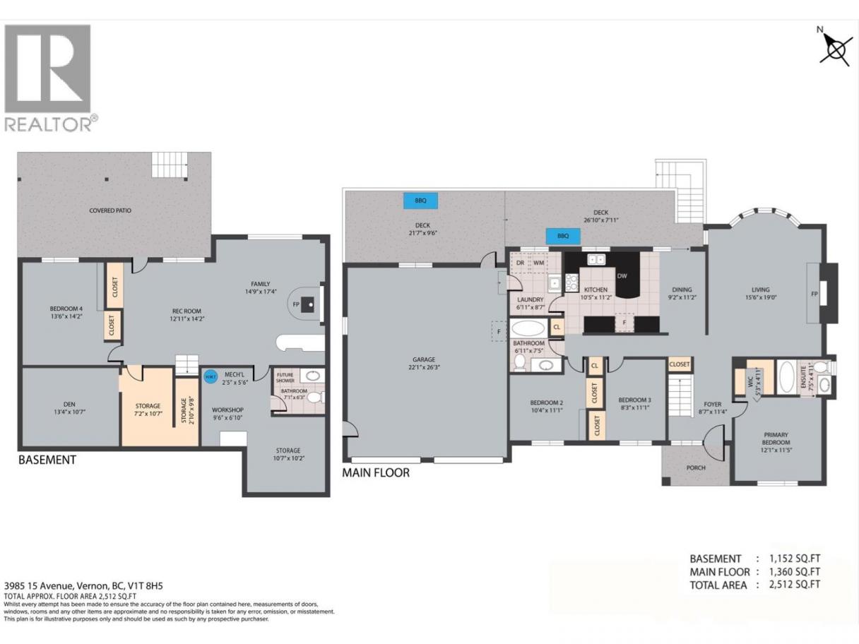 Excellent opportunity! This well-maintained rancher with walkout basement on a .35 acre lot, offers excellent space, functionality, and future potential. The main floor features a bright and spacious living area with large windows and a cozy fireplace, flowing into the dining and kitchen areas—ideal for everyday living and entertaining. Three bedrooms on the main level include a primary bedroom with ensuite and walk-in closet. The walkout basement adds versatile living space with a large family room & rec room, 1 additional bedroom, den, bathroom, and ample storage—perfect for guests, extended family, or potential suite options. A practical layout provides comfort and flexibility across both levels. Outside, enjoy a large backyard with plenty of room for gardening, play, and outdoor entertaining. The oversized double garage includes a workbench area, ideal for hobbies, projects, or extra storage, plus a wide driveway with room for additional vehicles, RV, or boat parking. Located in a great neighborhood, with a gate out of the backyard to access the Mission Hill park, school, walking trails which lead to Okanagan College and other outdoor recreation. This home offers solid value, great spaces, and an excellent opportunity to personalize to your taste. Come and view this incredible Vernon home today! (id:6769)