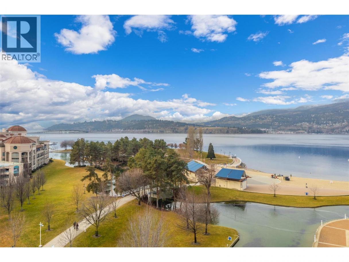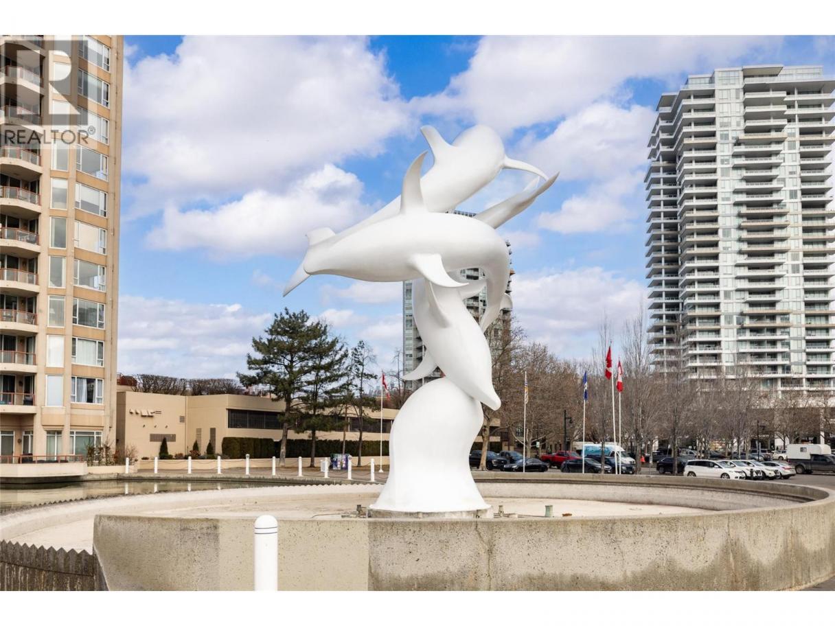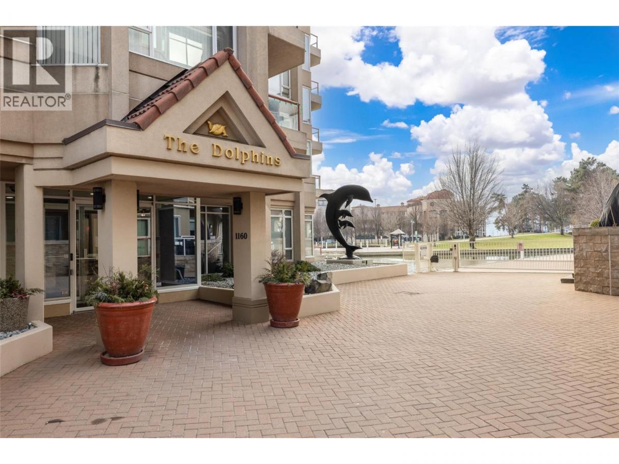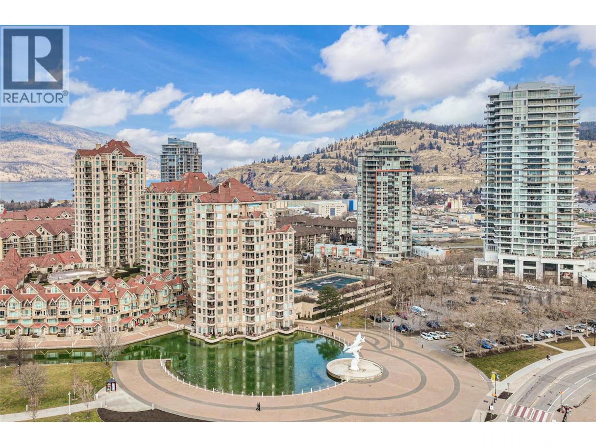 Iconic waterfront living in the heart of Kelowna’s Cultural District! Perfectly positioned on the waterfront, this beautiful two bedroom two bathroom lakeview condo offers a front-row seat to the very best of downtown Kelowna living. Inside, expansive walls of windows flood the home with natural light and frame views of Okanagan Lake, the bridge, the boardwalk, and the iconic Dolphins fountain below. The thoughtfully designed floor plan blends comfort and function, with a generous living area, ideal for both everyday living and entertaining. The kitchen features bar-style seating, under-cabinet lighting, ample cabinetry, and abundant counter space, seamlessly opening to the dining area where lake and city views elevate every meal. Step outside to not one, but two private patios, perfect for morning coffee, sunset dinners, or a glass of Okanagan wine as the city lights come alive. The primary bedroom is a true retreat, complete with a walk-in closet and a private ensuite, while the second bedroom and full bathroom provide flexibility for guests, a home office, or family. The Dolphins offers resort-style amenities including an outdoor pool, hot tub, tennis court, fitness centre, and immaculately maintained grounds. Right outside your doorstep you’ll find Kelowna’s Cultural District, with world-class dining, galleries, theatres, boutique shopping, and microbreweries just steps away. Walk to the beach, marina, yacht club, boardwalk, festivals, and waterfront parks, or simply enjoy the energy of downtown from your own balcony. Whether you’re seeking a full-time residence, a high-end urban retreat, or a premier waterfront investment, this is lakefront living at its most iconic, where culture, convenience, and the Okanagan lifestyle meet. (id:6769)