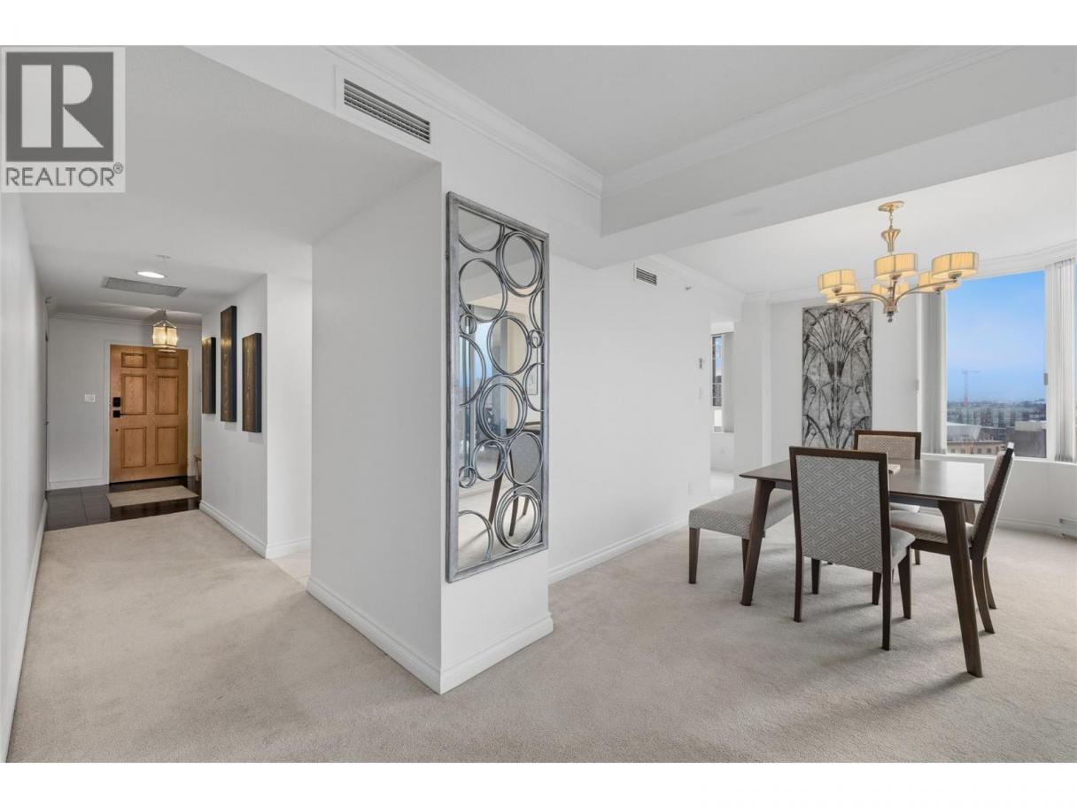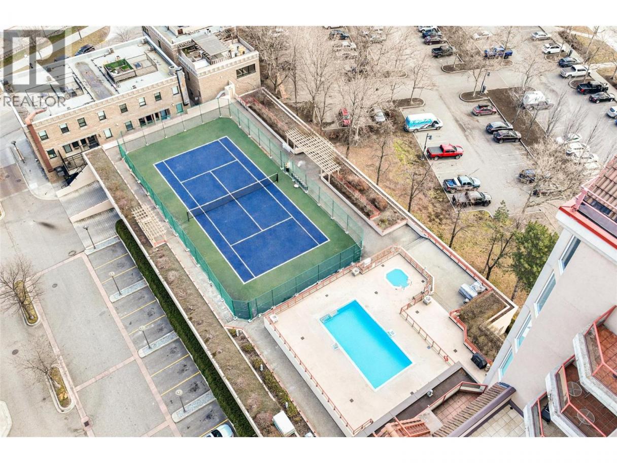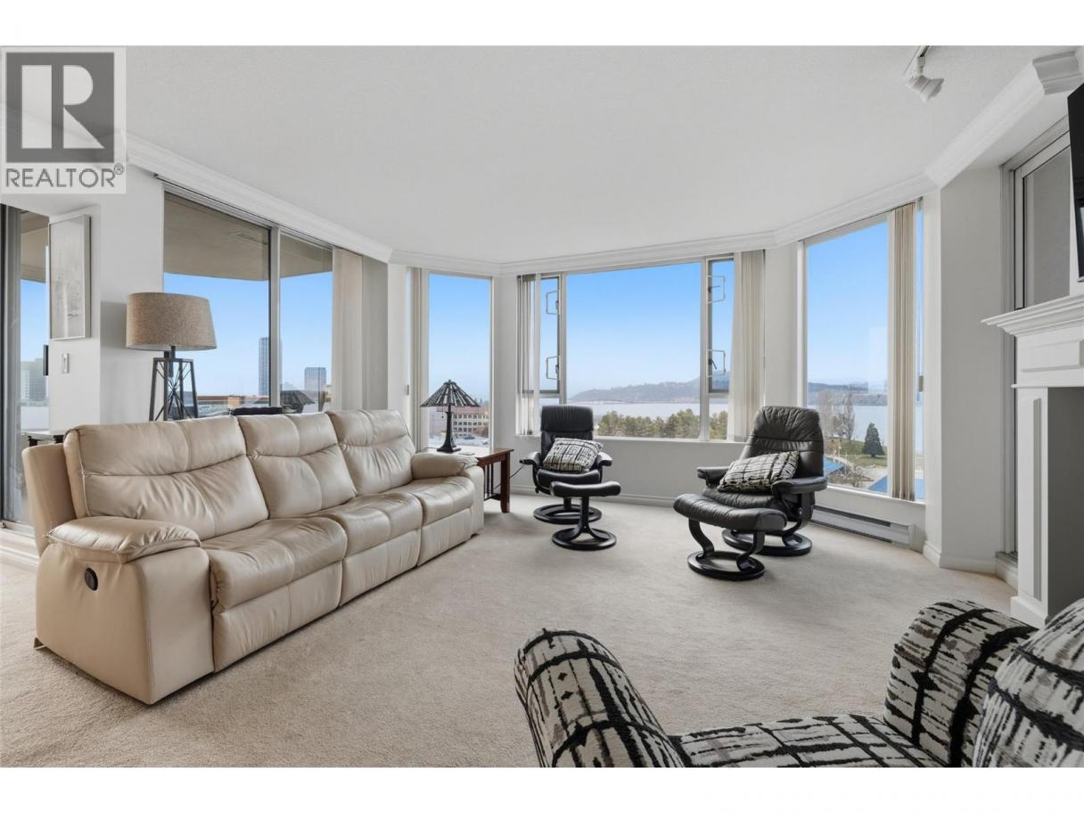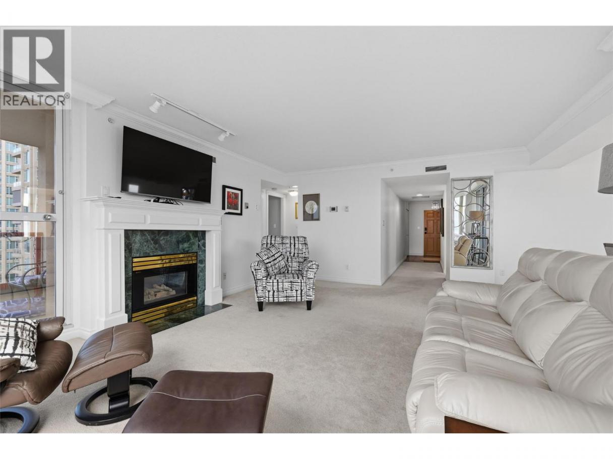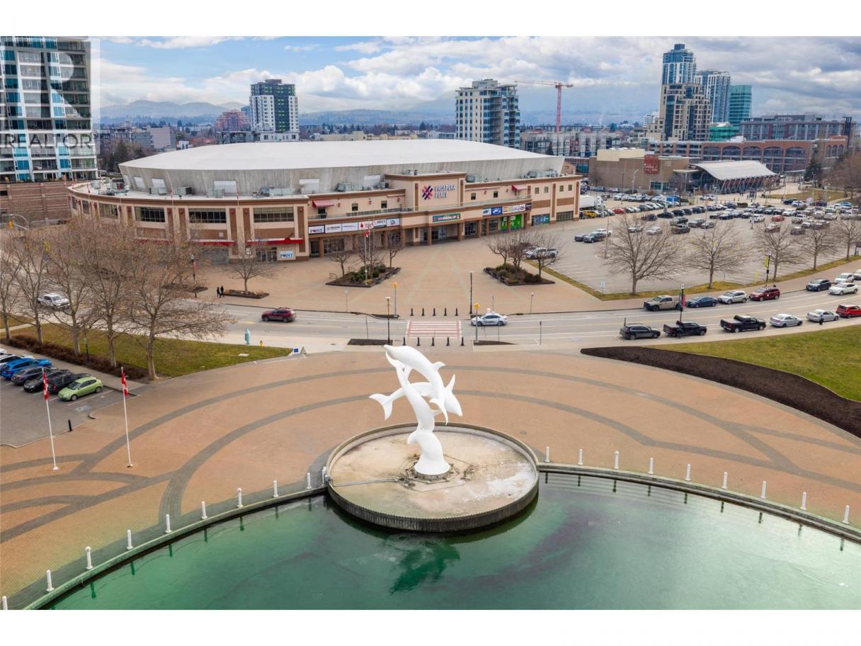 Iconic waterfront living in the heart of Kelowna’s Cultural District! Perfectly positioned on the waterfront, this beautiful two bedroom two bathroom lakeview condo offers a front-row seat to the very best of downtown Kelowna living. Inside, expansive walls of windows flood the home with natural light and frame views of Okanagan Lake, the bridge, the boardwalk, and the iconic Dolphins fountain below. The thoughtfully designed floor plan blends comfort and function, with a generous living area, ideal for both everyday living and entertaining. The kitchen features bar-style seating, under-cabinet lighting, ample cabinetry, and abundant counter space, seamlessly opening to the dining area where lake and city views elevate every meal. Step outside to not one, but two private patios, perfect for morning coffee, sunset dinners, or a glass of Okanagan wine as the city lights come alive. The primary bedroom is a true retreat, complete with a walk-in closet and a private ensuite, while the second bedroom and full bathroom provide flexibility for guests, a home office, or family. The Dolphins offers resort-style amenities including an outdoor pool, hot tub, tennis court, fitness centre, and immaculately maintained grounds. Right outside your doorstep you’ll find Kelowna’s Cultural District, with world-class dining, galleries, theatres, boutique shopping, and microbreweries just steps away. Walk to the beach, marina, yacht club, boardwalk, festivals, and waterfront parks, or simply enjoy the energy of downtown from your own balcony. Whether you’re seeking a full-time residence, a high-end urban retreat, or a premier waterfront investment, this is lakefront living at its most iconic, where culture, convenience, and the Okanagan lifestyle meet. (id:6769)