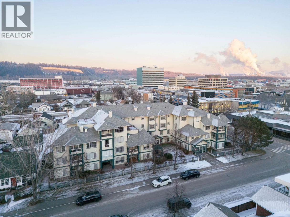 Welcome to Unit 402 in The Courtyard, ideally located in downtown Prince George within walking distance to shopping, the hospital, and all downtown amenities. This top-floor, corner unit offers a spacious and functional open-concept layout with two bedrooms and two full bathrooms, providing both comfort and flexibility. Large windows fill the home with natural light, while the gas fireplace creates a warm and inviting living space. Enjoy the added privacy of a corner location along with a private enclosed deck, perfect for year-round use. Additional features include in-suite laundry, underground parking, and the convenience of an elevator in the building. A well-designed home in a central location, offering easy living in the heart of the city. (id:6769)