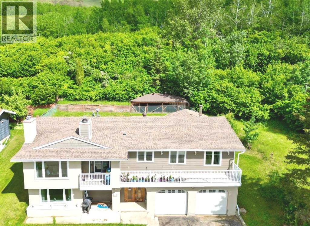 This property on the south end of Peace River offers a unique blend of serene location and distinctive features. Situated on a tranquil "No Exit" street, this hilltop home is enveloped by trees ensuring privacy with no rear neighbors and direct access to a lush wooded area. The home boasts three family rooms. The lower-level family room features a striking wood-burning fireplace and expansive windows that flood the space with natural light. The main living area is accentuated by a captivating two-sided wood fireplace, providing warmth and ambiance to both the living room and adjacent area. The kitchen is designed to be bright and cheerful, seamlessly flowing into another family room warmed by a ceramic wood stove - ideal for family gatherings and daily living. A dedicated cedar hot tub room offers a private retreat for relaxation. A newly installed top deck with updated railings spans the length of the house providing ample space for enjoying the surrounding views. The backyard includes a substantial wood shed capable of holding up to 10 cords of firewood supporting the home's multiple fireplaces and wood stove. Significant updates completed within the last ten years encompass new shingles, furnace, and the replacement of most windows. The exterior showcases new stucco, enhancing the home's aesthetic appeal. The property features hot water baseboard heating on the lower level and in the attached double garage, ensuring consistent warmth during colder months. With four bedrooms and three bathrooms spread across 3394 square feet, this home combines spacious living with the tranquility of its natural surroundings. A touch of personal updates could further enhance its charm, making it a remarkable place to call home. (id:6769)