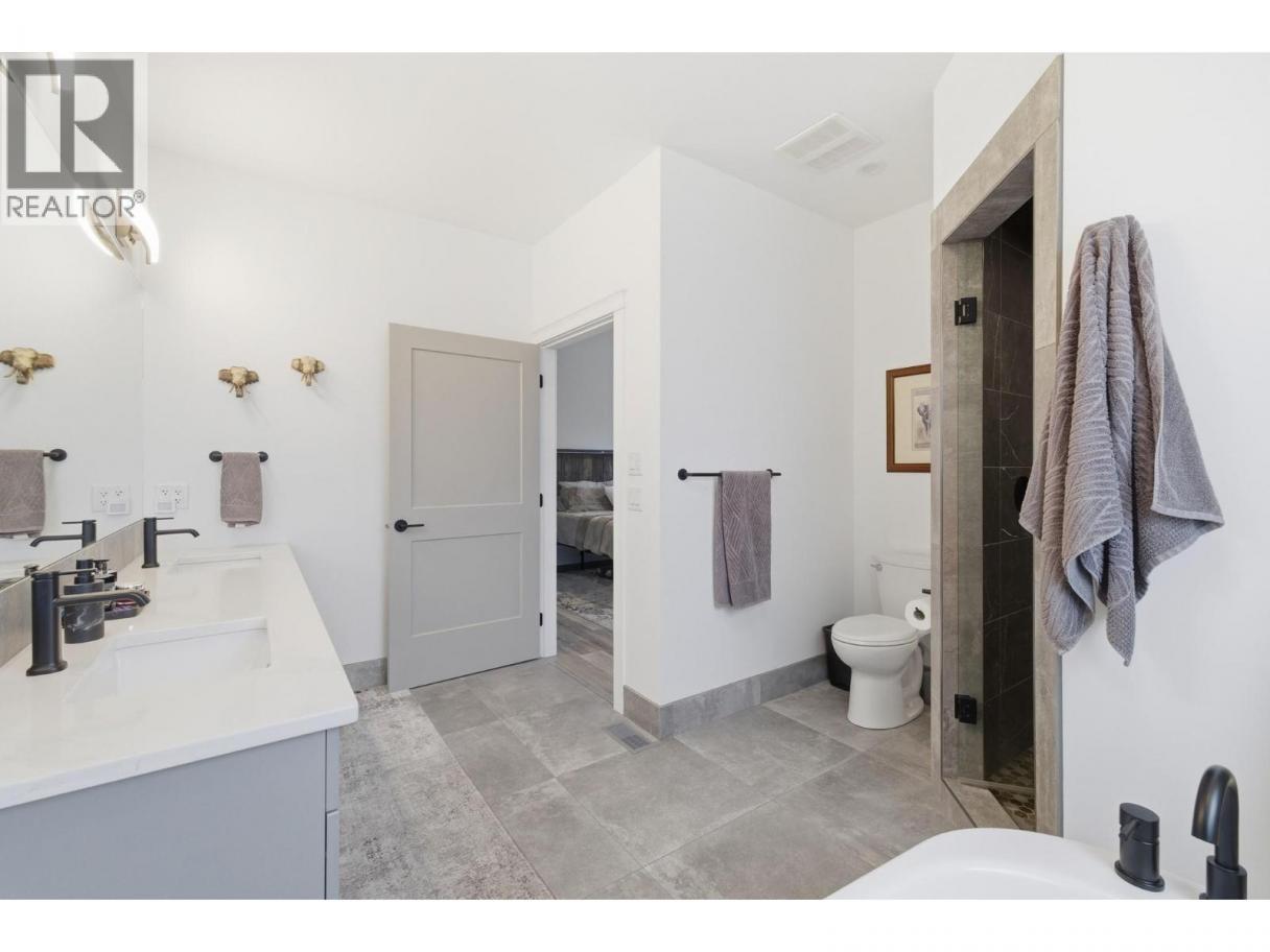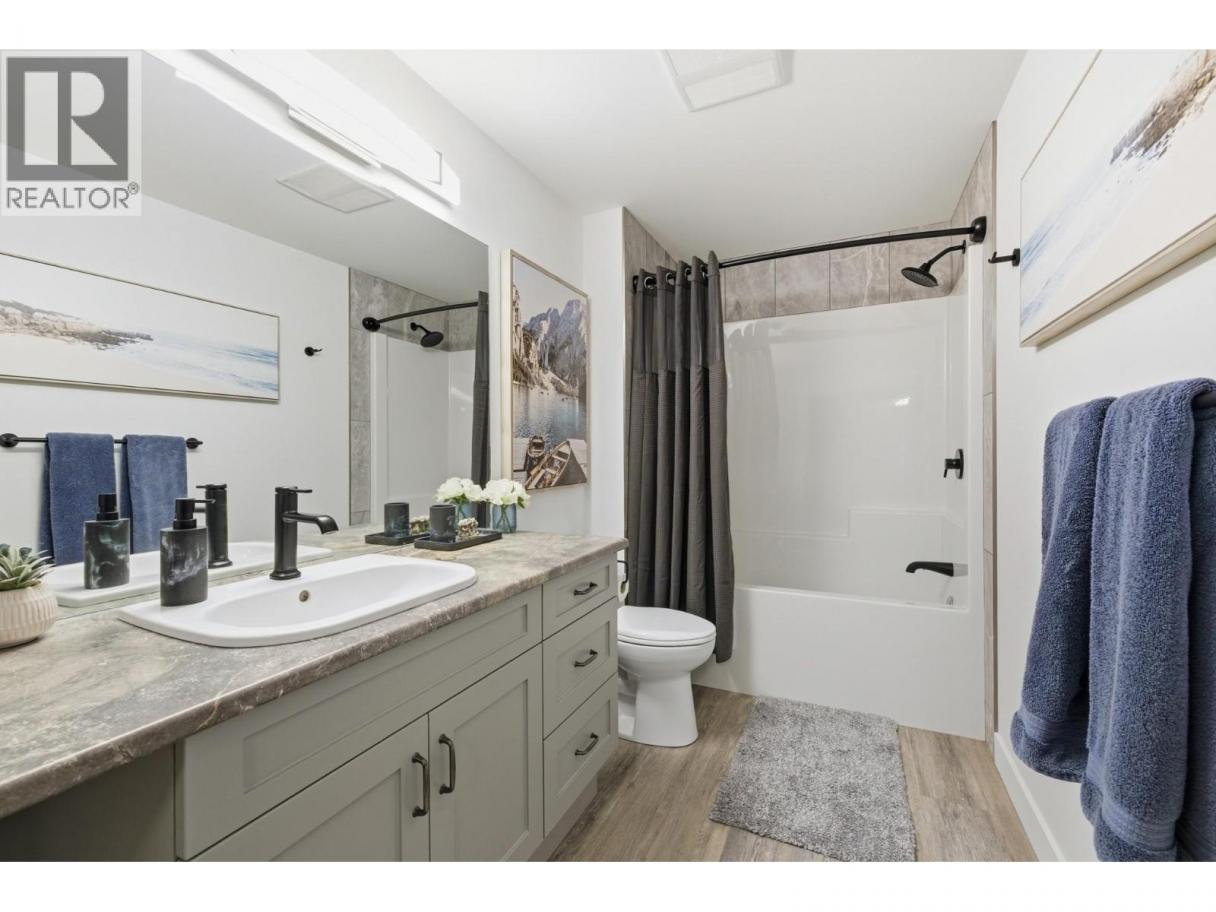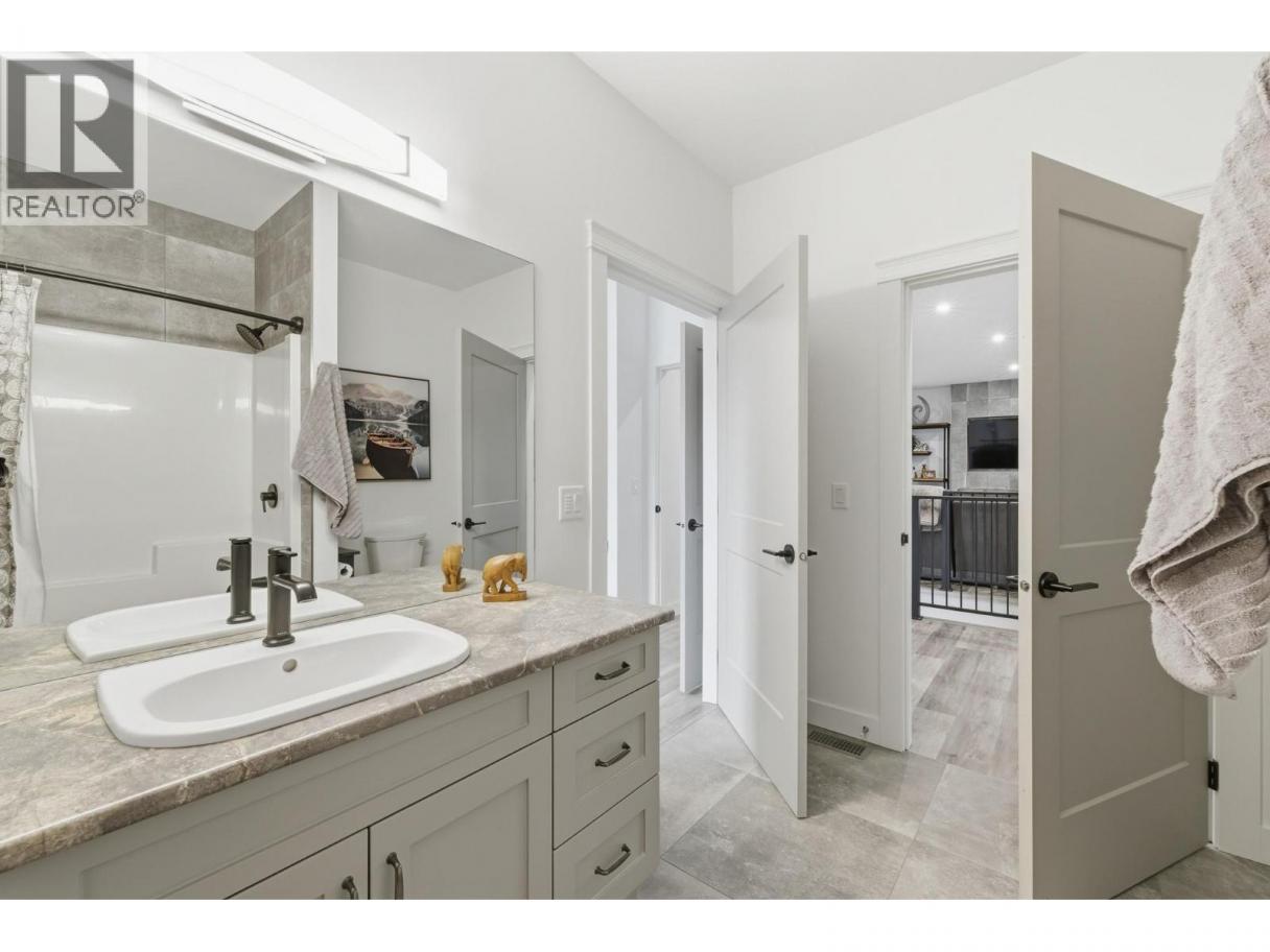Luxury living in sought after Lakeview Heights - this stunning home truly has it all. Designed to impress, oversized windows showcase beautiful mountain views, while luxury vinyl plank flooring, sleek modern fixtures, and abundant storage create a refined yet functional living space. The chef-inspired kitchen features an oversized island, quartz countertops, stainless steel appliances, and ample cabinetry, seamlessly flowing into the open-concept dining and living areas highlighted by a tile-surround fireplace. The primary suite is a private retreat, complete with a custom walk-in closet and a spa-like ensuite offering dual sinks, a free-standing soaker tub, and a tiled walk-in shower. The main level also includes a second bedroom with cheater ensuite access to the 4-piece bath and a spacious laundry room with sink and folding area. Downstairs, enjoy a large rec room, 3-piece bathroom plus a versatile basement suite that can function as part of the home or as a separate 1 or 2 bedroom rental with enhanced soundproofing, full kitchen, 4-piece bath, and open-concept living area. Completing the package is an impressive 1,100 sq. ft. oversized triple garage, prewired for a 220V EV charger and heater, with space for a workshop. Ideally located within walking distance to local wineries, shopping, and sports amenities. (id:6769)