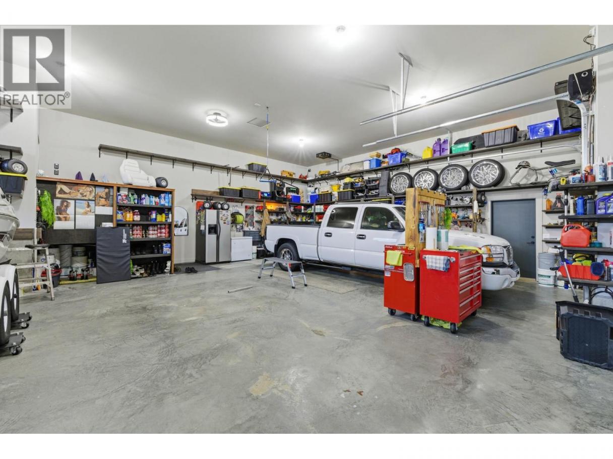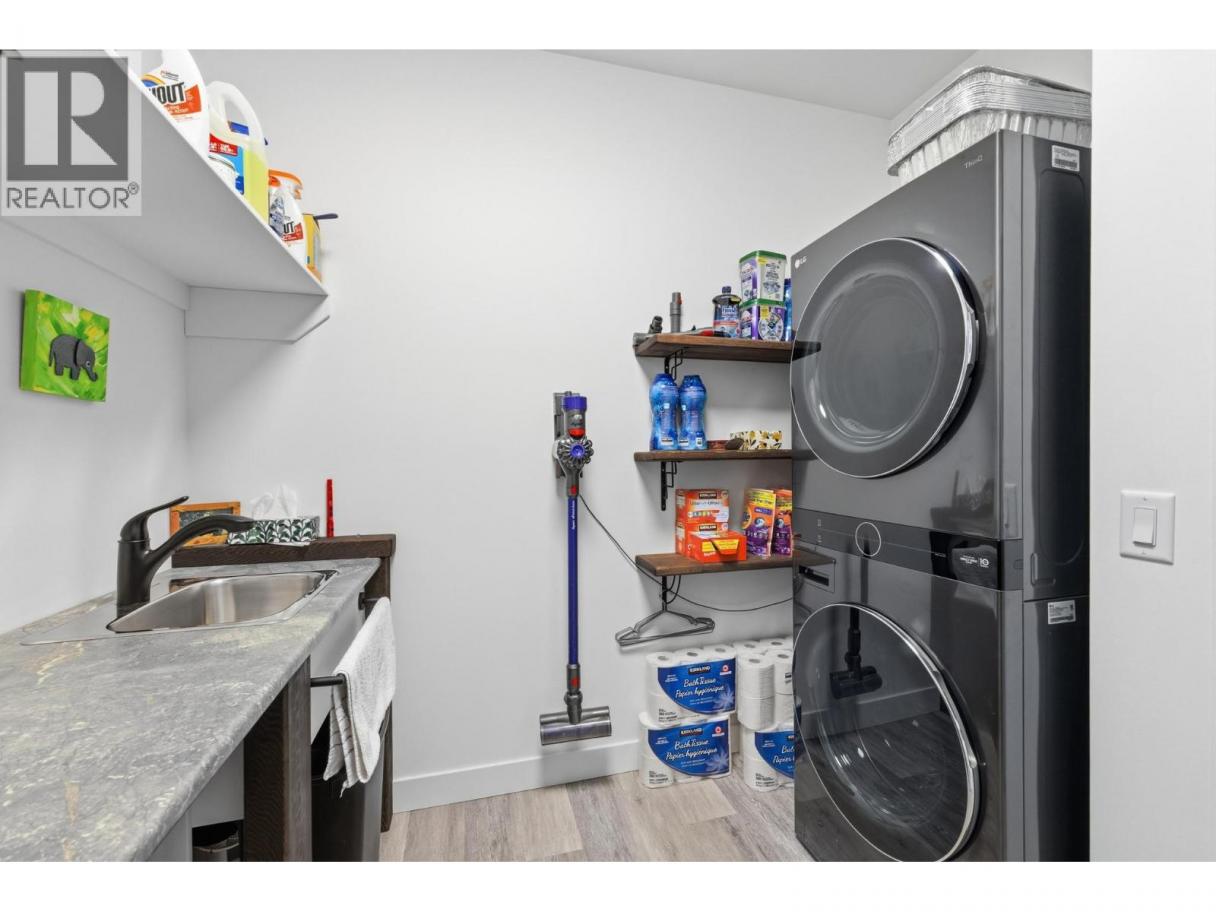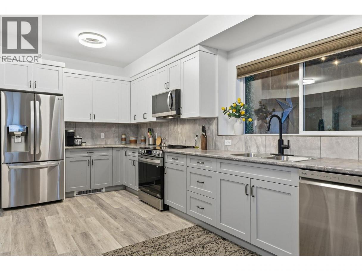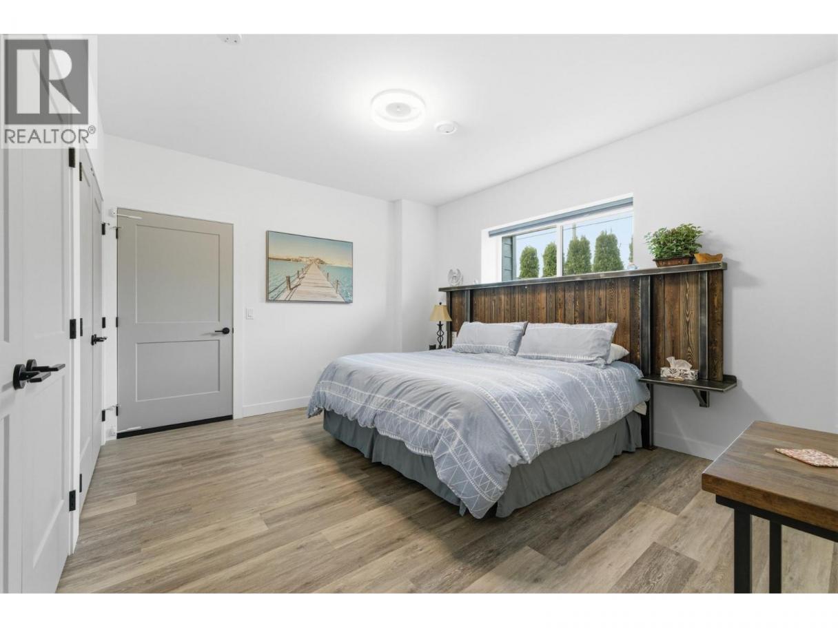 Luxury living in sought after Lakeview Heights - this stunning home truly has it all. Designed to impress, oversized windows showcase beautiful mountain views, while luxury vinyl plank flooring, sleek modern fixtures, and abundant storage create a refined yet functional living space. The chef-inspired kitchen features an oversized island, quartz countertops, stainless steel appliances, and ample cabinetry, seamlessly flowing into the open-concept dining and living areas highlighted by a tile-surround fireplace. The primary suite is a private retreat, complete with a custom walk-in closet and a spa-like ensuite offering dual sinks, a free-standing soaker tub, and a tiled walk-in shower. The main level also includes a second bedroom with cheater ensuite access to the 4-piece bath and a spacious laundry room with sink and folding area. Downstairs, enjoy a large rec room, 3-piece bathroom plus a versatile basement suite that can function as part of the home or as a separate 1 or 2 bedroom rental with enhanced soundproofing, full kitchen, 4-piece bath, and open-concept living area. Completing the package is an impressive 1,100 sq. ft. oversized triple garage, prewired for a 220V EV charger and heater, with space for a workshop. Ideally located within walking distance to local wineries, shopping, and sports amenities. (id:6769)