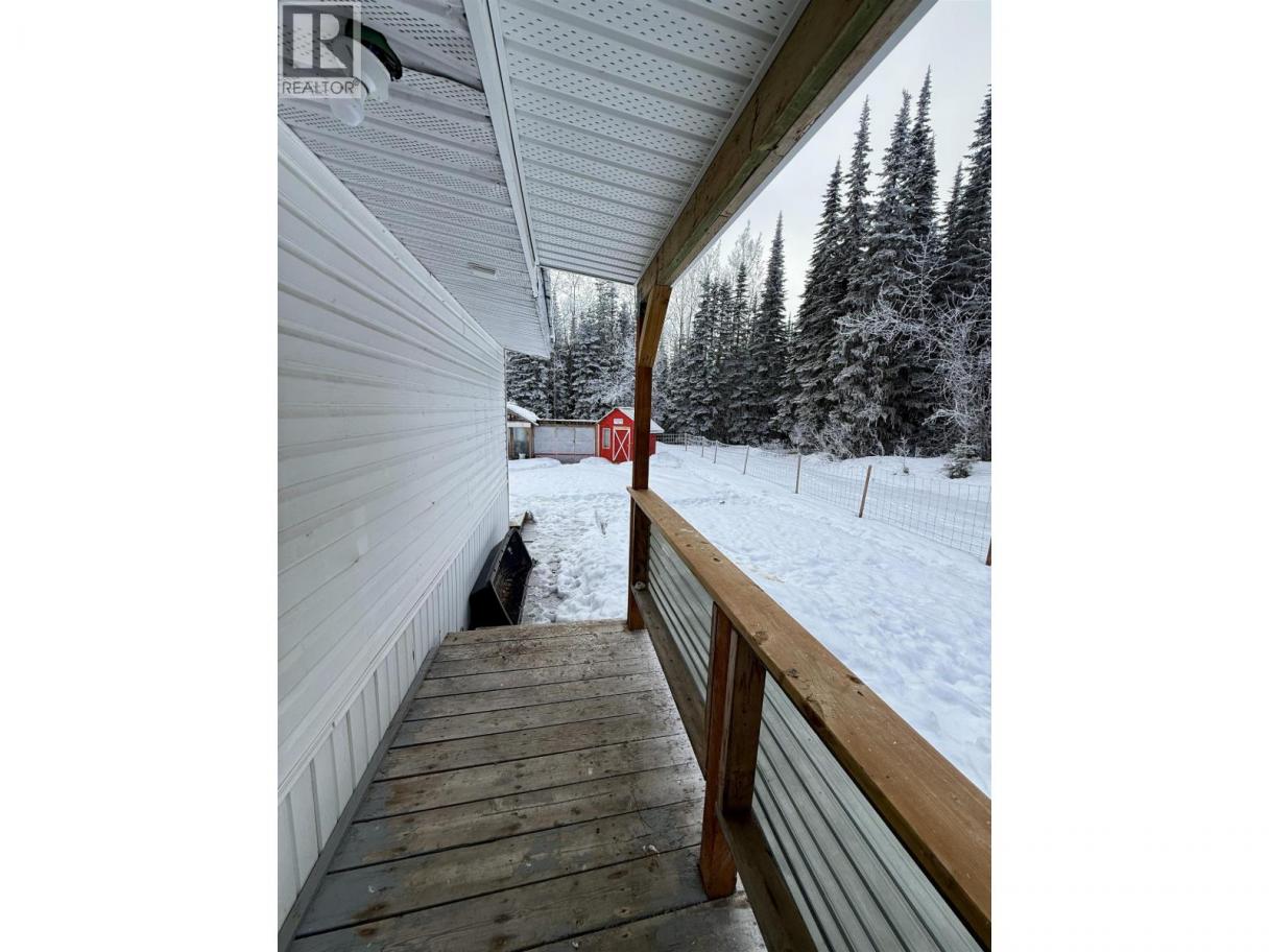 If you’re searching for an affordable rural property with a shop just minutes from Prince George, this is a must-see. This well-kept 3 bedroom, 1 bathroom mobile sits on a private 5.02-acre parcel and offers excellent value. Features include a 526 sq ft solarium, covered deck, spacious primary bedroom, and a park-like yard with mature trees. The 2017-built shop is ideal for storage, hobbies, or workspace. The property line is fully cleared for a great walking/quadding trail. Includes a fenced area for dogs, plus a chicken coop and beehive for those wanting a country lifestyle. Enjoy rural privacy while being only minutes to town. A rare opportunity to own acreage and a shop at an affordable price. Lot size from tax assessment. Measurements approximate; buyer to verify if important. (id:6769)