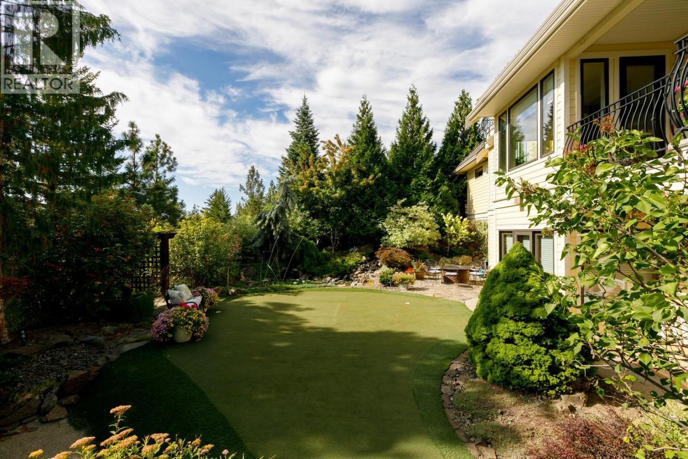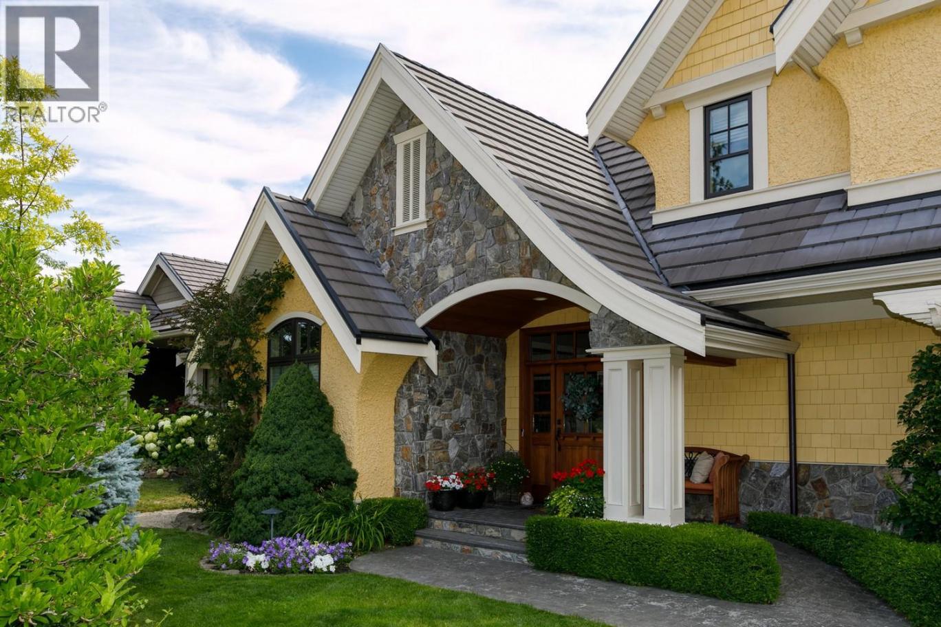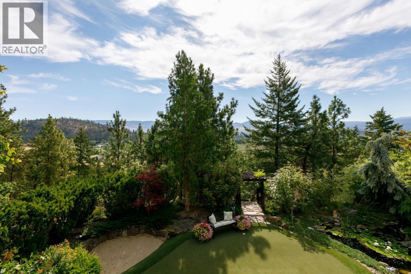 Beautiful home built by Fawdry Homes in the sought-after community of Wilden. This home impresses with a timeless French Country design, soaring ceilings, and impeccable craftsmanship on a private 0.38-acre hillside lot with sweeping valley and mountain views. Designed for both luxury and accessibility, this home features a barrier free entry, wider hallways and staircase and an accessible bathroom on the main floor. The bright great room and crisp white kitchen flow seamlessly into formal dining and living areas, making it perfect for hosting family and friends, or spending time with the family. The expansive primary suite occupies nearly half the upper level, complete with a spa-inspired ensuite. The lower level features a family/games room with a built-in wall bed, sauna, and full bath—ideal for guests. Flexible floor plan provides the opportunity to potentially create an add'l 2 beds. Outside, enjoy a pitch-and-putt golf green, sand trap, lush gardens, and water features. Additional highlights include slop-dash stucco, geothermal heating and cooling, heat recovery ventilation, water filtration, and cherry wide-plank hardwood floors. A detailed list of extras is available by request. Located just minutes from UBCO, the airport, and Kelowna’s best amenities. (id:6769)