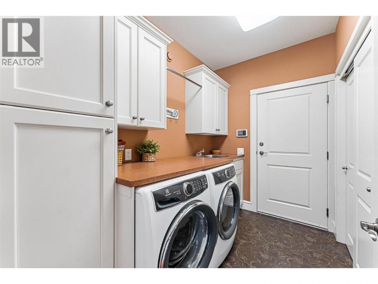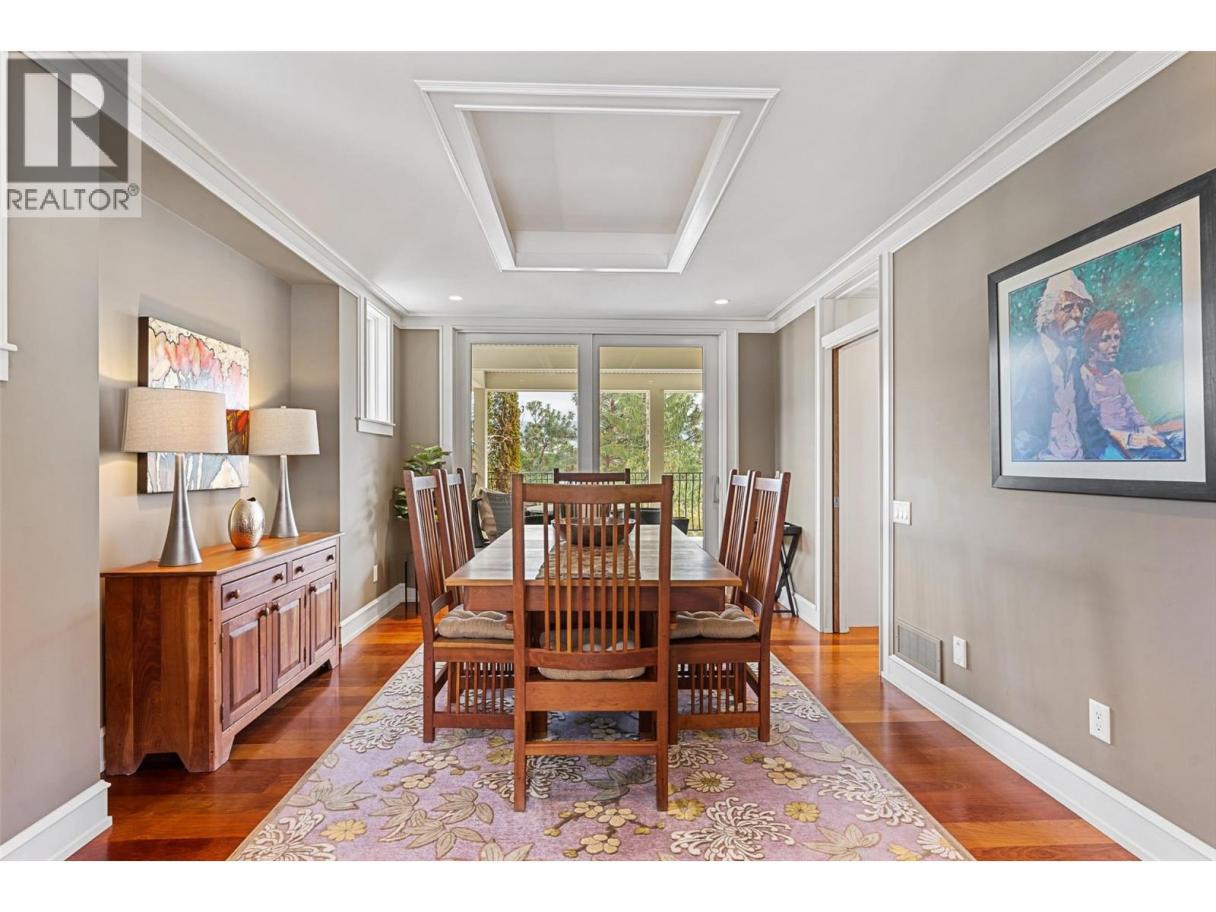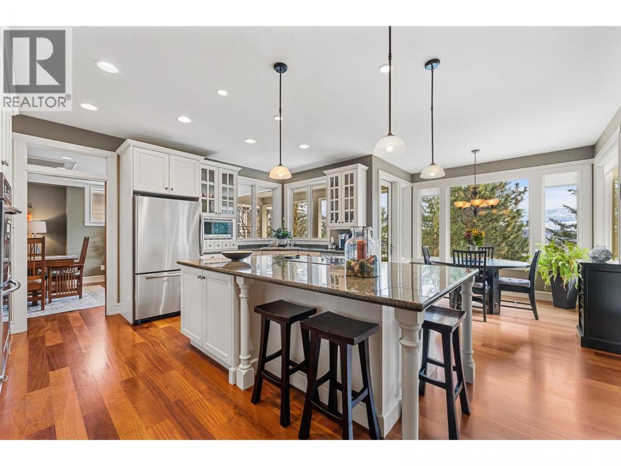 Beautiful home built by Fawdry Homes in the sought-after community of Wilden. This home impresses with a timeless French Country design, soaring ceilings, and impeccable craftsmanship on a private 0.38-acre hillside lot with sweeping valley and mountain views. Designed for both luxury and accessibility, this home features a barrier free entry, wider hallways and staircase and an accessible bathroom on the main floor. The bright great room and crisp white kitchen flow seamlessly into formal dining and living areas, making it perfect for hosting family and friends, or spending time with the family. The expansive primary suite occupies nearly half the upper level, complete with a spa-inspired ensuite. The lower level features a family/games room with a built-in wall bed, sauna, and full bath—ideal for guests. Flexible floor plan provides the opportunity to potentially create an add'l 2 beds. Outside, enjoy a pitch-and-putt golf green, sand trap, lush gardens, and water features. Additional highlights include slop-dash stucco, geothermal heating and cooling, heat recovery ventilation, water filtration, and cherry wide-plank hardwood floors. A detailed list of extras is available by request. Located just minutes from UBCO, the airport, and Kelowna’s best amenities. (id:6769)