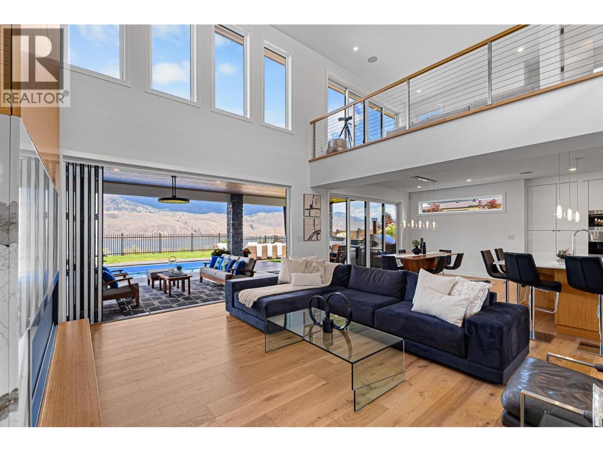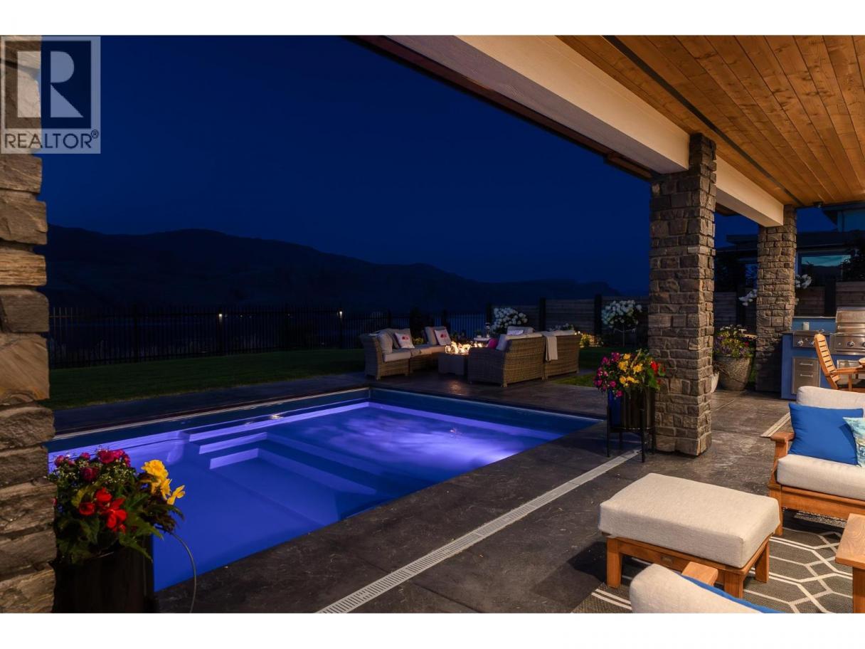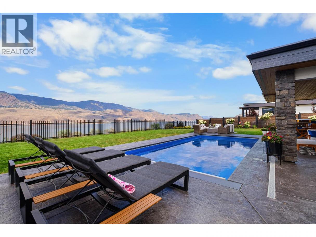 Welcome to 338 Rue Cheval Noir — a masterpiece of custom design perched above Kamloops Lake in the prestigious resort community of Tobiano. From the elegant curb appeal to the front entry and through to the panoramic lake views, this residence offers an unparalleled lifestyle. Set within a world-renowned golf destination, Tobiano also features a full-service marina, lakeside adventures, and access to endless backcountry trails. Inside, the great room captivates with 18’ ceilings, a Cambria stone fireplace, and a 13’ Nano door opening to a covered patio and outdoor kitchen. The chef’s kitchen is appointed with Wolf/Sub-Zero appliances, Vicostone quartz, custom millwork, and a grand island. The main floor also includes a spacious primary suite with a spa-inspired ensuite and expansive walk-in, and the second bedroom. Pantry, mudroom, and laundry areas offer premium built-in storage and appliances. Upstairs, each bedroom includes a private ensuite, custom closet, and loft area to soak in the views. The triple garage is heated, cooled, and EV-ready. Outside, enjoy a saltwater pool, Bullfrog spa, pizza oven, fire table, and heaters—set among professionally designed landscaping with stone walls, stamped concrete, irrigation, and app-controlled lighting. The home also includes a 4-foot insulated crawl space that is fully drywalled, heat and cooled, and well-lit. Contact for full features list. All meas are approx, buyer to confirm if important. Book your private viewing today! (id:6769)