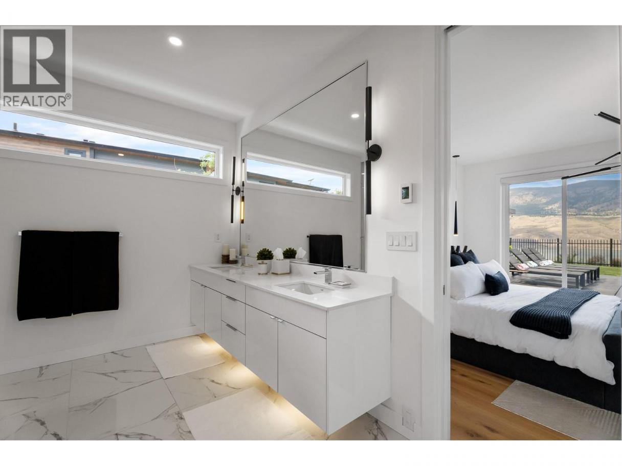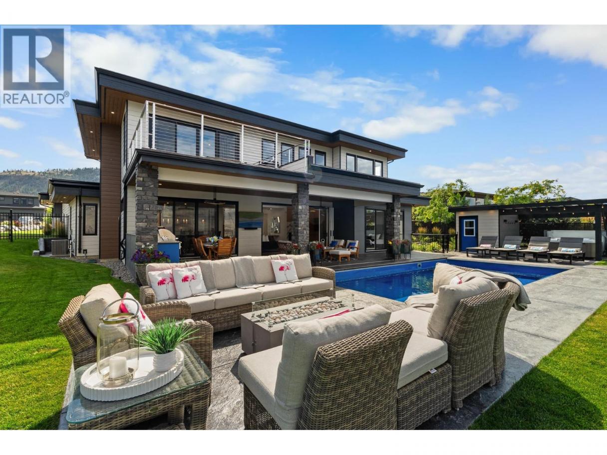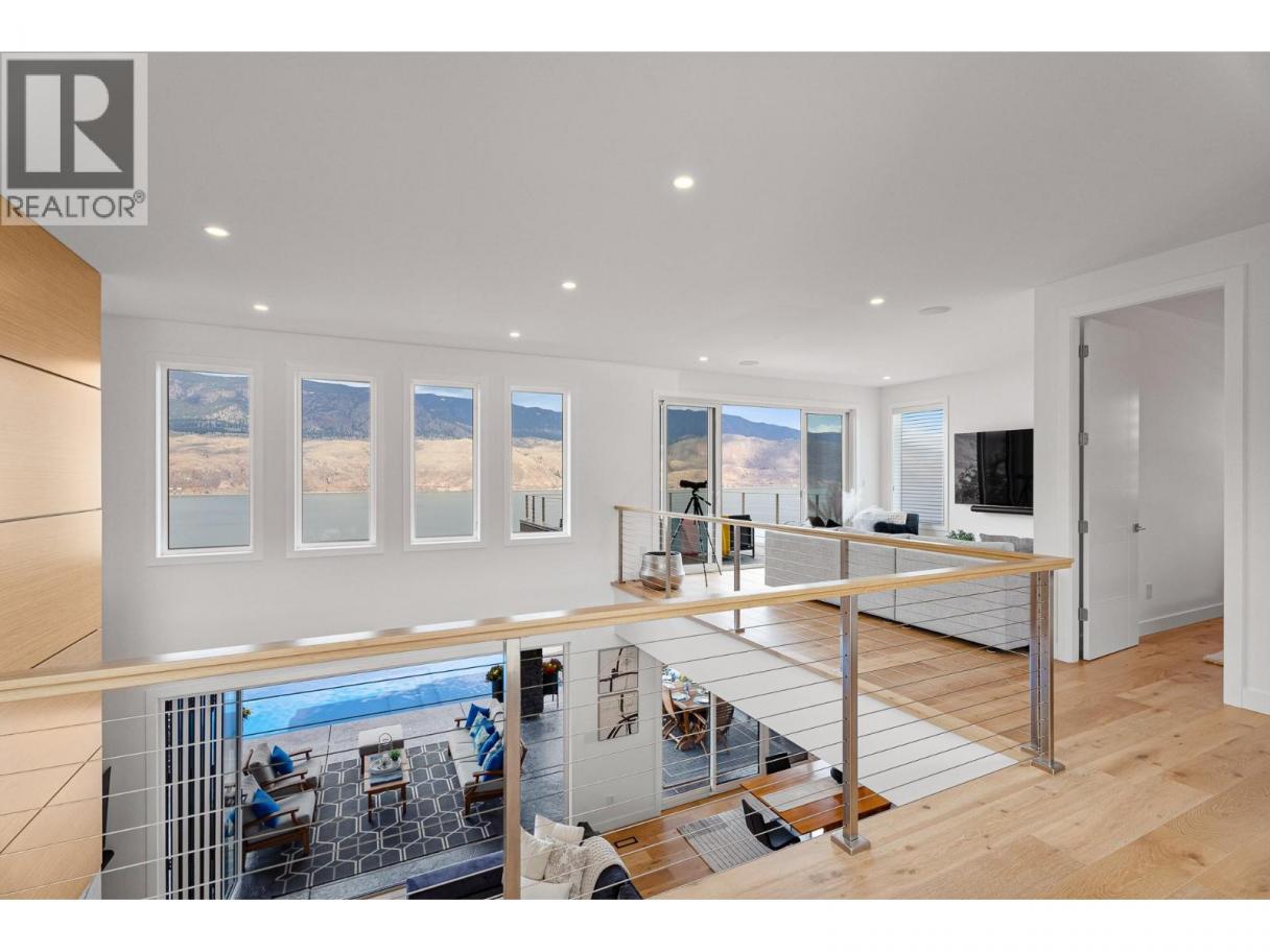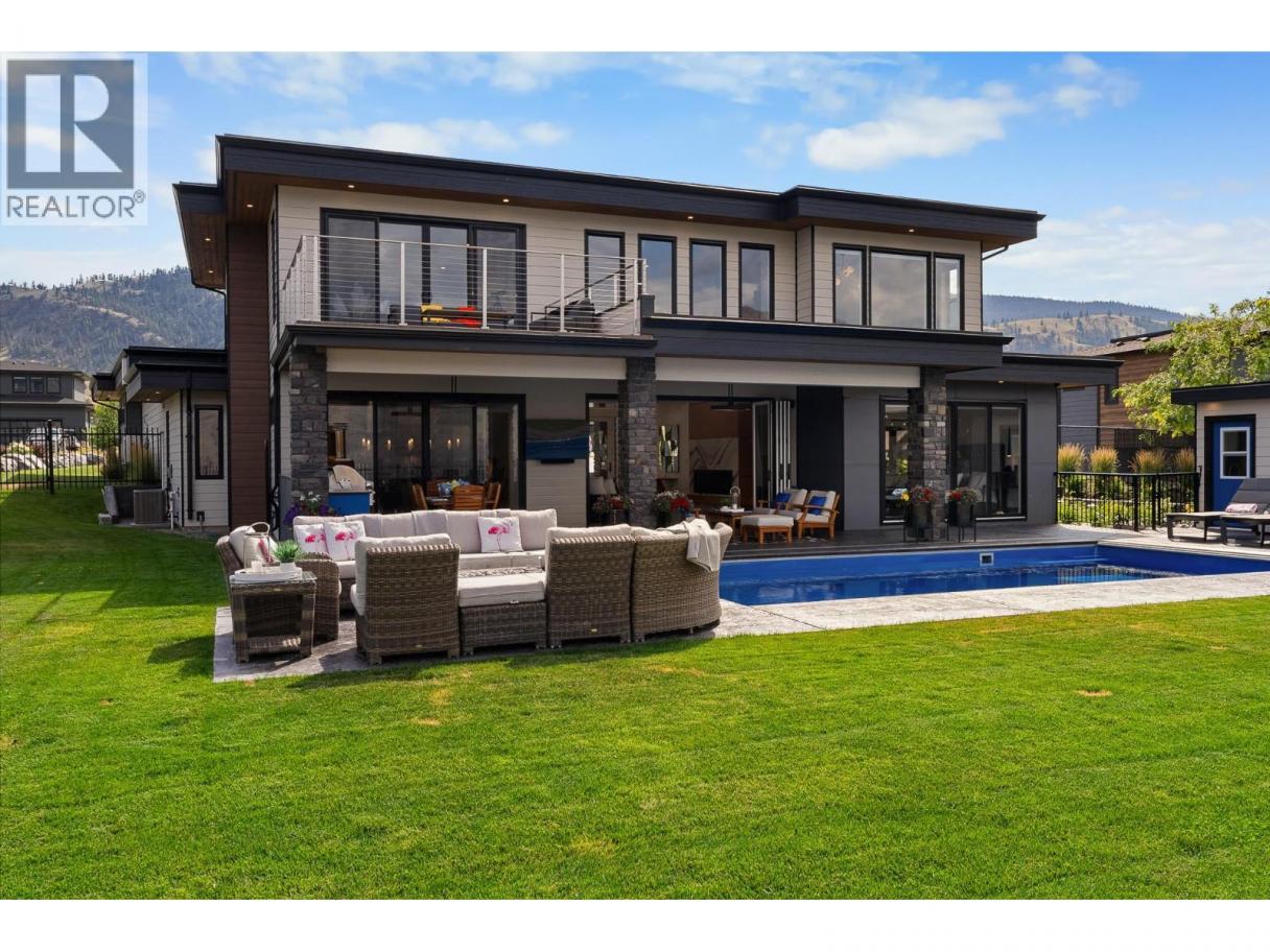 Welcome to 338 Rue Cheval Noir — a masterpiece of custom design perched above Kamloops Lake in the prestigious resort community of Tobiano. From the elegant curb appeal to the front entry and through to the panoramic lake views, this residence offers an unparalleled lifestyle. Set within a world-renowned golf destination, Tobiano also features a full-service marina, lakeside adventures, and access to endless backcountry trails. Inside, the great room captivates with 18’ ceilings, a Cambria stone fireplace, and a 13’ Nano door opening to a covered patio and outdoor kitchen. The chef’s kitchen is appointed with Wolf/Sub-Zero appliances, Vicostone quartz, custom millwork, and a grand island. The main floor also includes a spacious primary suite with a spa-inspired ensuite and expansive walk-in, and the second bedroom. Pantry, mudroom, and laundry areas offer premium built-in storage and appliances. Upstairs, each bedroom includes a private ensuite, custom closet, and loft area to soak in the views. The triple garage is heated, cooled, and EV-ready. Outside, enjoy a saltwater pool, Bullfrog spa, pizza oven, fire table, and heaters—set among professionally designed landscaping with stone walls, stamped concrete, irrigation, and app-controlled lighting. The home also includes a 4-foot insulated crawl space that is fully drywalled, heat and cooled, and well-lit. Contact for full features list. All meas are approx, buyer to confirm if important. Book your private viewing today! (id:6769)