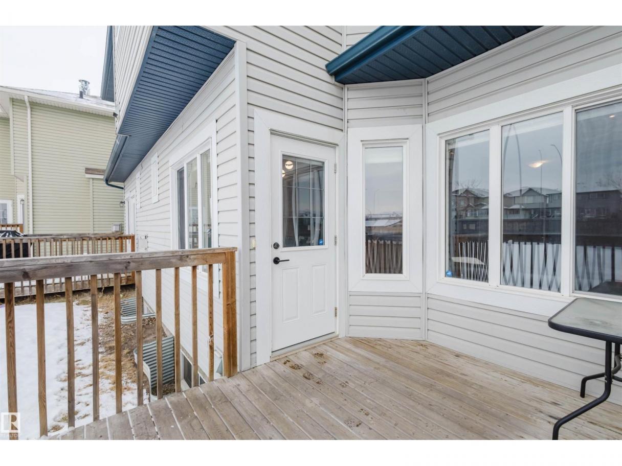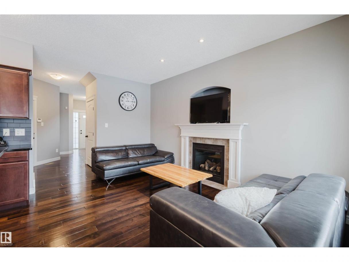 Welcome to this beautifully upgraded half duplex in the growing community of Cy Becker. Designed with functionality and style in mind, the home offers a bright open layout with engineered hardwood flooring across the main level. Large windows and a south-facing backyard create a warm, sun-filled living space throughout the day. The inviting living room is highlighted by a gas fireplace with tasteful wood detailing and tile surround. The kitchen is both stylish and practical, featuring granite countertops, stainless steel appliances, and a corner pantry, and opens to the dining area with patio doors leading to a spacious deck, ideal for summer gatherings. Upstairs includes three well-sized bedrooms, a full bathroom, and a versatile loft/bonus area suitable for a home office or play space. The primary bedroom offers a walk-in closet and a 4-piece ensuite. Ideally located with quick access to Manning Drive and Anthony Henday, and close to Manning Town Centre and Clareview Town Centre. (id:6769)