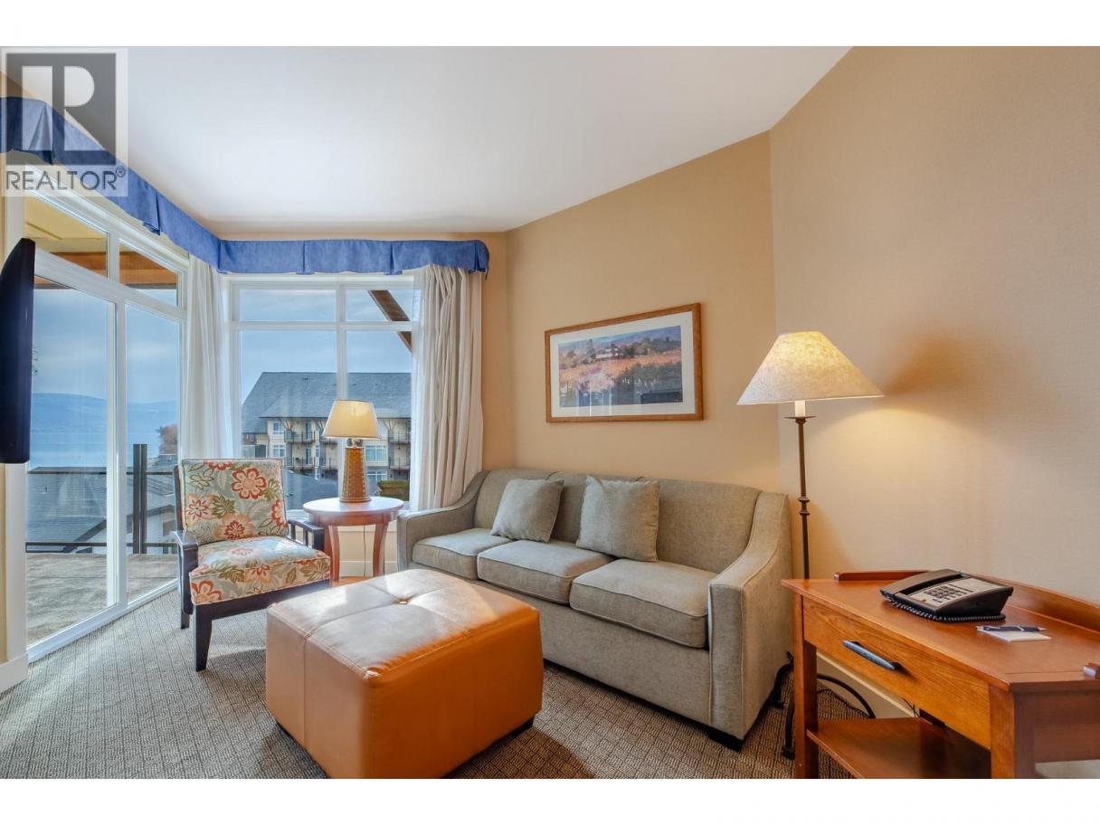 Perched on the top floor of the Summerland Waterfront Resort, this bright and airy suite offers a front-row seat to the natural beauty of Lake Okanagan and the surrounding mountains from your own private balcony. The open-concept interior comes fully furnished with granite countertops, stainless appliances, sofa bed and a cozy fireplace that anchors the living space. Beyond the suite, the resort serves as a complete lakeside playground, providing exclusive access to a private beach, heated outdoor pool, hot tubs, and a fitness center, all while being a short stroll from the marina and local dining. This pet-friendly property functions as both a personal sanctuary and a smart asset, offering a turn-key solution for those who want to enjoy the best of the Okanagan while benefiting from a professionally managed rental pool to generate income when you're away. All measurements are approximate. (id:6769)