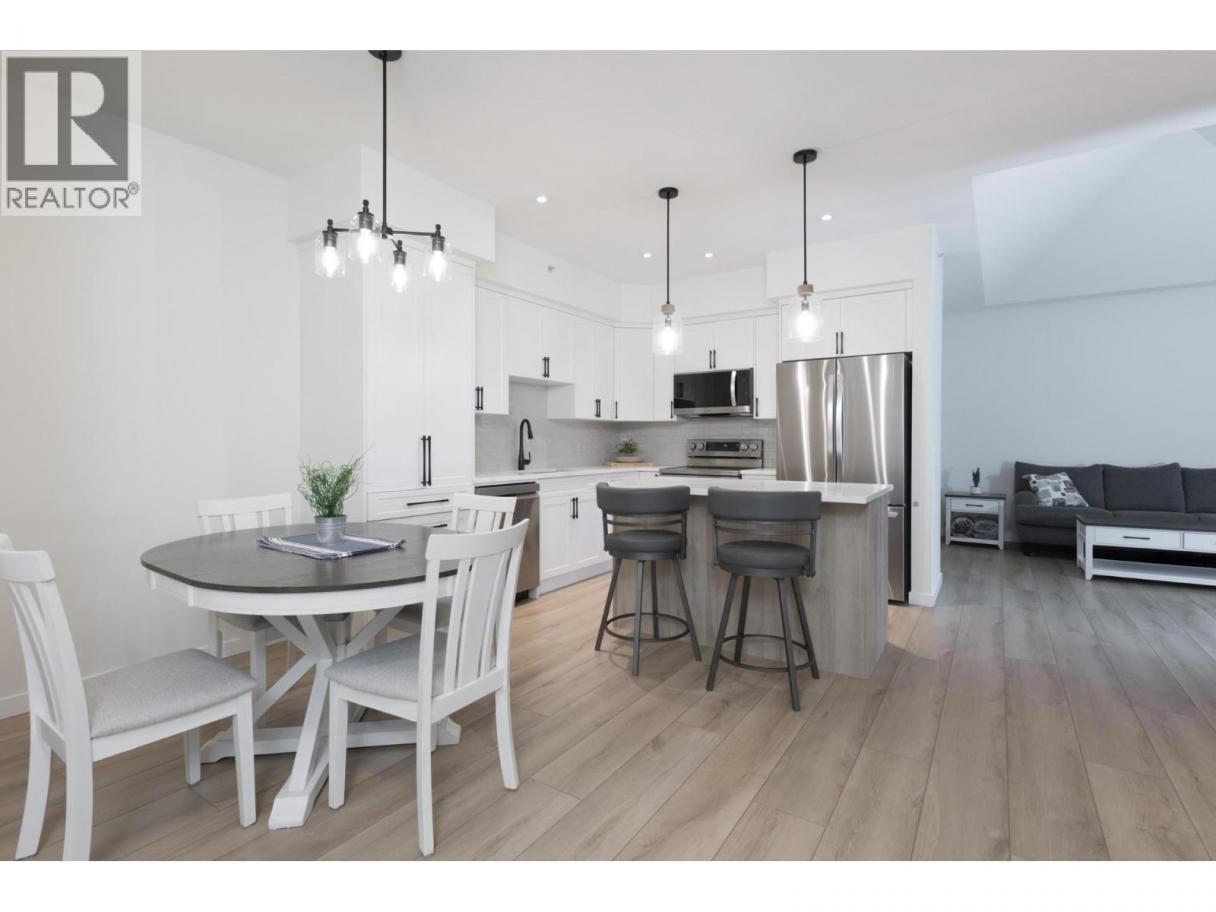 Top-floor, fully reimagined condo with vaulted ceilings in the living room, mountain views, and a covered deck—one block to the beach. Located in the heart of the Lower Mission, this 1-bedroom + den, 2-bathroom home was professionally renovated in 2025 delivering a fully modernized interior. Enjoy mountain views from the living room and deck. Highlights include all-new flooring, kitchen with new cabinetry, granite countertops, island, and new appliances, fully renovated bathrooms, new interior doors, fresh paint, updated lighting, and new window blinds. Clean, contemporary design with excellent flow and functionality. Includes one parking stall and one storage locker. Small pets permitted. Prime location close to coffee shops, transit, H2O Adventure + Fitness Centre, and MNP Place (ice arena and sports complex). Available for immediate possession—move-in ready. (id:6769)