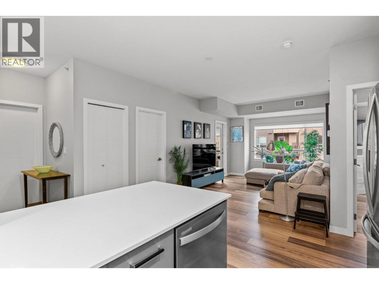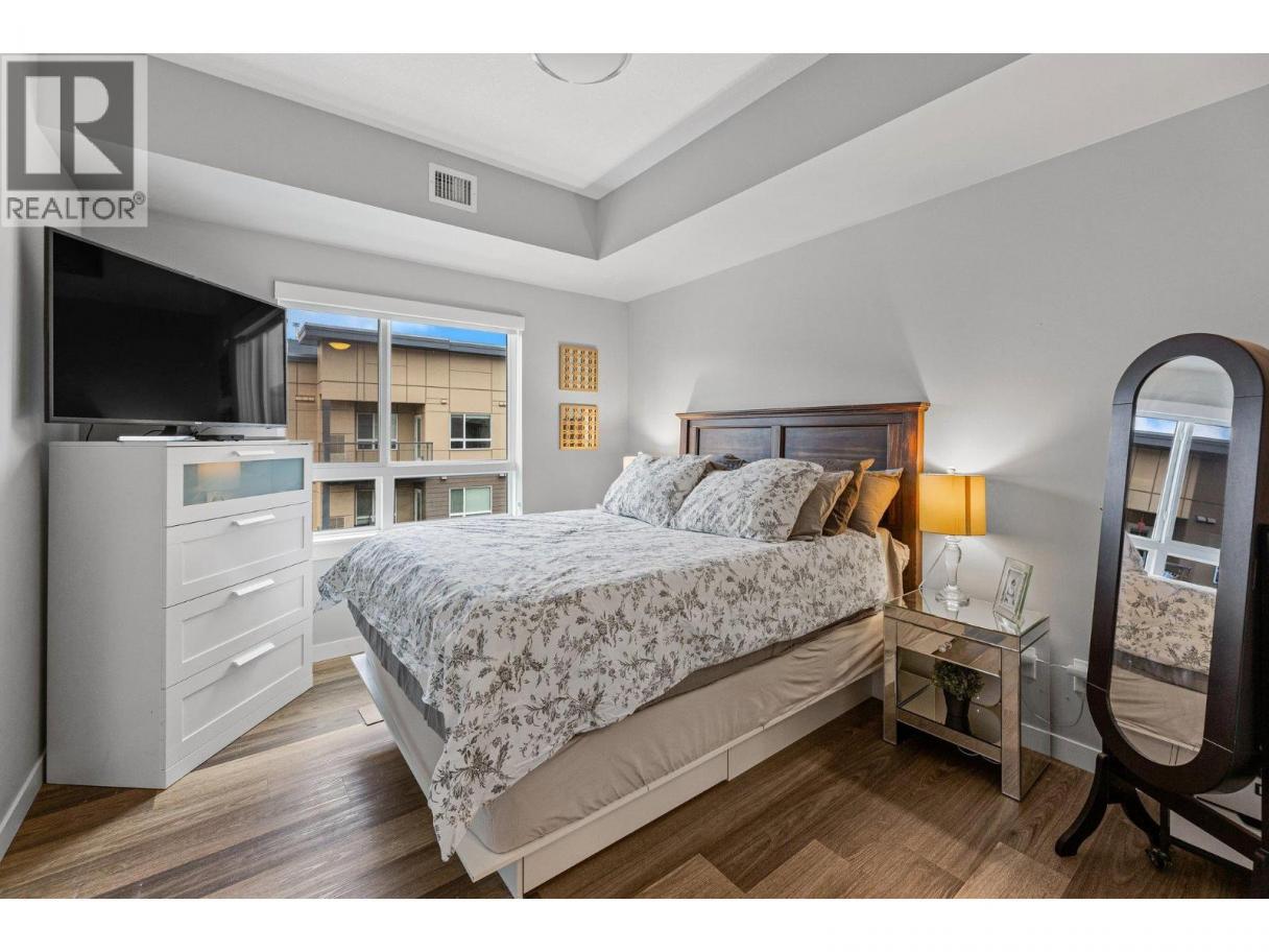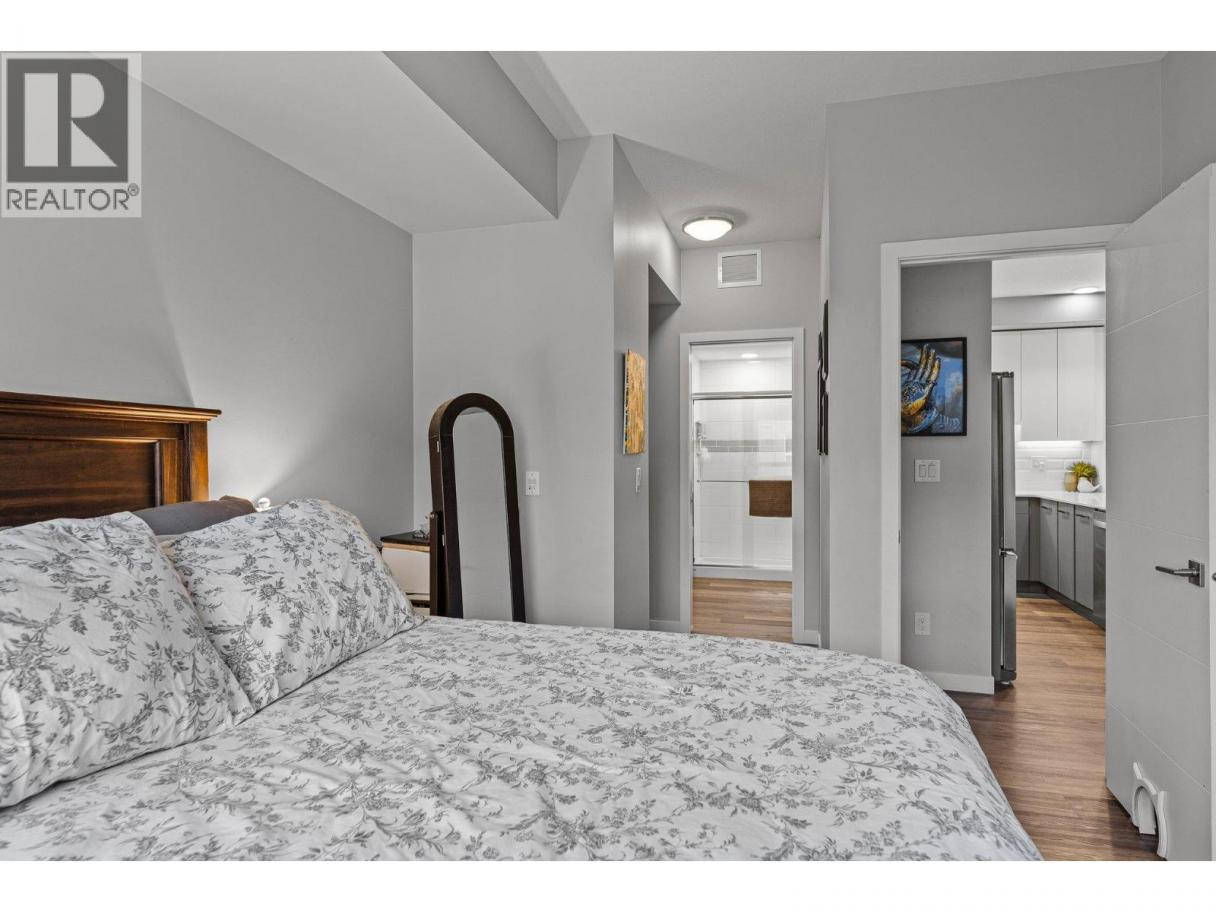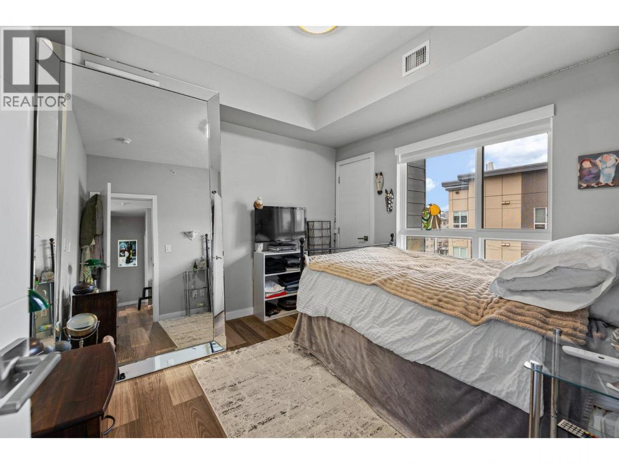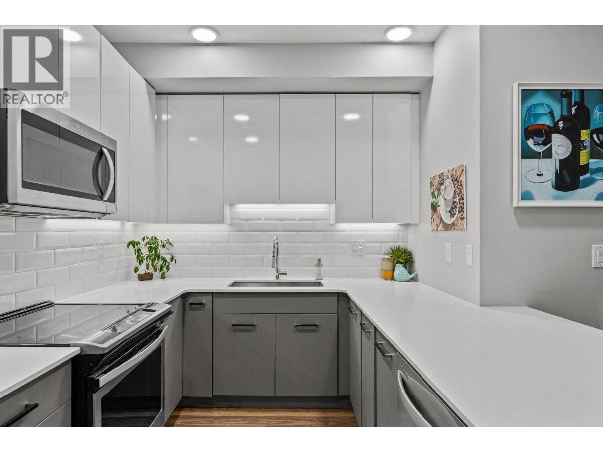 This spacious 2 bedroom, 2 bath, top floor West facing unit features elevated views of the street and Kelowna city skyline from its expansive windows and private cozy covered patio. It is thoughtfully laid out with an open and efficient split bedroom floor plan. The master has a 3-piece ensuite and the second bedroom has access to the main bathroom as a cheater ensuite. The kitchen was designed with the upgraded feature package including quartz countertops and stainless-steel appliances. One assigned, secure underground parking spot and storage locker are included. The building is centrally located just minutes away from downtown, the lakefront, and UBCO. It is walking distance to nearby transit, local amenities, parks, playgrounds, biking trails, walking paths, and prized golfing. The building’s amenities include a dedicated dog and bike wash station located within the building & secure indoor bike storage. Social spaces include a community, top- floor terrace with BBQ and fire pit, and a large amenities room complete with kitchen to host gatherings. There is nearby visitor parking, and a car share station with membership & drive time. Find amazing value with this affordable 900 sq ft condo with low strata fees. With no age restrictions, and rentals and pets allowed this is the perfect place to call home or purchase as an investment. (id:6769)