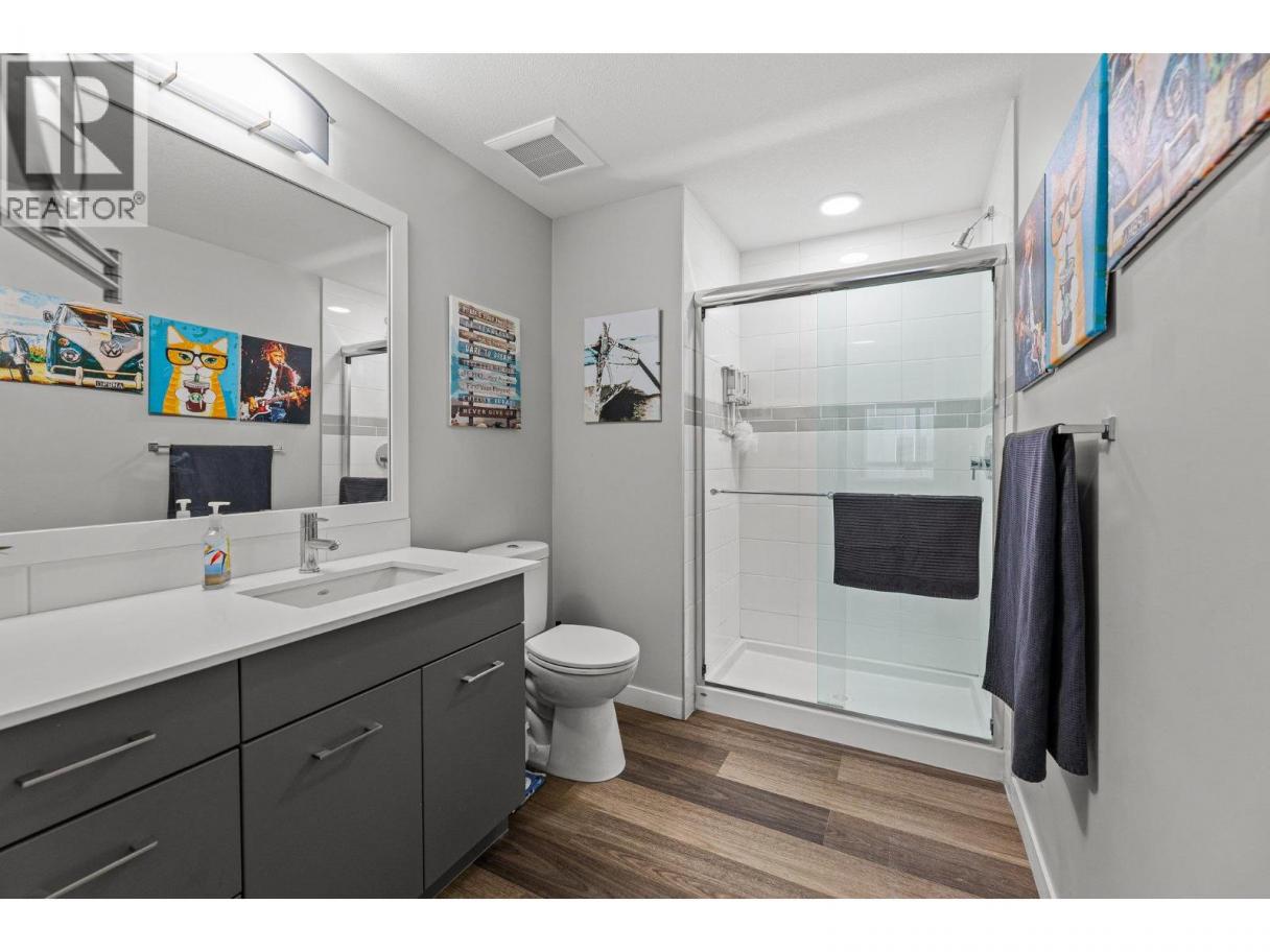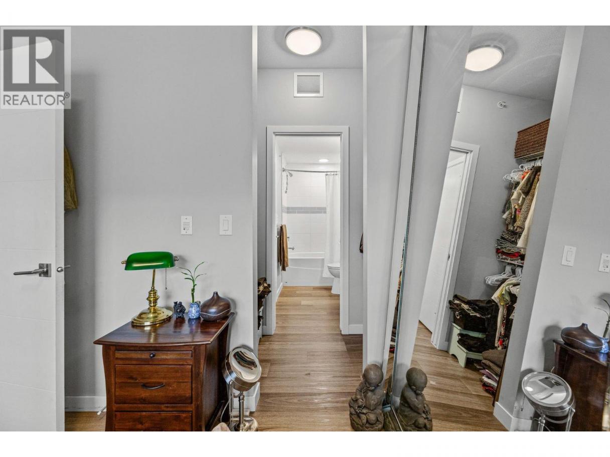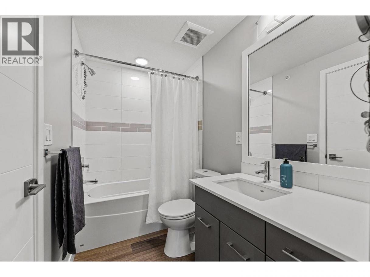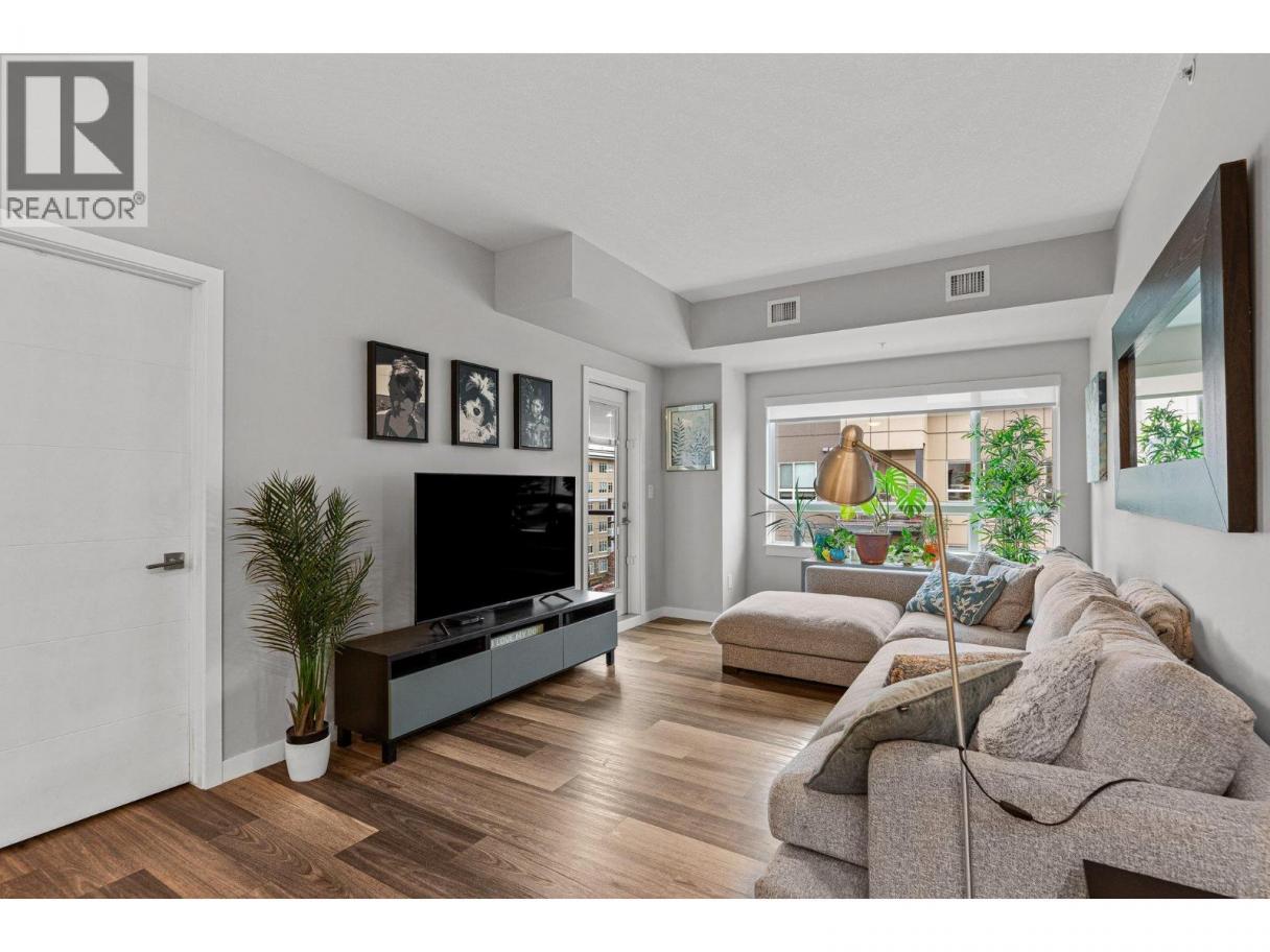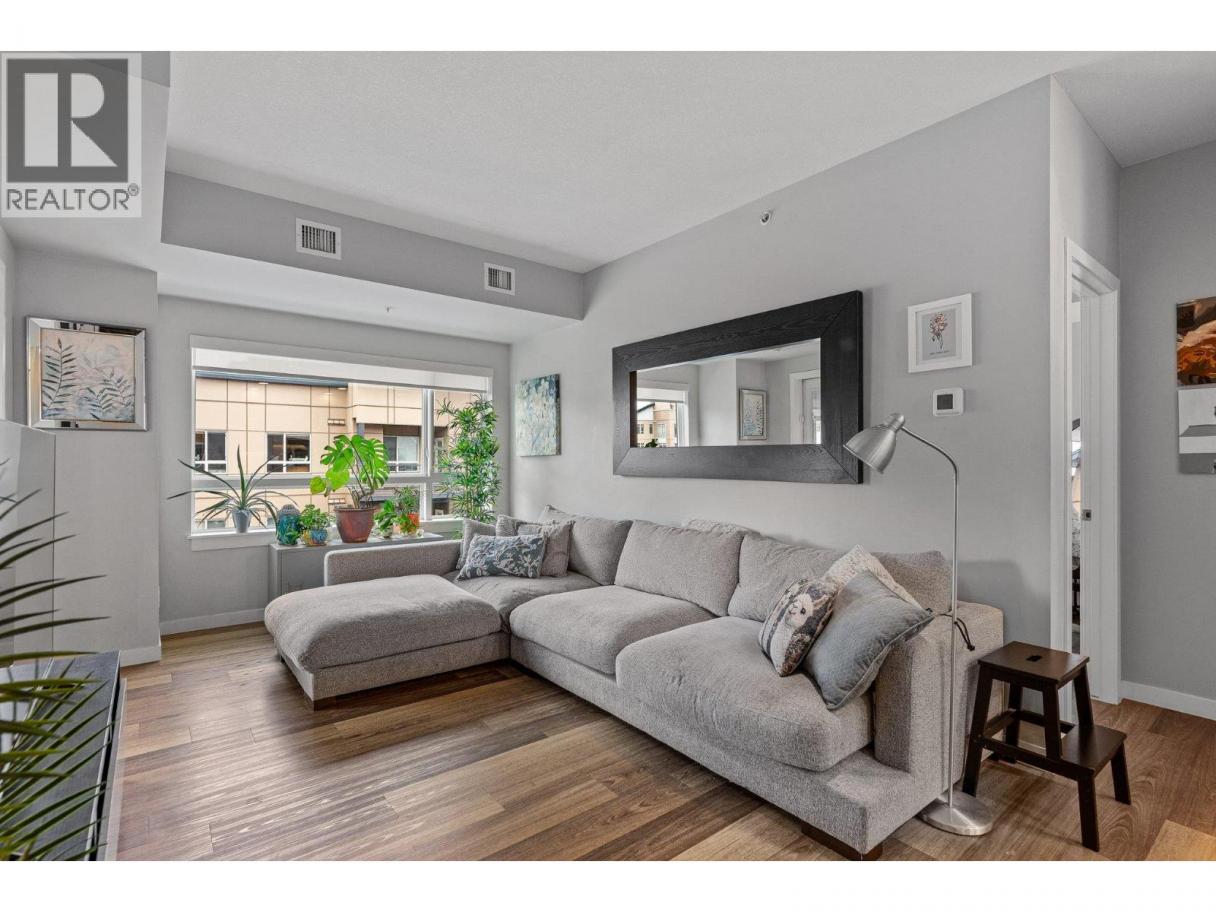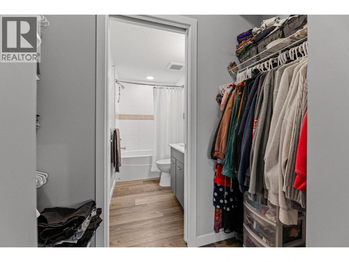 This spacious 2 bedroom, 2 bath, top floor West facing unit features elevated views of the street and Kelowna city skyline from its expansive windows and private cozy covered patio. It is thoughtfully laid out with an open and efficient split bedroom floor plan. The master has a 3-piece ensuite and the second bedroom has access to the main bathroom as a cheater ensuite. The kitchen was designed with the upgraded feature package including quartz countertops and stainless-steel appliances. One assigned, secure underground parking spot and storage locker are included. The building is centrally located just minutes away from downtown, the lakefront, and UBCO. It is walking distance to nearby transit, local amenities, parks, playgrounds, biking trails, walking paths, and prized golfing. The building’s amenities include a dedicated dog and bike wash station located within the building & secure indoor bike storage. Social spaces include a community, top- floor terrace with BBQ and fire pit, and a large amenities room complete with kitchen to host gatherings. There is nearby visitor parking, and a car share station with membership & drive time. Find amazing value with this affordable 900 sq ft condo with low strata fees. With no age restrictions, and rentals and pets allowed this is the perfect place to call home or purchase as an investment. (id:6769)
