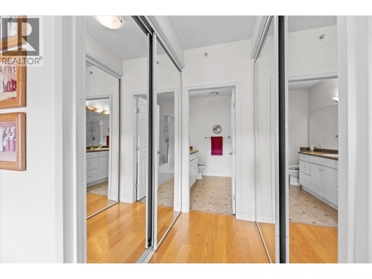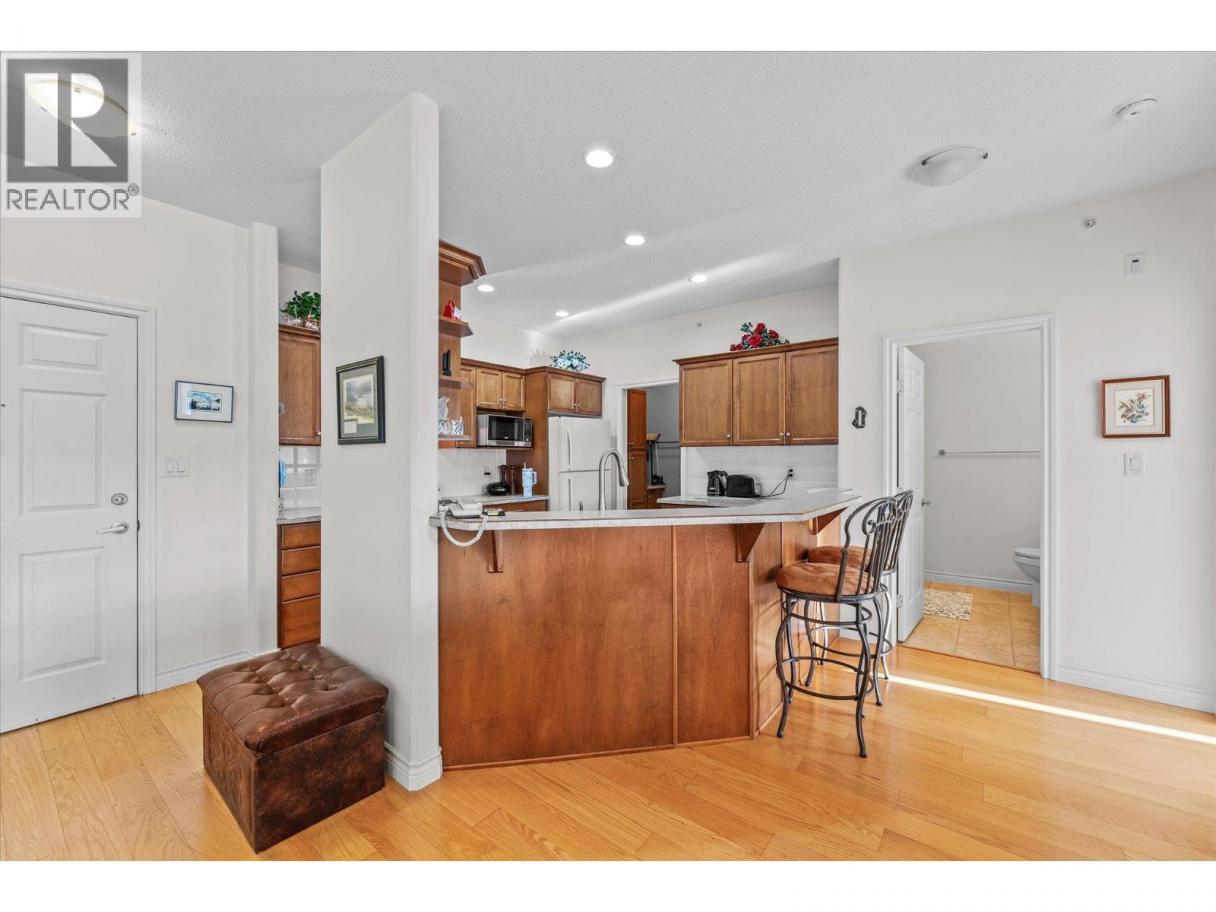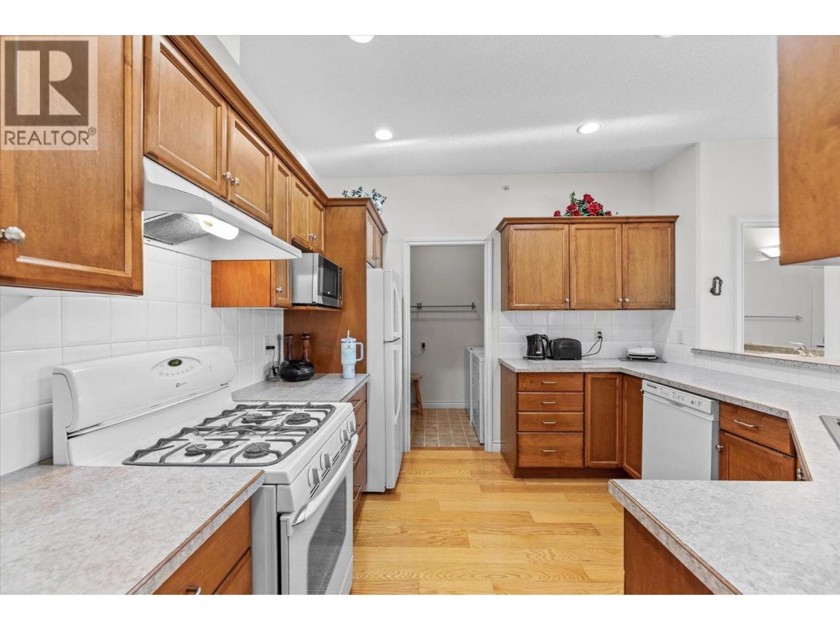 BEAUTIFUL BRISTOL GARDENS TOP FLOOR SUITE! Immediately start saving here surrounded by a plethora of amenities including Orchard Park Mall, Costco, Canadian SuperStore, Restaurants, Winners, Banks, Mission Creek Regional Park / Greenway linear trail, and so on. You'll be impressed by how walkable this immaculate home is. Step inside to a very bright home with southerly exposure overlooking the Park. This functional floor plan of over 1300+ sqft is comprised of 2 bedrooms separated by a massive living/dining room area, bonus den/office, very own laundry room with side by washer/dryer! You'll also enjoy a great kitchen with lots of cupboards/counter space, raised eating bar, 2 full bathrooms, and closed in sunroom/balcony with 2 access points from living room or primary bedroom. His and her closets and a 4 piece ensuite can be found in the primary bedroom. Other benefits to living here include the impressive stand alone clubhouse, large workshop on the garage level, & car wash bay. Prime location in the building as it doesn't overlook Costco or parking lots. Unit features central heat & air conditioning, 1 underground parking stall and 1 sizable storage locker. 1 small pet welcomed and rentals allowed with restrictions. Ditch the house and embrace condo living at its finest! (id:6769)