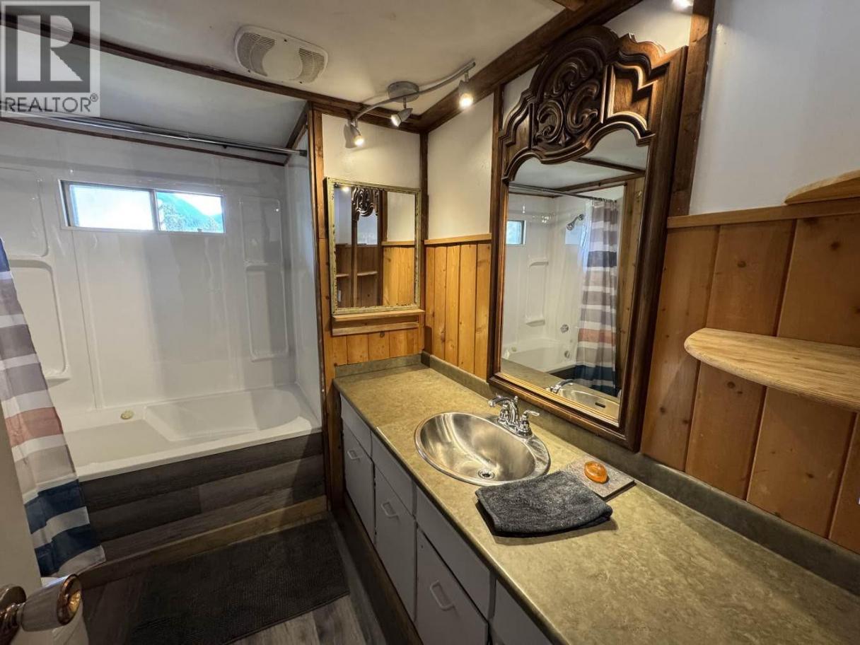 Back on the Market! New Price! Looking for an affordable property in the community of Blue River? This could be just for you. Only 45 min drive to Valemount. Cozy 2 bedroom mobile has a good sized mudroom, living room has a wood stove to help with heating costs. Home is fully furnished and currently has a solid renter. Huge covered deck with mountain views is just a few stairs down to a good size yard. Home has a metal roof that is detached giving extra insulation and weather protection. Super popular sledding area and lots to do in the summer. Live here year round or perhaps a rental investment! Call for more details. (id:6769)