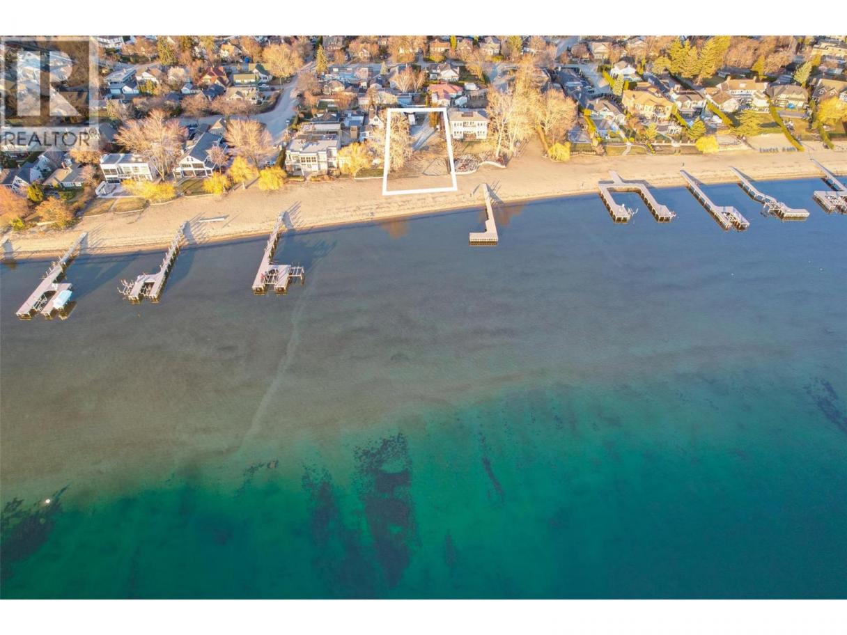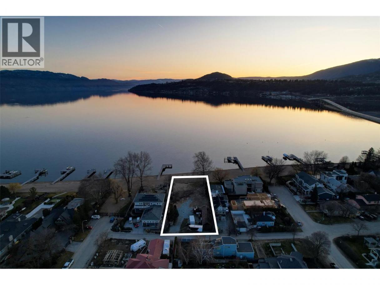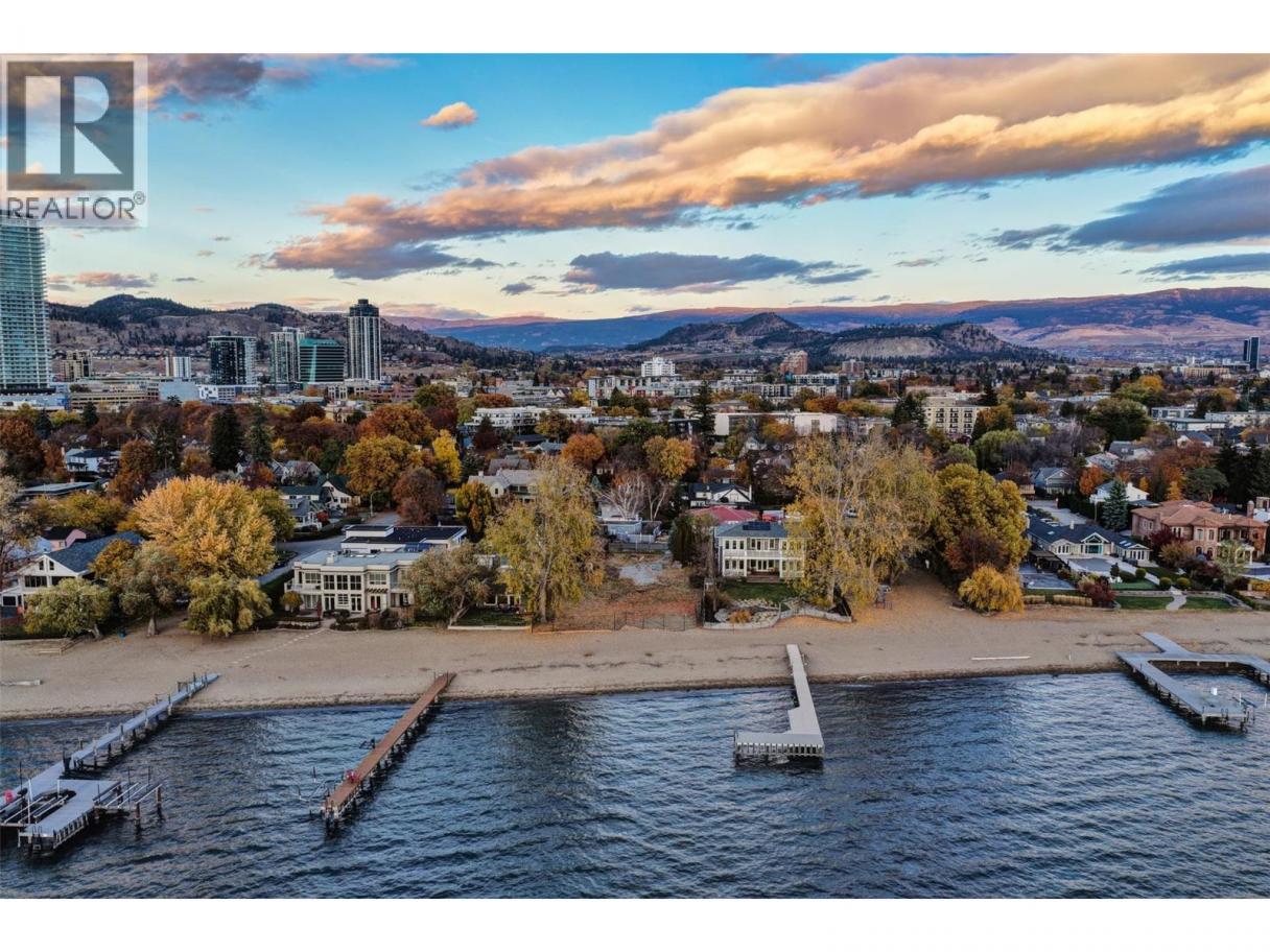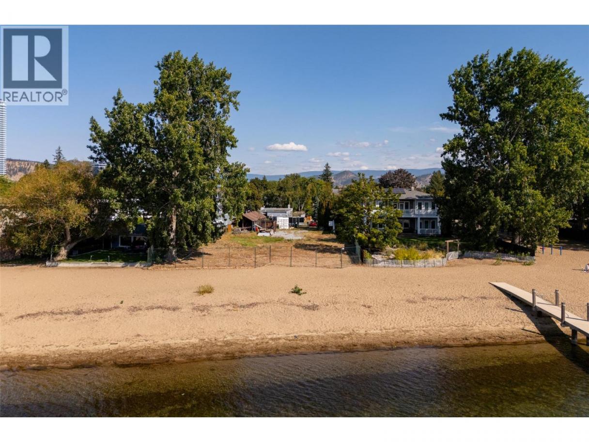 One of Kelowna's most desirable lakeshore properties, on Okanagan Lake, this rare 0.44-acre vacant lakeshore lot is nestled in one of Kelowna’s most prestigious iconic neighborhoods secluded just off the coveted Abbott Street corridor. This 19,000+ sq ft parcel is a vacant blank canvas to build your vision for your family’s legacy dream home. With almost 88 feet of level, expansive natural sand beach, an unobstructed South-West exposure, you can enjoy stunning sunsets and direct access to the crystal waters of Okanagan Lake. This wide lot provides ample room for a large dock, accommodating multiple boats, entertaining guests, swimming, and beach activities. Perfect for lakeside entertainment! Whether you envision a luxurious private estate with historic architecture or a modern contemporary masterpiece – the possibilities are endless! Ideally located just a short stroll to Kelowna’s City Park and vibrant downtown core - boutique shopping, galleries, casual and fine dining, cultural districts, and Kelowna General Hospital. Proximity to World-class wineries, orchards, golf courses, the University of British Columbia Okanagan, and Kelowna International Airport. This iconic property offers a rare fusion of lakeside serenity and convenience blending natural beauty with a vibrant four-season lifestyle in the heart of the Okanagan Valley. The property may allow for up to four dwellings under the new Provincial density regulations and is free from Canada’s foreign buyer ban. (id:6769)