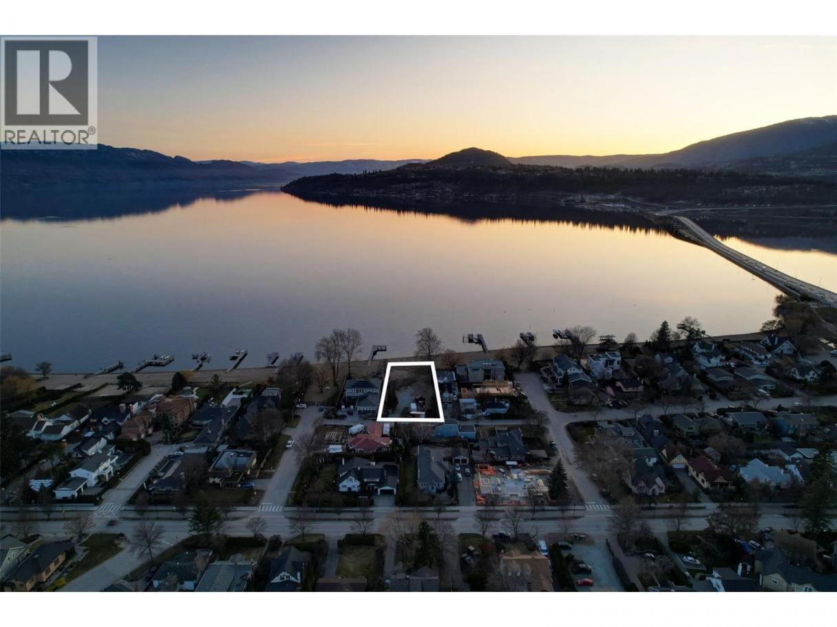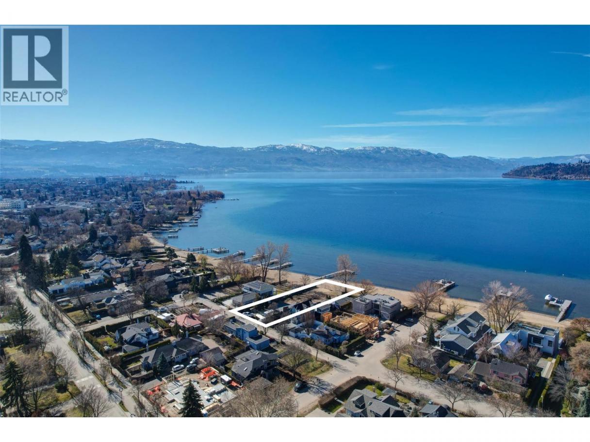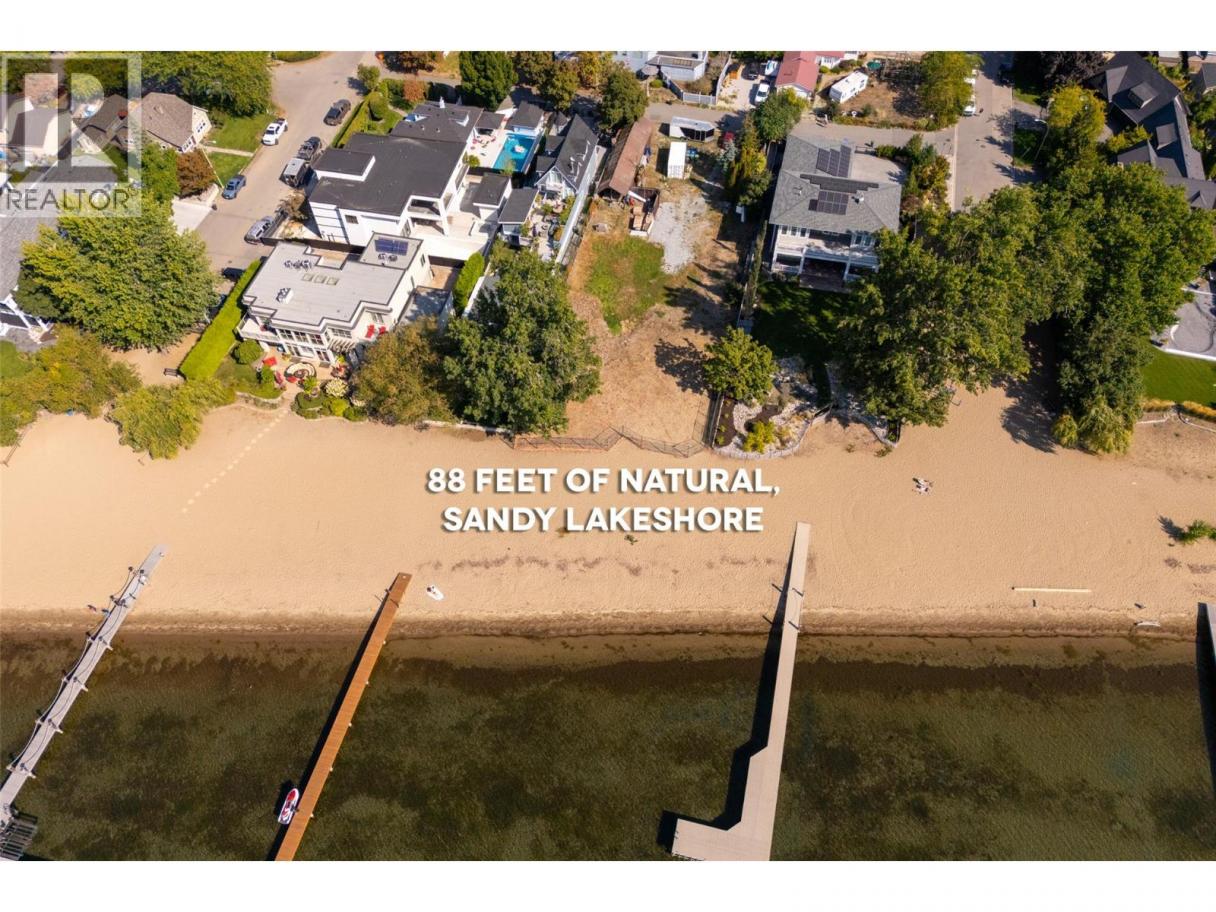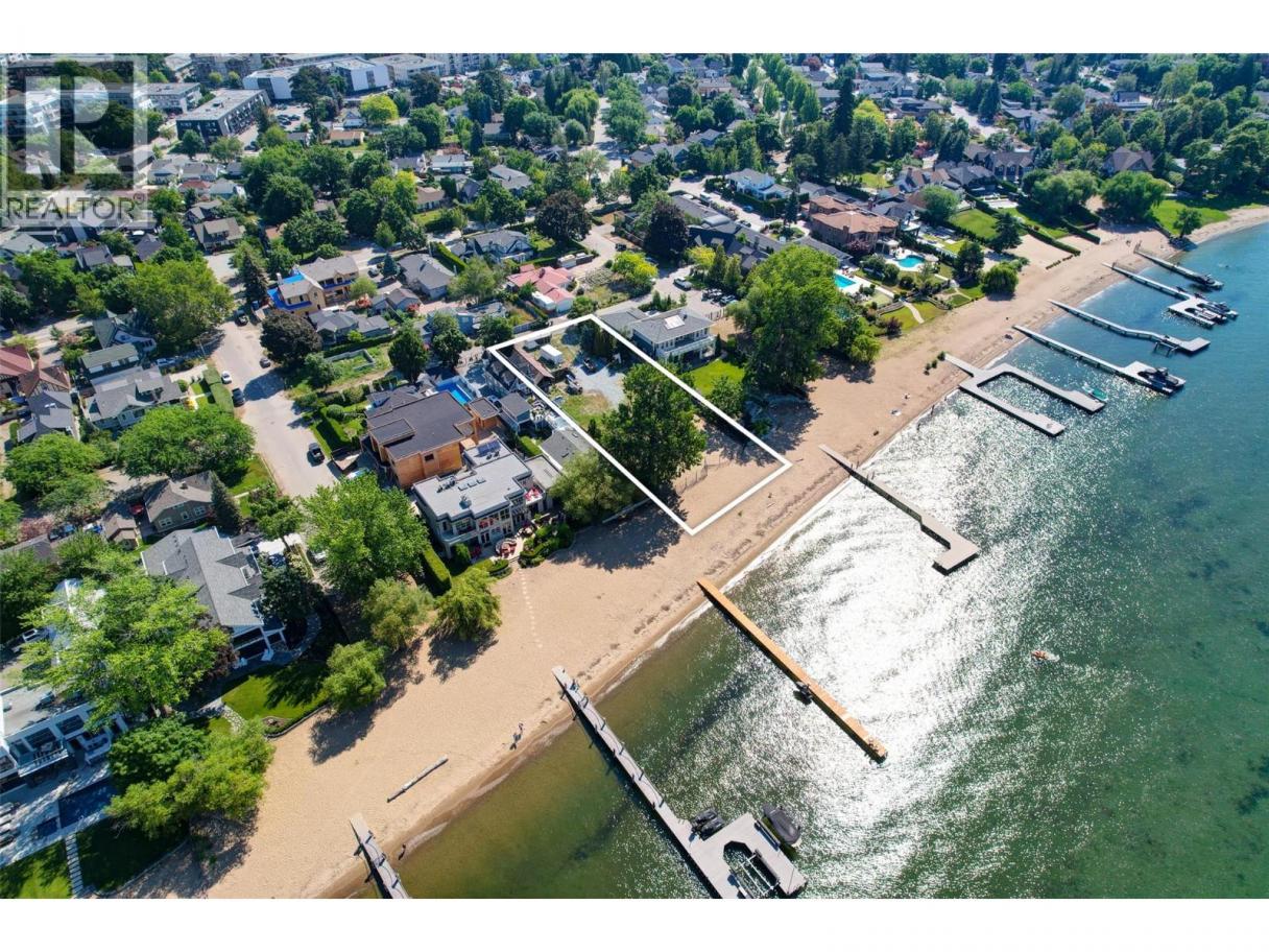 One of Kelowna's most desirable lakeshore properties, on Okanagan Lake, this rare 0.44-acre vacant lakeshore lot is nestled in one of Kelowna’s most prestigious iconic neighborhoods secluded just off the coveted Abbott Street corridor. This 19,000+ sq ft parcel is a vacant blank canvas to build your vision for your family’s legacy dream home. With almost 88 feet of level, expansive natural sand beach, an unobstructed South-West exposure, you can enjoy stunning sunsets and direct access to the crystal waters of Okanagan Lake. This wide lot provides ample room for a large dock, accommodating multiple boats, entertaining guests, swimming, and beach activities. Perfect for lakeside entertainment! Whether you envision a luxurious private estate with historic architecture or a modern contemporary masterpiece – the possibilities are endless! Ideally located just a short stroll to Kelowna’s City Park and vibrant downtown core - boutique shopping, galleries, casual and fine dining, cultural districts, and Kelowna General Hospital. Proximity to World-class wineries, orchards, golf courses, the University of British Columbia Okanagan, and Kelowna International Airport. This iconic property offers a rare fusion of lakeside serenity and convenience blending natural beauty with a vibrant four-season lifestyle in the heart of the Okanagan Valley. The property may allow for up to four dwellings under the new Provincial density regulations and is free from Canada’s foreign buyer ban. (id:6769)
