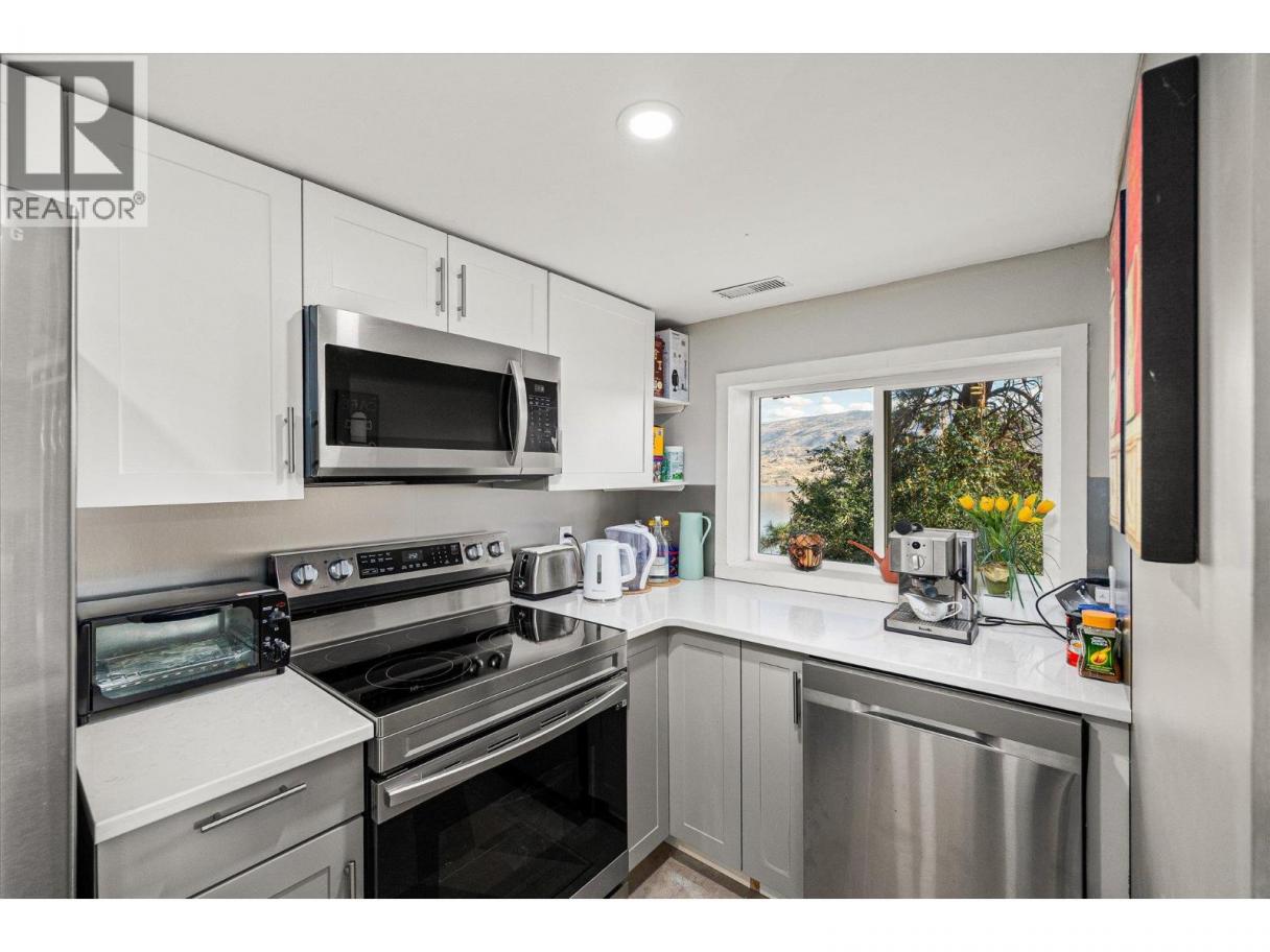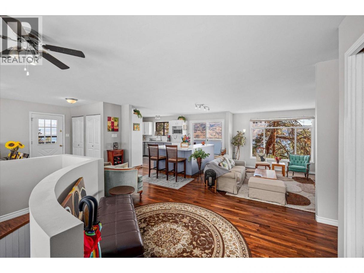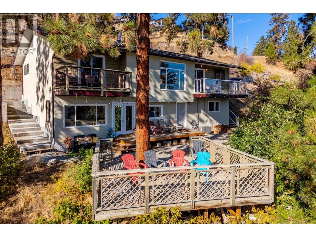 INVESTOR ALERT! This Peachland property is a rare opportunity offering three kitchens, three private entrances, and unmatched investment potential. Whether you’re seeking a home that pays you back or a flexible space for multi-generational living, this one delivers exceptional value and versatility. This property sits on a peaceful 0.28-acre lot, just two minutes from Beach Avenue, showcasing breathtaking lake and mountain views without the road noise. This beautifully renovated 5-bedroom, 4-bath home is fully move-in ready and designed with both comfort and income potential in mind. The main level features an inviting open-concept layout with a bright kitchen and balcony, stunning hardwood floors, and a cozy sunken living room centred around a charming fireplace. There are 3 bedrooms on the main living level with the spacious primary suite offers a 3-piece ensuite and private balcony. The lower level is ideal for guests or tenants, featuring a newly renovated kitchen with quartz countertops, a custom bathroom, gas fireplace, and separate laundry. In addition, a self-contained one-bedroom suite with kitchenette, laundry, and its own entrance provides even more flexibility or income potential. Outside, you’ll find ample parking with room for an RV, multiple decks and peaceful surroundings that highlight those spectacular Okanagan lake views from every level. Peachland living at its finest — a smart investment, a stunning home, and a lifestyle that truly pays you back. (id:6769)