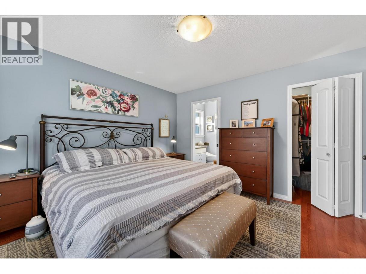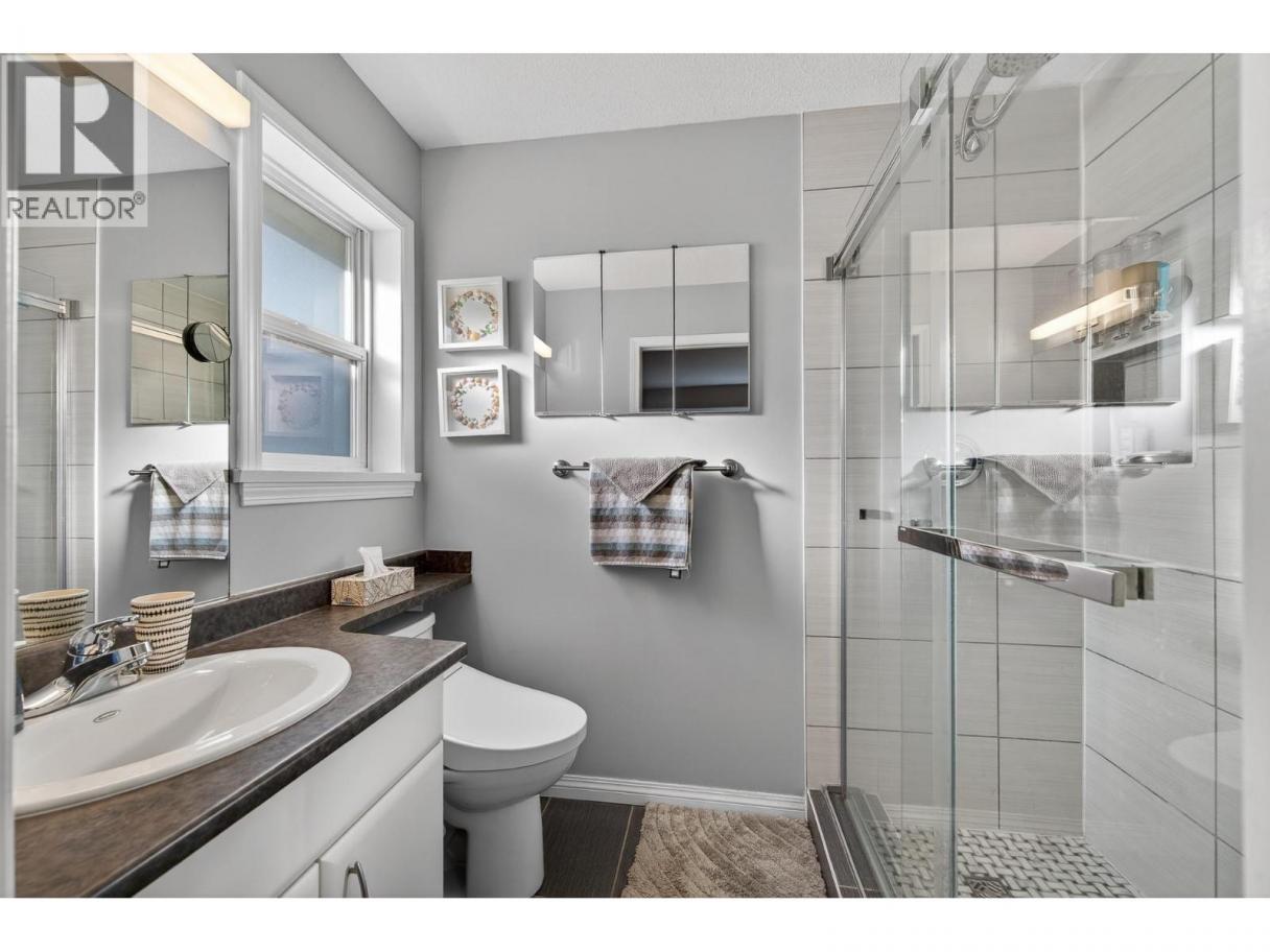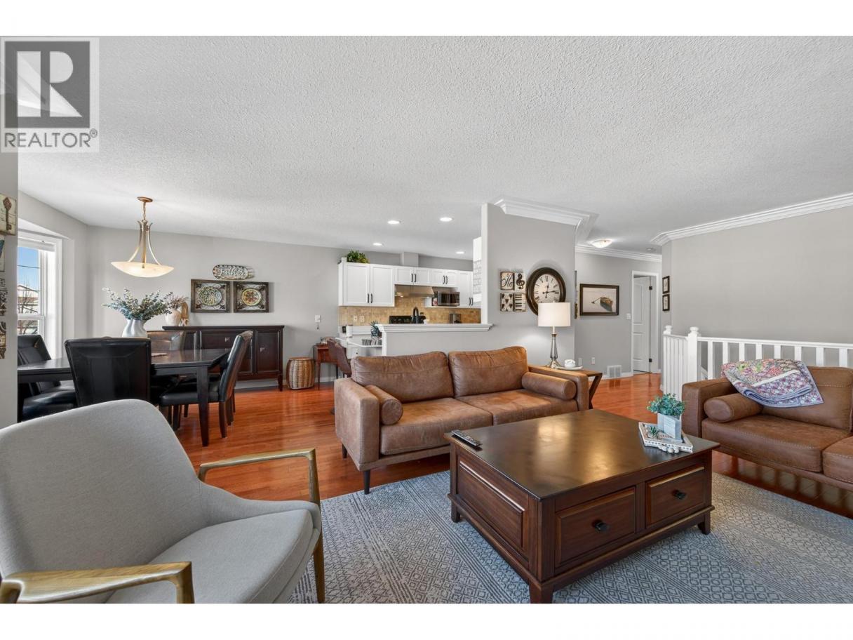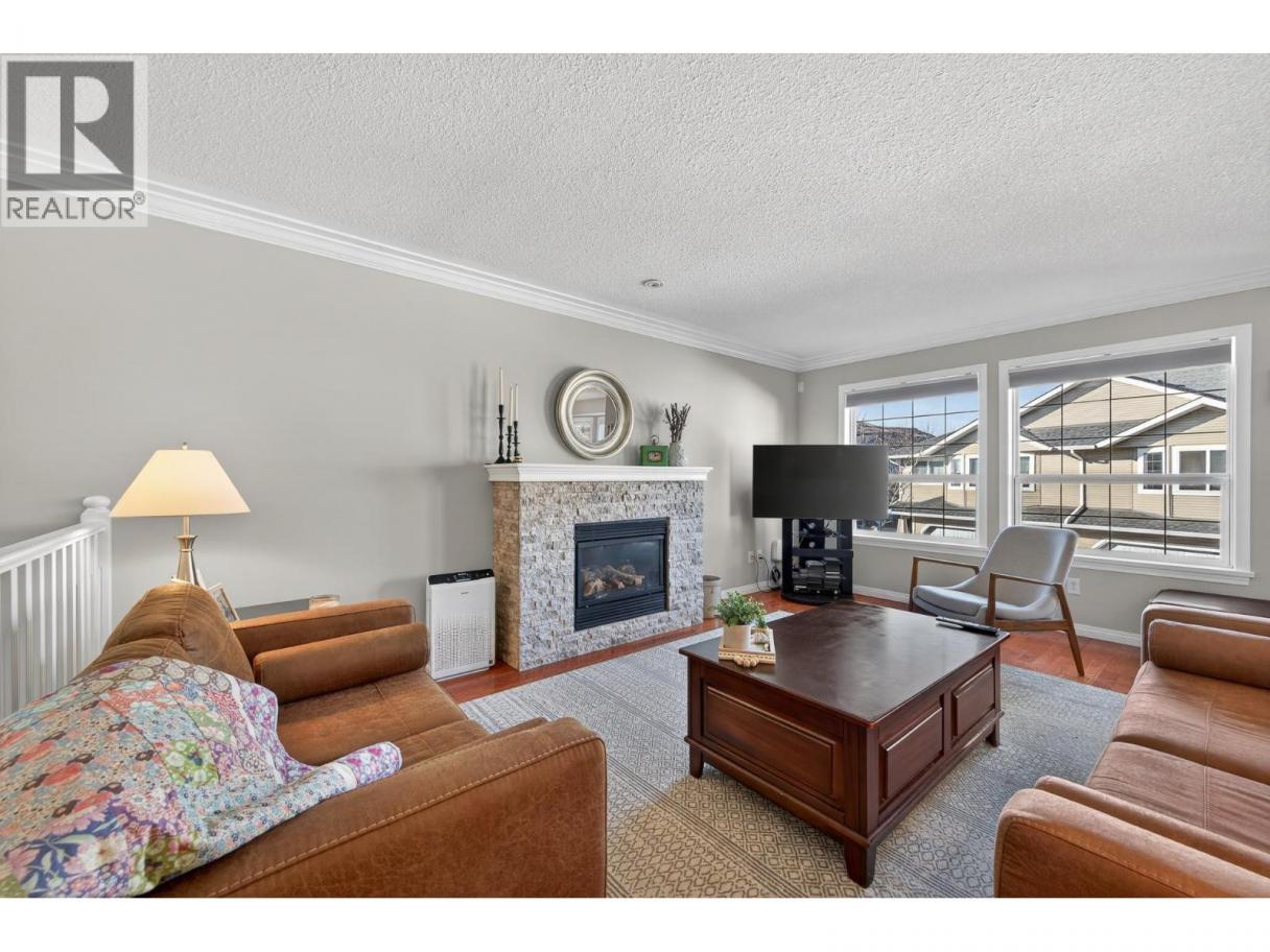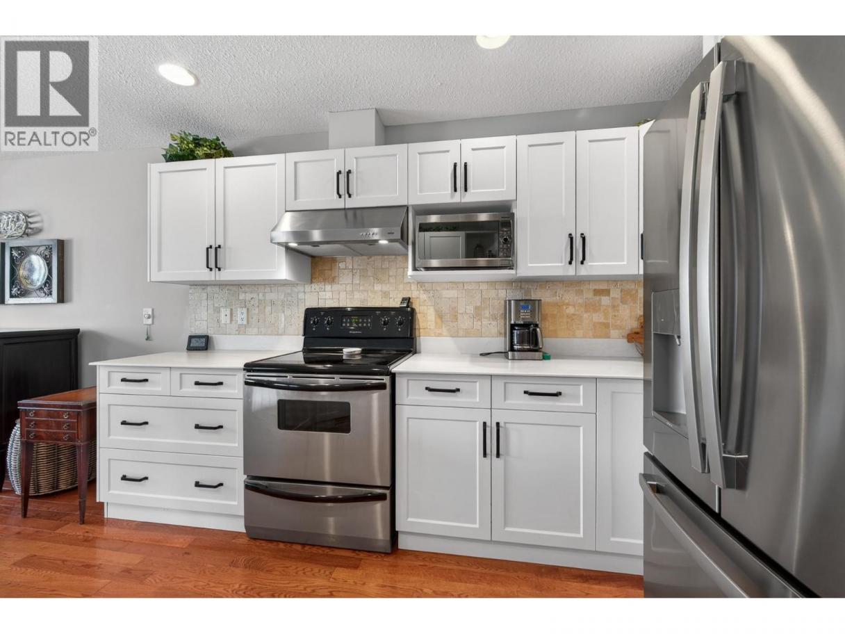 Easily one of the best units in the complex. Beautifully designed home featuring three bedrooms plus den and three bathrooms, complete with a single-car garage and central vacuum. The spacious primary bedroom includes an updated ensuite with a new walk-in shower. Enjoy a brand-new kitchen (March 2023) with newer appliances. The second upstairs bedroom includes a Murphy bed and sliders to the back patio, and the home offers a large, welcoming entry along with updated bathrooms throughout. Mechanical updates include a hot water tank (2018) and furnace (2021). Outdoor living shines with a large patio with extended deck, and gorgeous hillside landscaping. Additional features include hardwood floors on the main level, a Ring doorbell, and a water filtration system. All measurements approximate. Please call today for more information or to view. (id:6769)