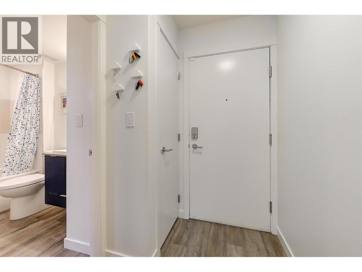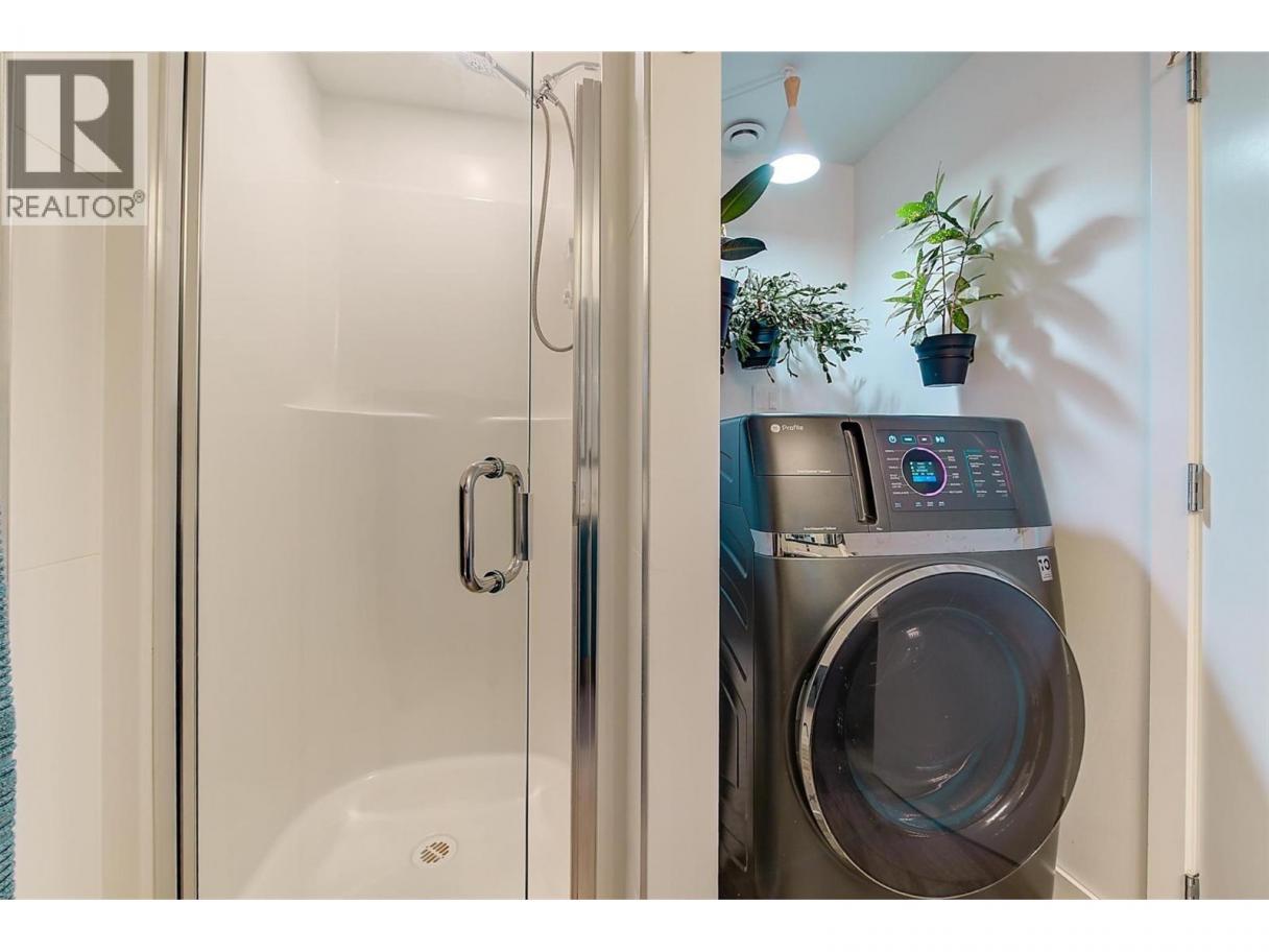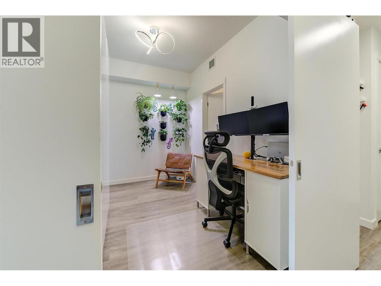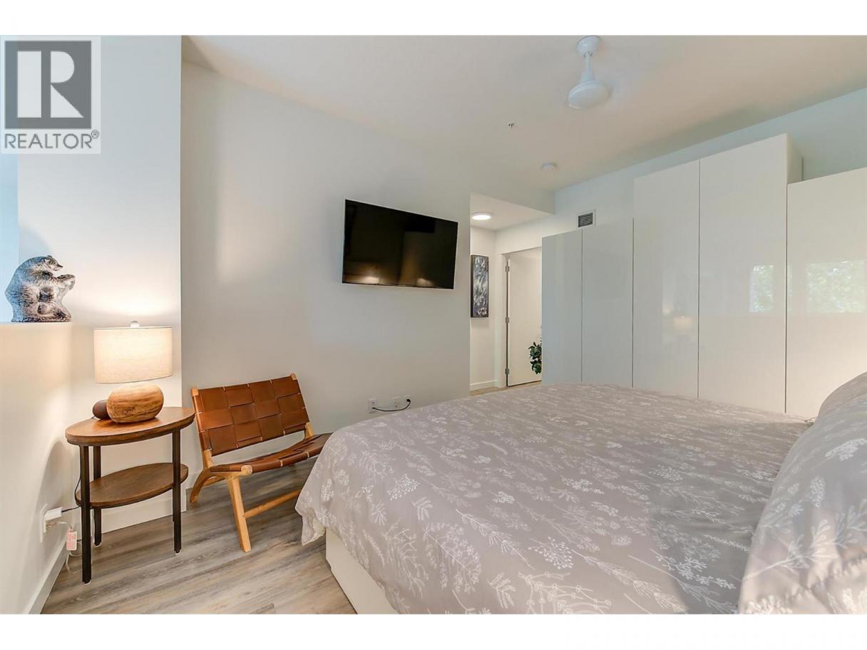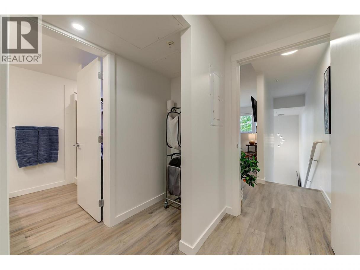 Bright, Urban Chic Loft-style condo at Central Green! This 2-bedroom, 2-bathroom home offers entrances to both levels with towering 18 ft ceilings and impressive oversized floor to ceiling windows allowing the natural light to flood your living space. The open layout showcases a sleek kitchen with contemporary dual tone cabinetry, Upgraded Stainless Steel appliance package, light quartz countertops, a moveable island workstation, all flowing into a cool, luxe living area with elegant modern lighting. Durable, great looking & easy care Luxury Vinyl plank is found throughout, perfect for entertaining & ideal for pets ( 2 dogs, 2 cats or 1 of each allowed - no size restriction here). Find an east-facing terrace with a beautiful brick facade and black accented frosted glass privacy panels to enjoy your morning coffee as the sun rises or enjoying a fresh Okanagan evening. The Lofted primary bedroom overlooks the main living area below, offering ample closet space, a 3pc ensuite bath & laundry. The main floor 2nd bedroom is ideal for guests, crafts, a home office, or a studio. Practical perks include a secure Underground parking stall, plus a convenient, same floor storage locker. Central Green is situated beside the pristine Rowcliffe Park with running loop, playground, and beautiful green space. THIS is all in walking distance to beaches, schools, shopping, dining, and Kelowna’s vibrant downtown easily accessible via the Bertram Pathway & Multiuse Overpass & transit is out front! (id:6769)