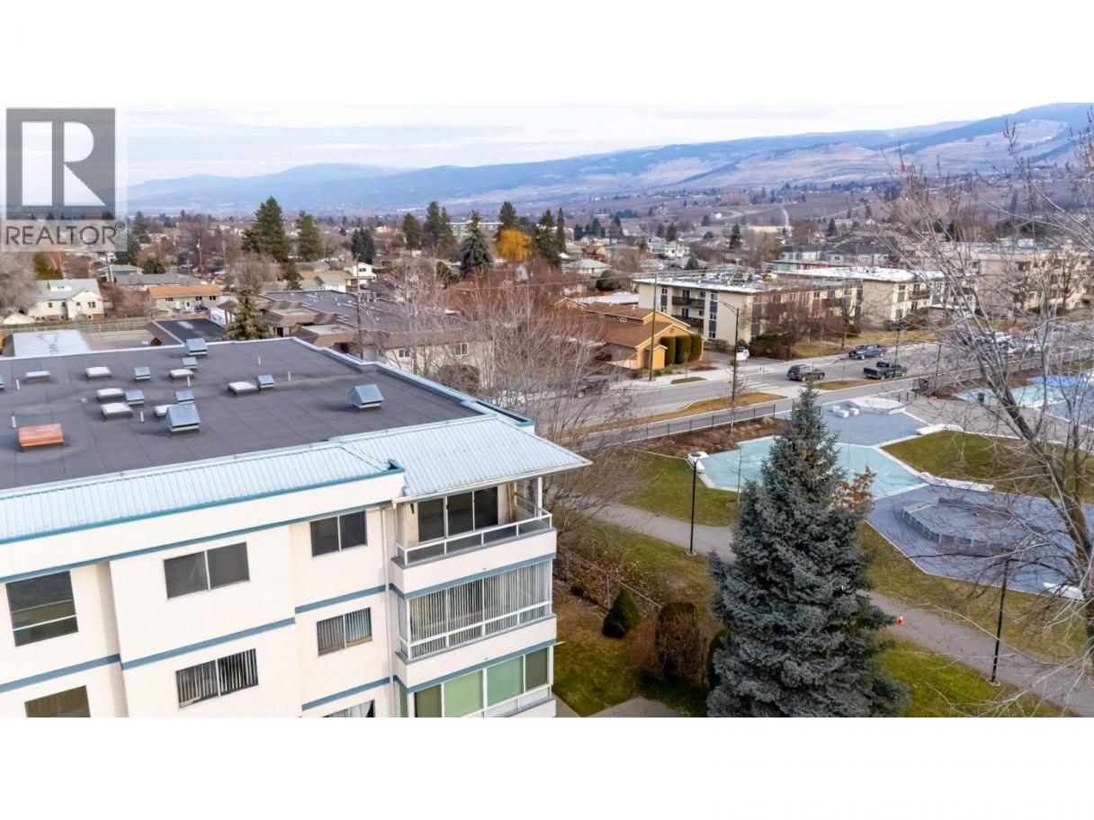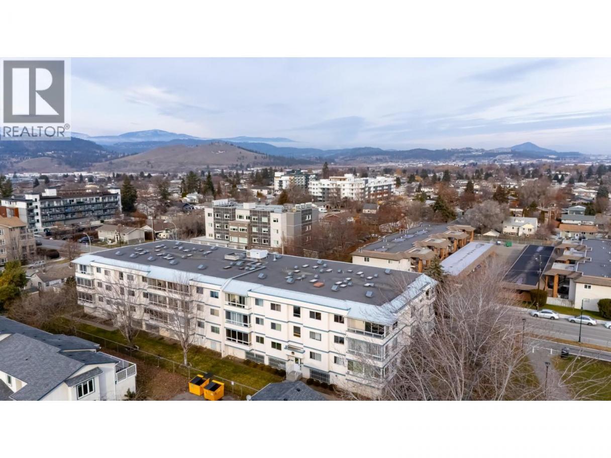 Experience 55+ living in this desirable TOP-FLOOR, CORNER UNIT overlooking Rutland Centennial Park. This bright and spacious 2-bedroom, 2-bathroom home offers the ultimate in privacy and quiet, with no neighbors above you, only one common wall, and extra windows including three skylights allowing natural light to flood the space. Enjoy your morning coffee on the balcony while taking in the stunning, mountain and park vistas. Downsizing doesn't mean compromising on storage here—this unit includes two separate storage lockers (one on the top floor and one in the parkade) and convenient in-suite laundry. The complex is designed for a vibrant community lifestyle, featuring a social common room, an exercise area, a library, and a workshop perfect for hobbyists. Located in a prime walkable neighborhood, groceries, shops, transit, and the park are all just steps from your front door. This is the perfect blend of comfort, view, and convenience! (id:6769)